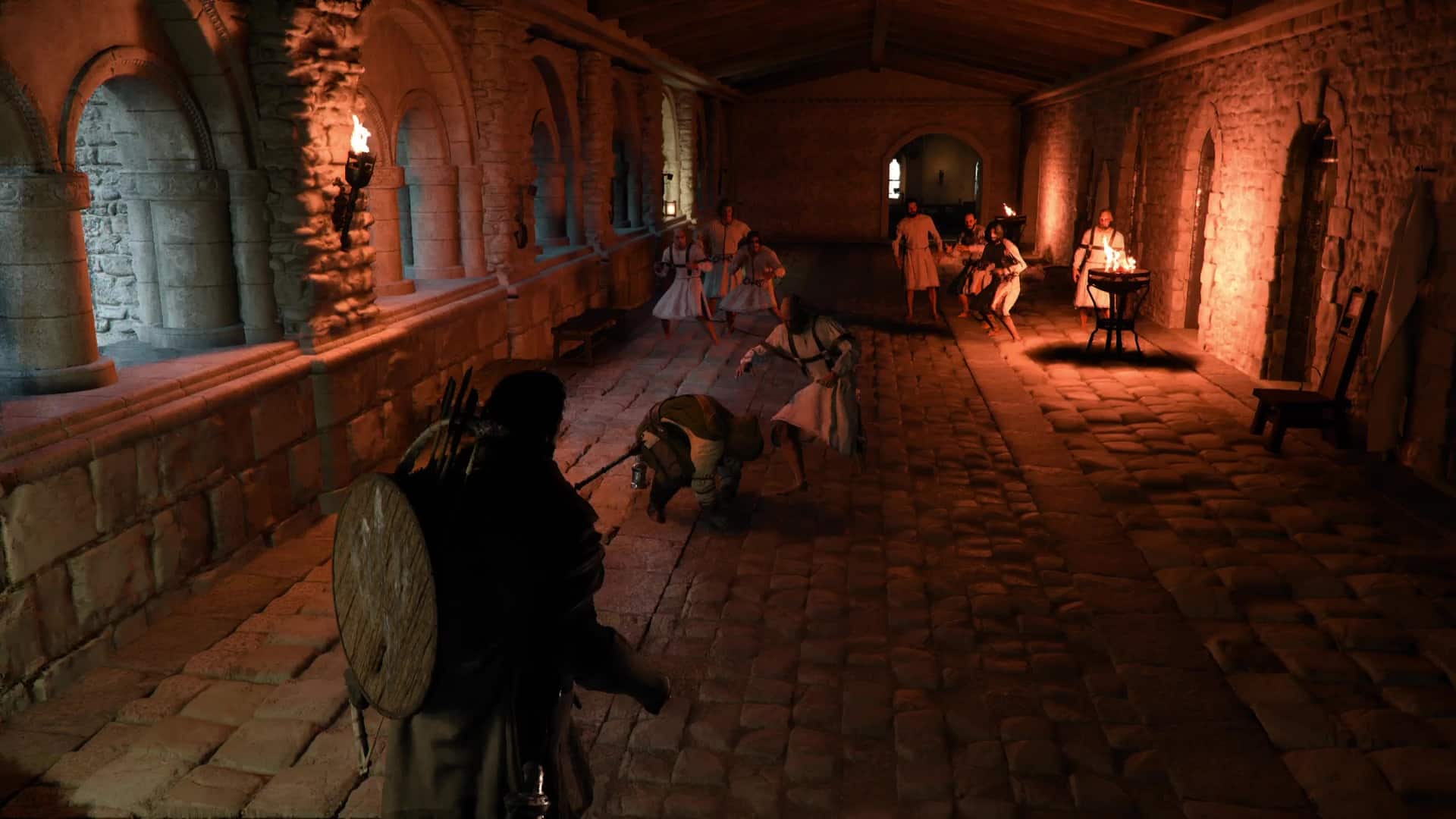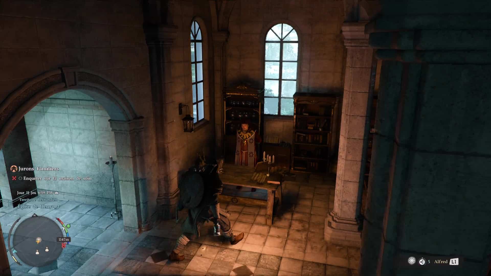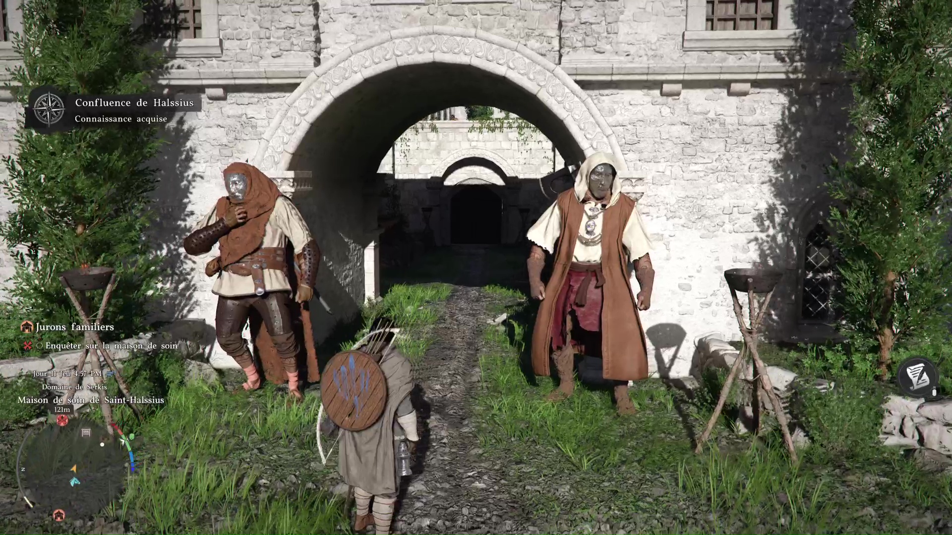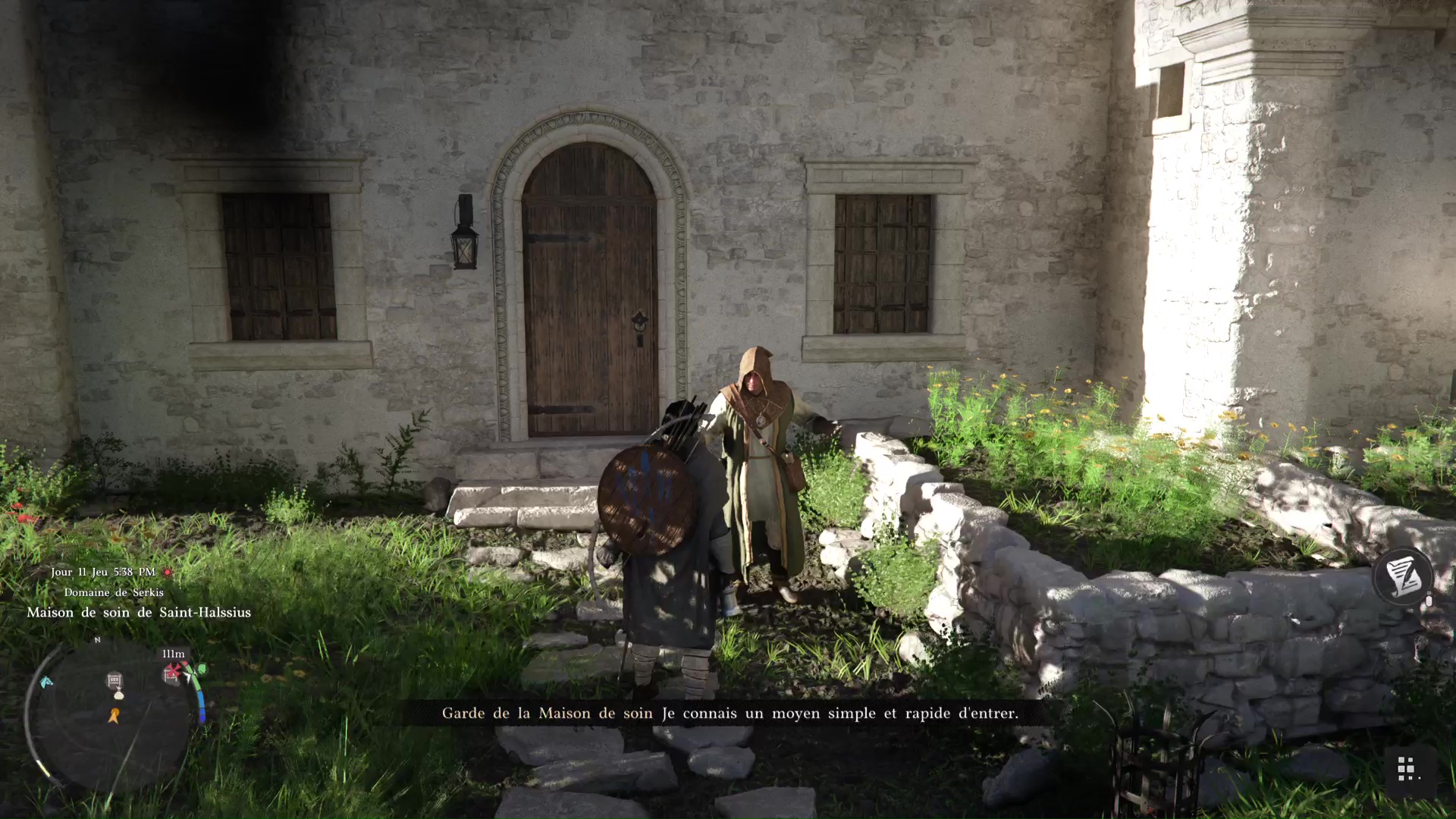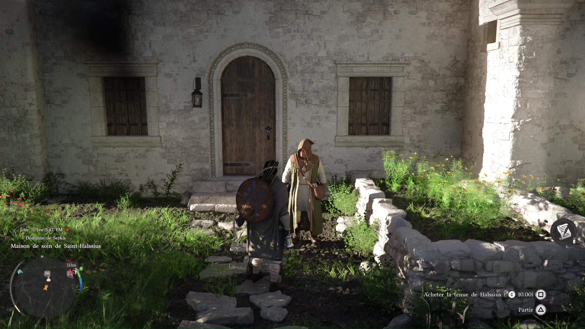 Plusieurs solutions s’offrent à vous. Soit vous contournez l’entrée principale par la droite pour récupérer les habits de Saint-Halssius auprès d’un garde véreux, mais cela vous coûtera quand même 10 pièces d’argent, ce qui n’est pas rien au début de l’aventure.
