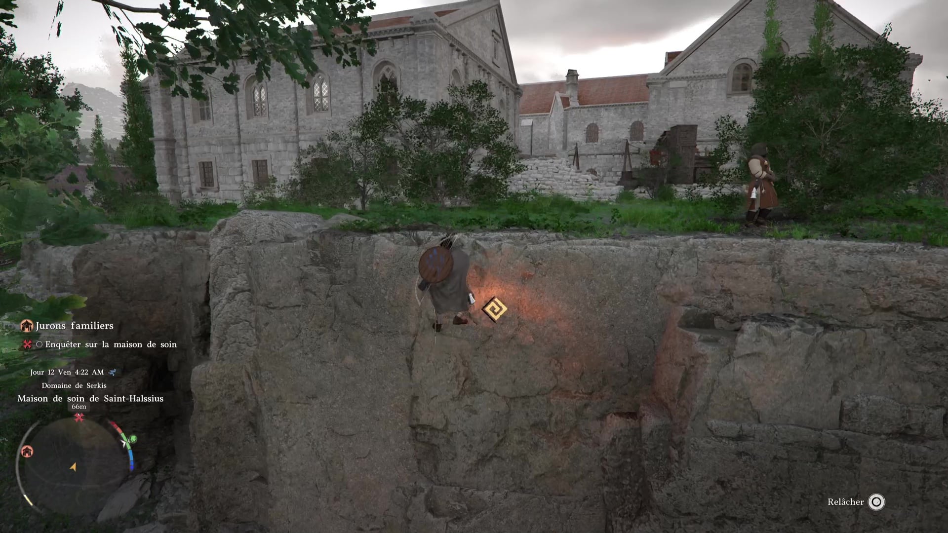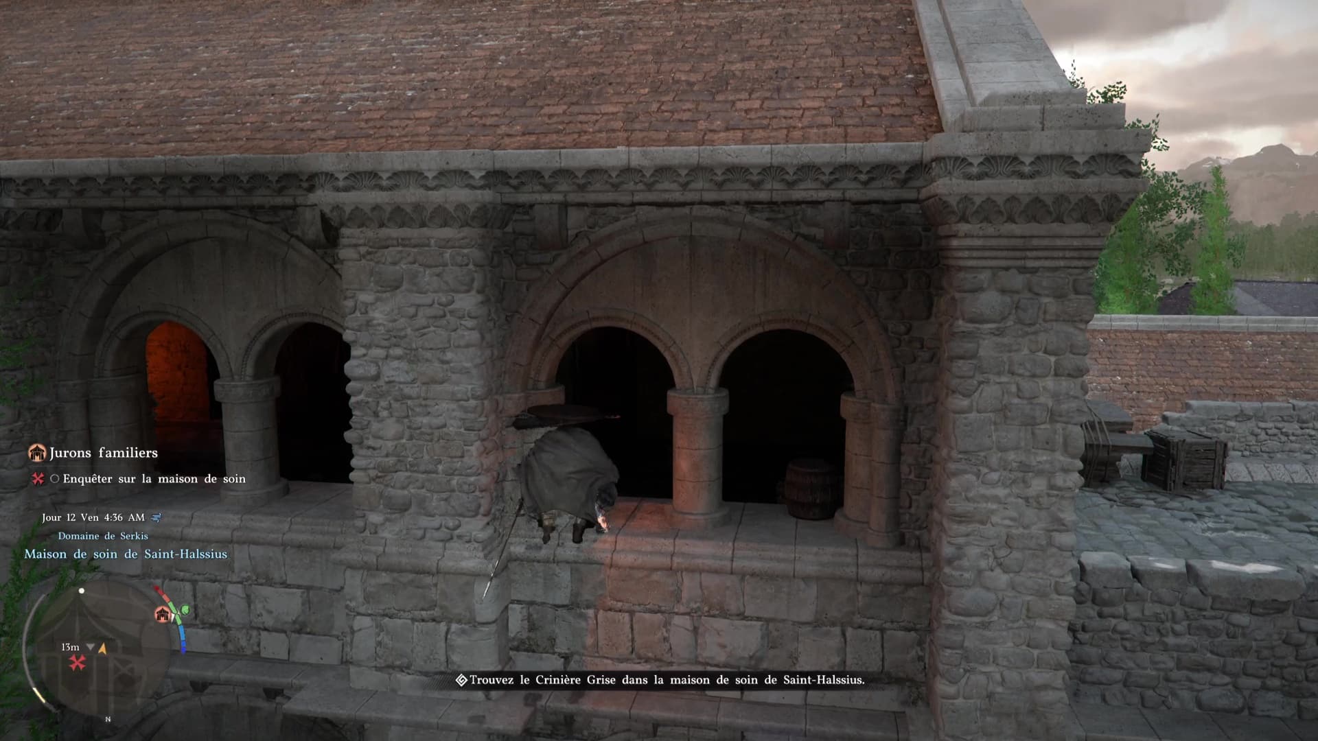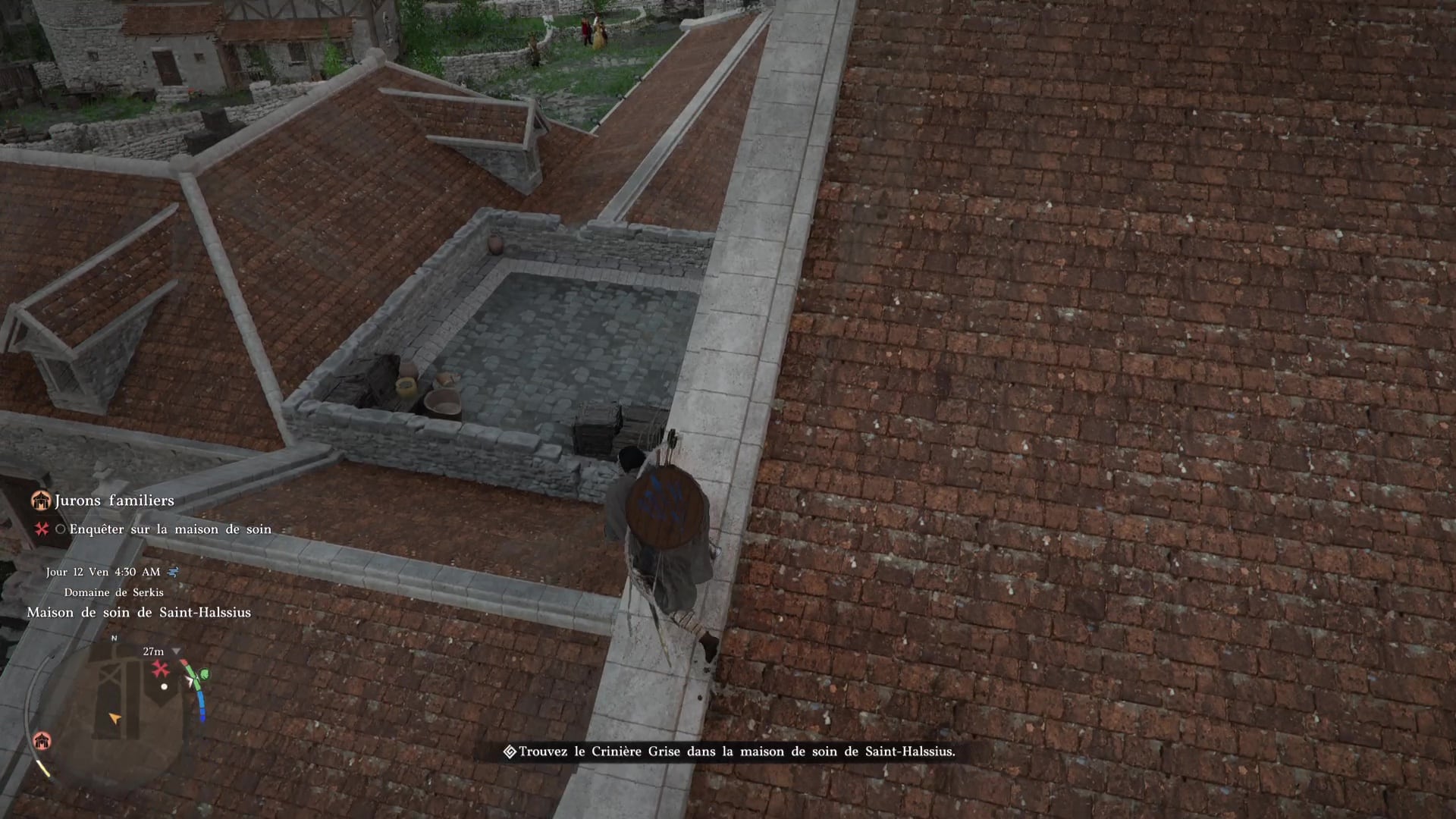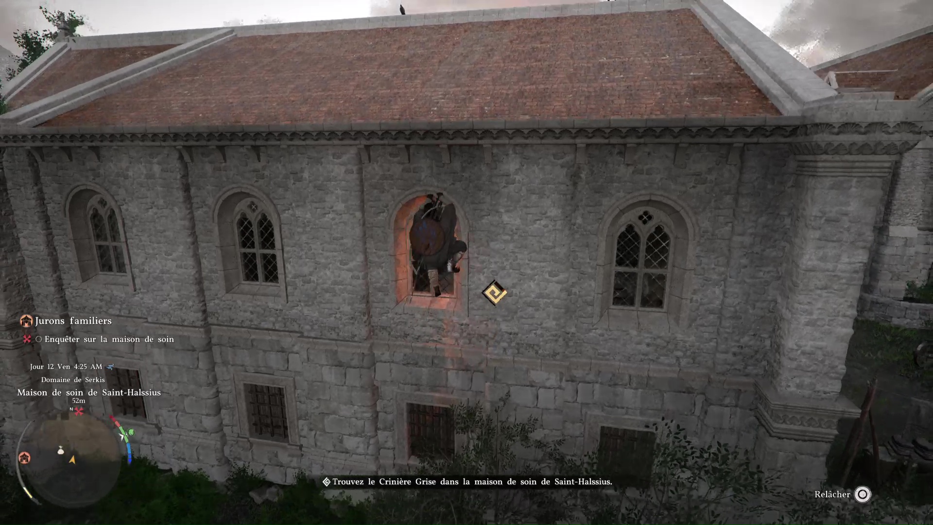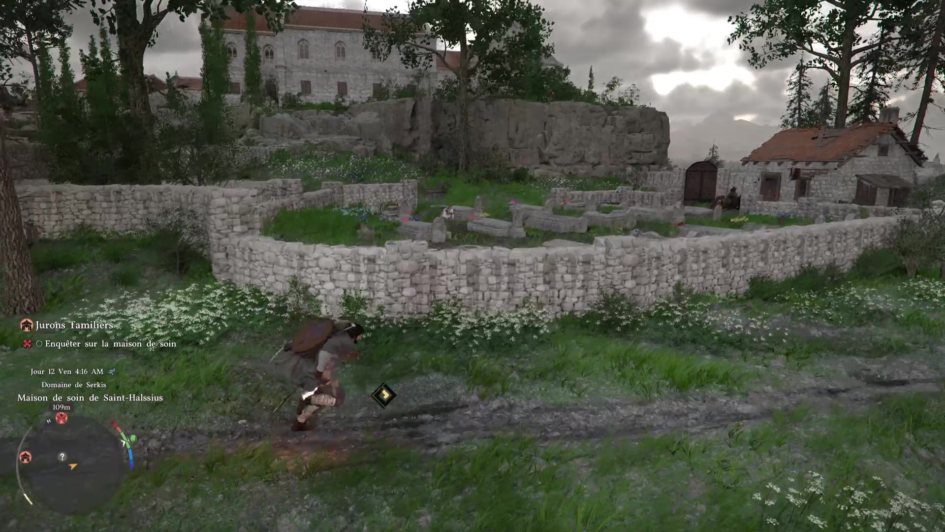 Et puis il y a une troisième possibilité : ne rien acheter et s’infiltrer dans l’enceinte de la maison de soins. En partant du garde qui veut vous vendre une tenue, continuez à longer l’enceinte de la maison de soins par l’est.
