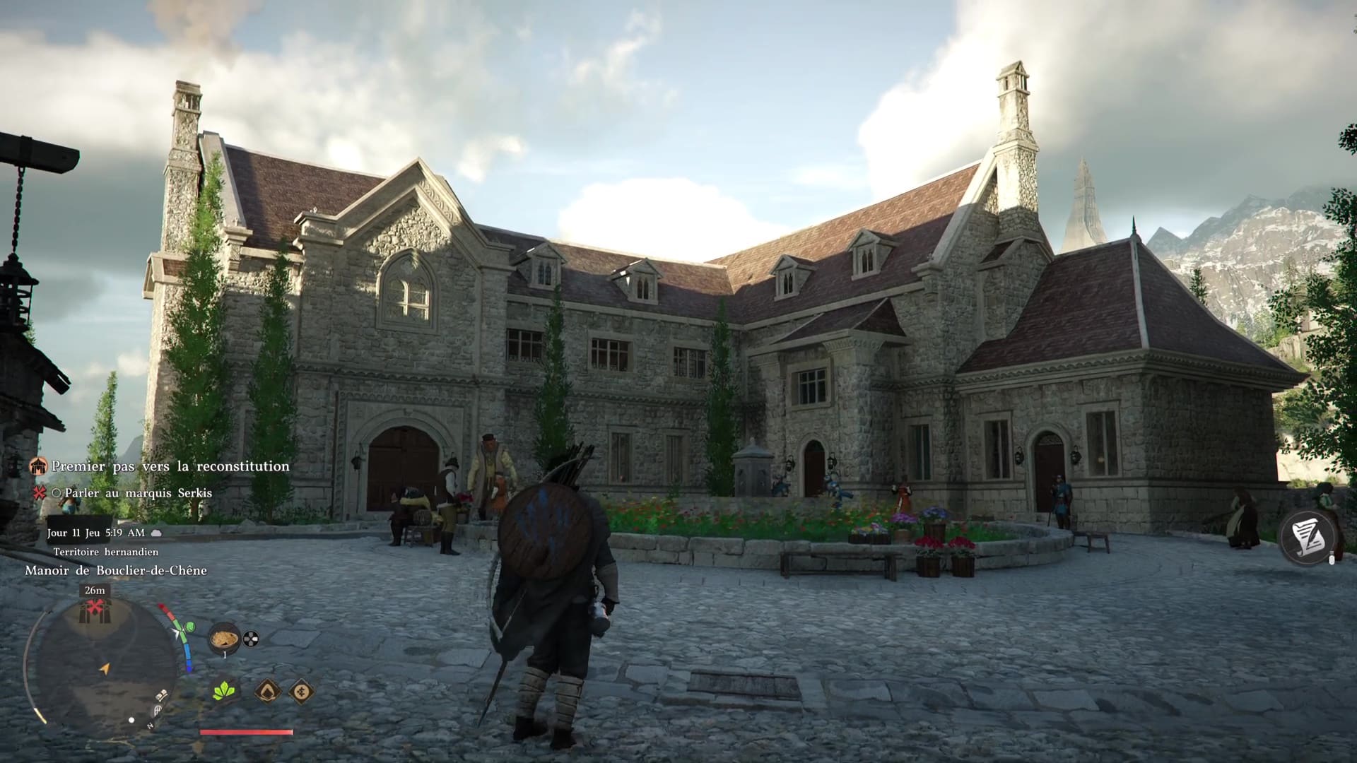 Suivez simplement le repère vous menant dans les ruelles d’Hernand pour tomber sur Marius, un camarade mal en point. Marchez ensuite avec lui pour échanger quelques nouvelles, avant que Kliff ne décide d’aller voir le marquis Serkis pour recevoir son aide en vue de la reconstruction des Crinières Grises.