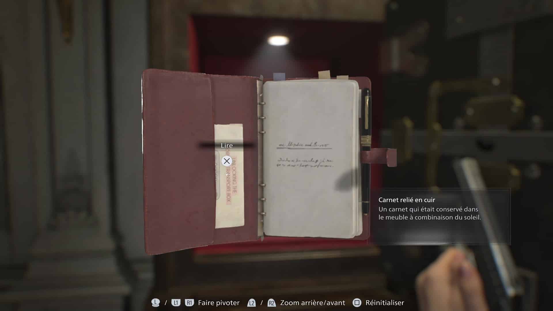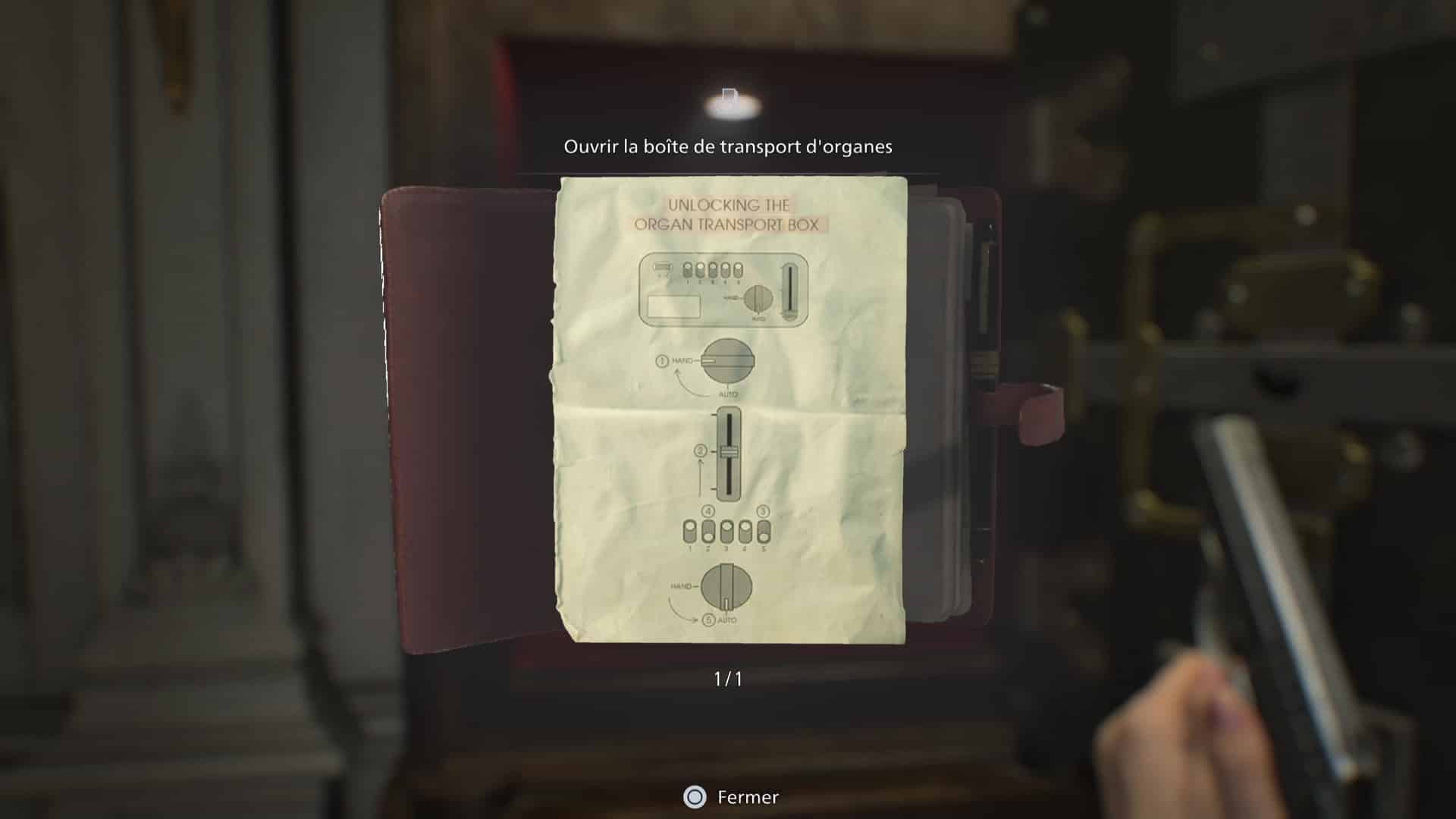 Ce n’est pas tout, il y a également à l’intérieur du coffre un carnet relié en cuir, contenant deux documents importants : « Les recherches de Spencer I » et « Ouvrir la boîte de transport d’organes ». Ce dernier est primordial pour la résolution de l’énigme du corps sans organes.