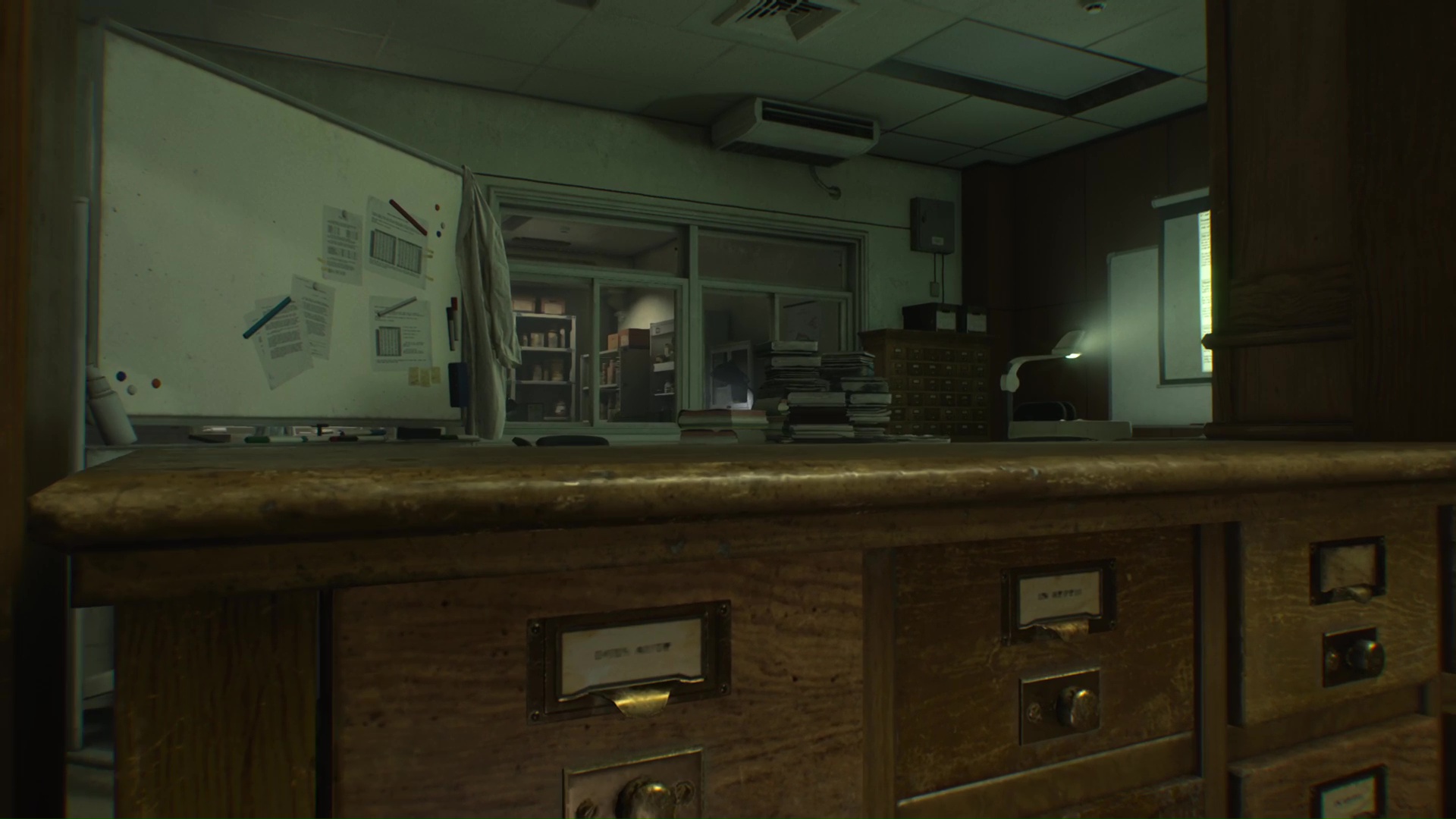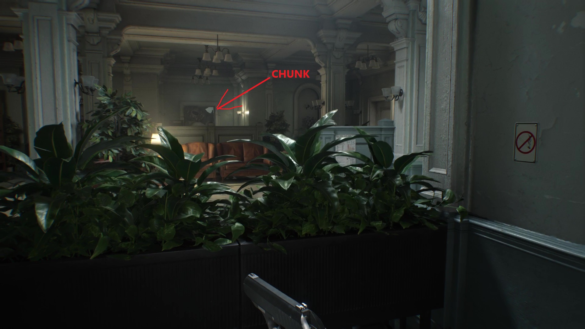 Filez au rez-de-chaussée, dans la Salle d’attente, et attendez que le Chunk se dirige vers le couloir de la Salle de traitement pour remonter au premier étage.