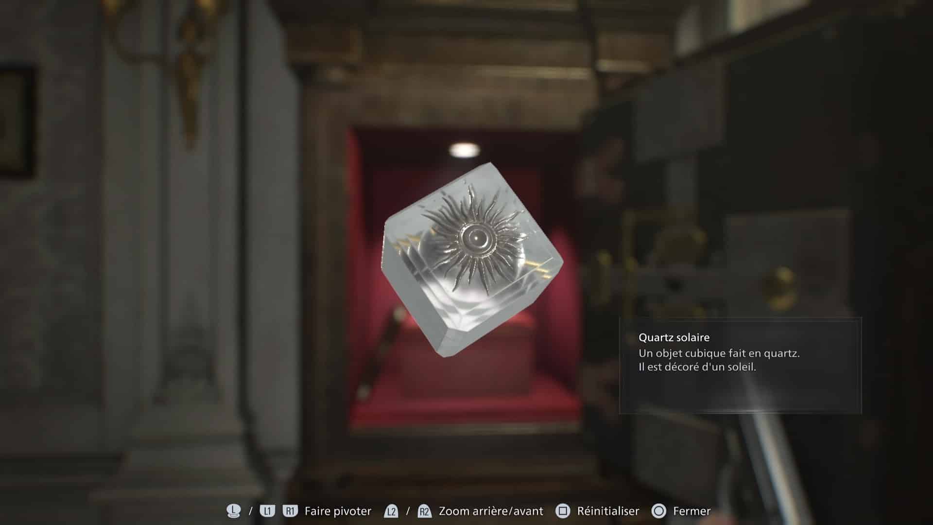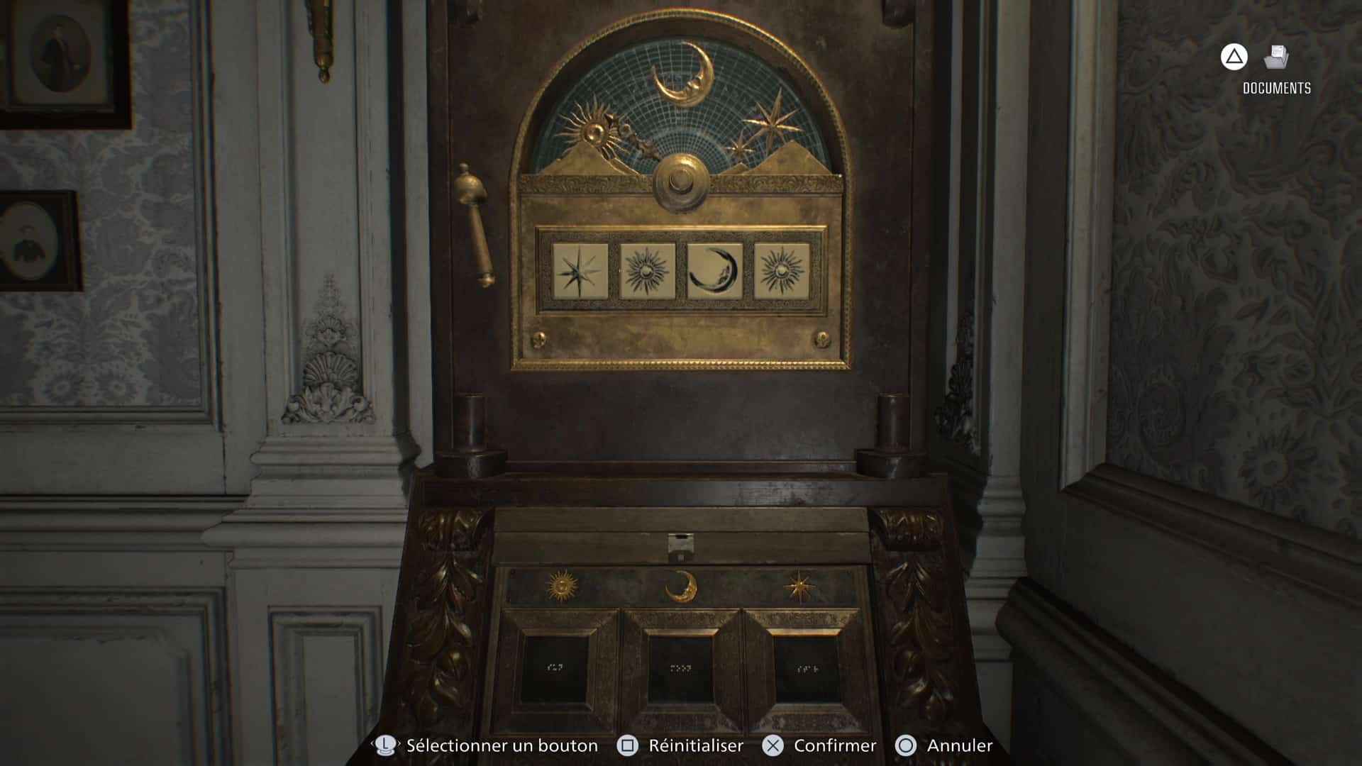 Maintenant que vous avez toutes les cartes en main, examinez le meuble à combinaison et rentrez la séquence suivante : Étoile – Soleil – Lune – Soleil. Vous déverrouillerez ainsi le meuble qui contient le quartz solaire.