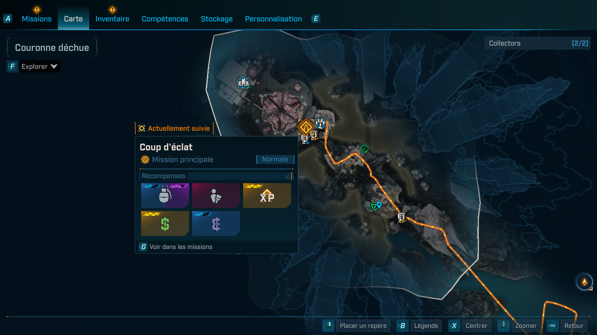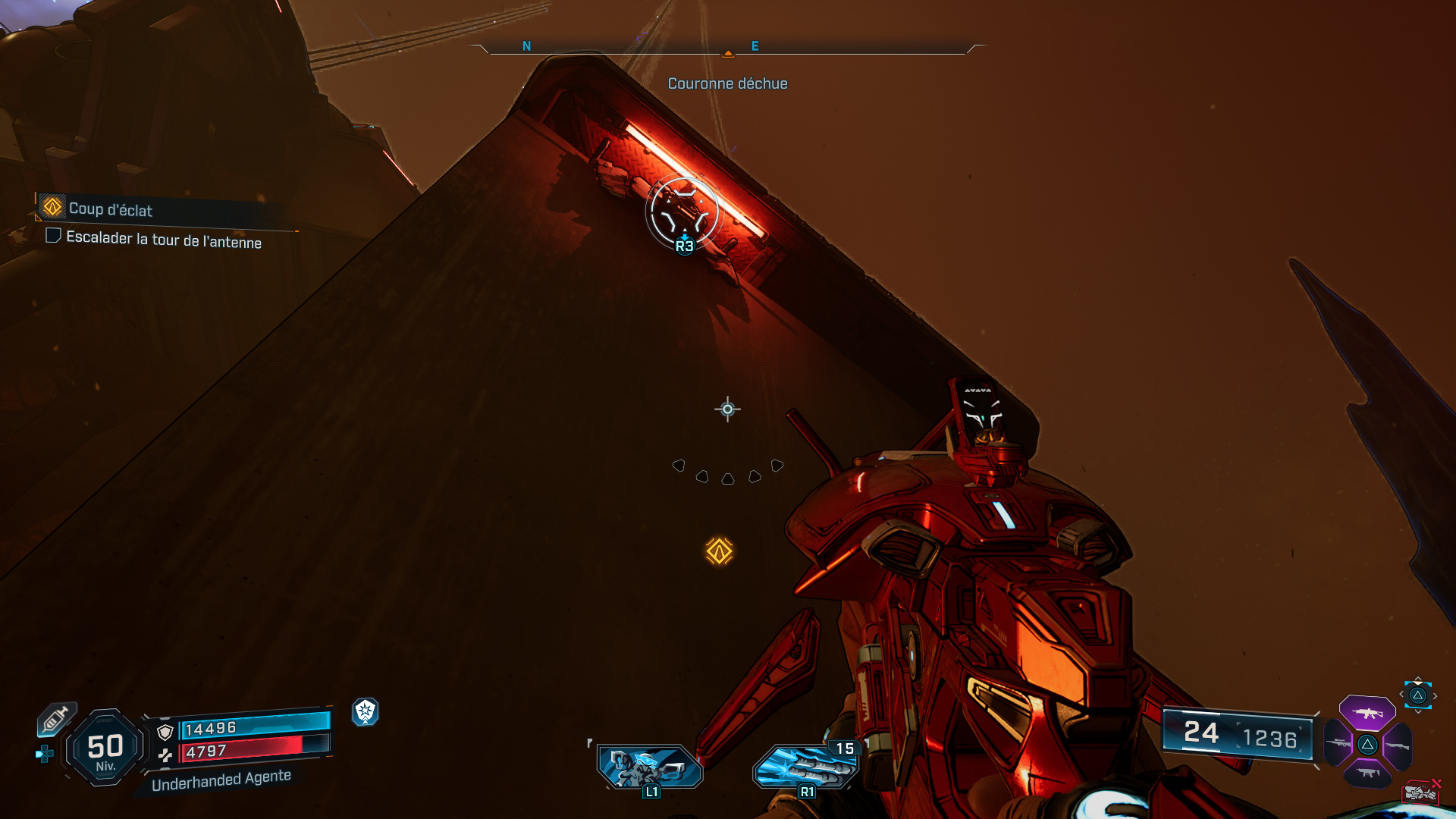 Dès lors, téléportez-vous à la Couronne Déchue à l’extrême nord-ouest de la carte, et commencez par vous débarrasser des Déconnectés avant de suivre Amara jusqu’à la plateforme de lancement. Cette dernière ne parvenant pas à libérer la première attache, prenez le relais en tirant dessus avec votre grappin.