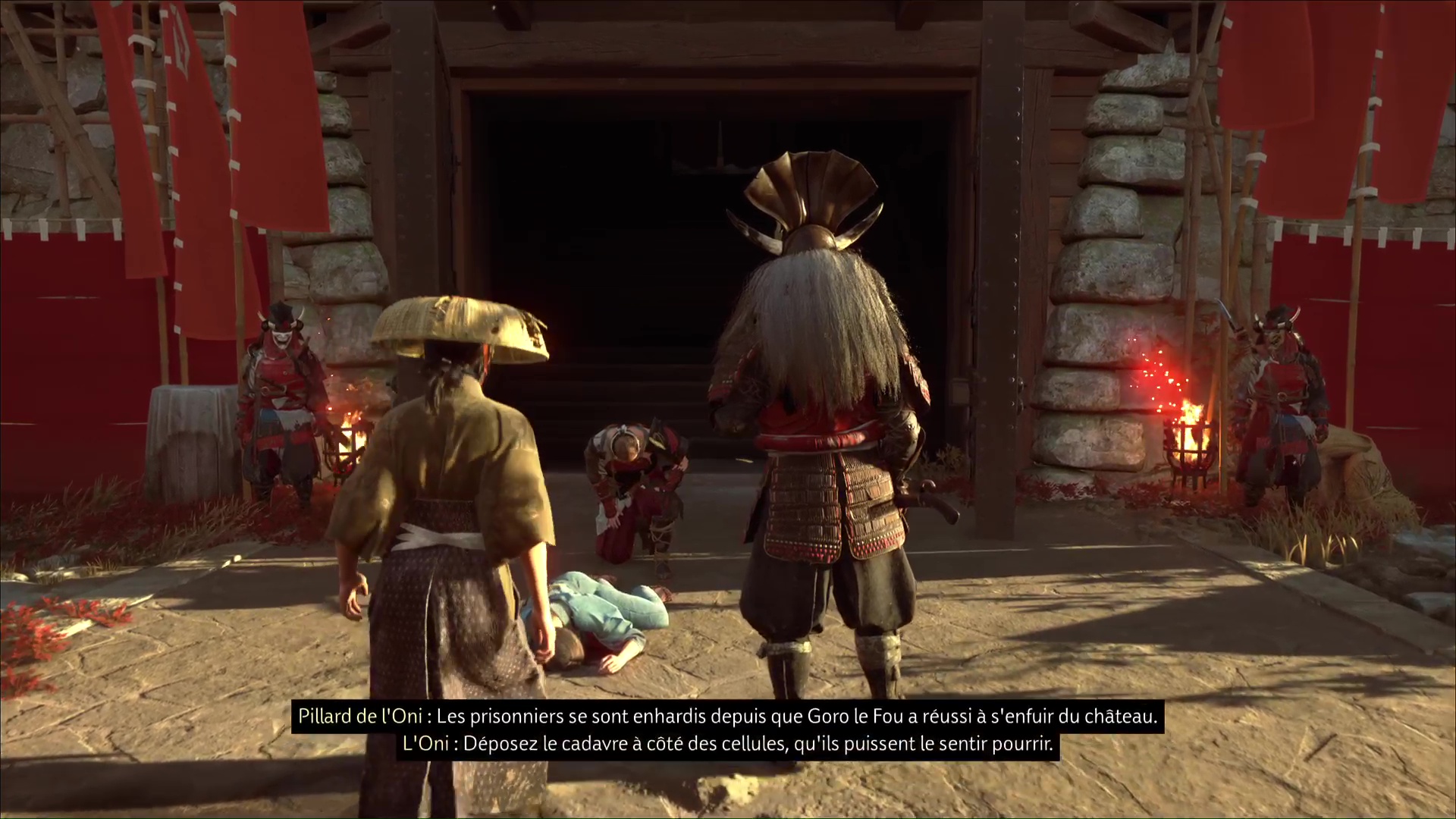 Jubei est justement conduit dans l’aile des prisonniers. Repartez ensuite aux côtés de l’Oni pour aller récupérer votre récompense avant d’être temporairement arrêté par une tentative de fuite échouée.