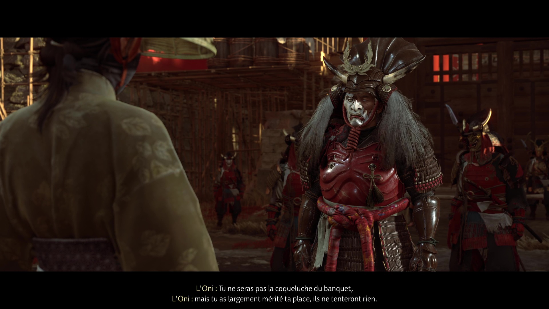 Une fois la vie de Kanta mise à zéro, volez-lui la clé tout en le relevant. Vous serez ensuite félicité par l’Oni qui confirme votre présence au banquet du soir.