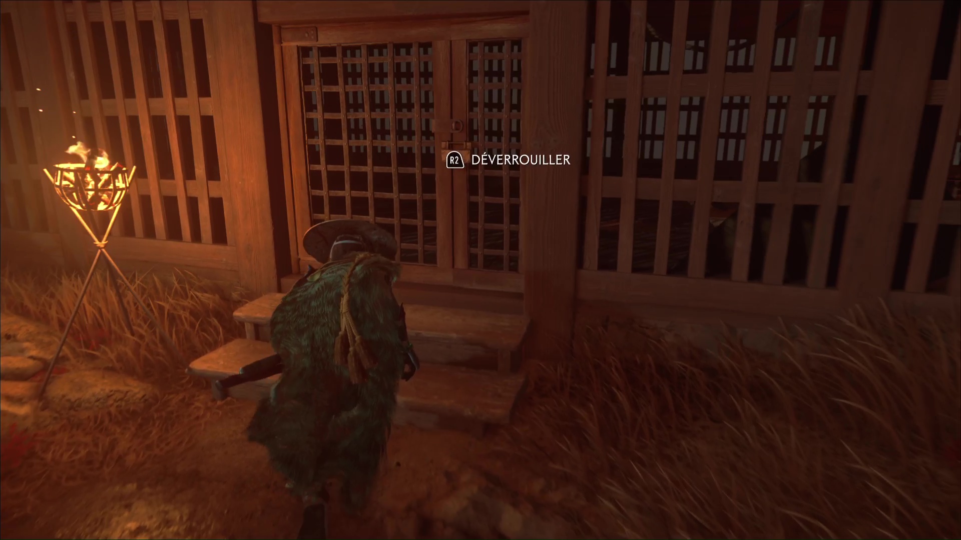 Ouvrez-la et entrez. À l’intérieur, a priori, aucune trace de l’Oni. Mais soudain, celui-ci sort de l’ombre et étrangle Atsu. Notre héroïne parvient à donner un coup de poignard, ce qui pousse l’Oni à l’éjecter dehors.
