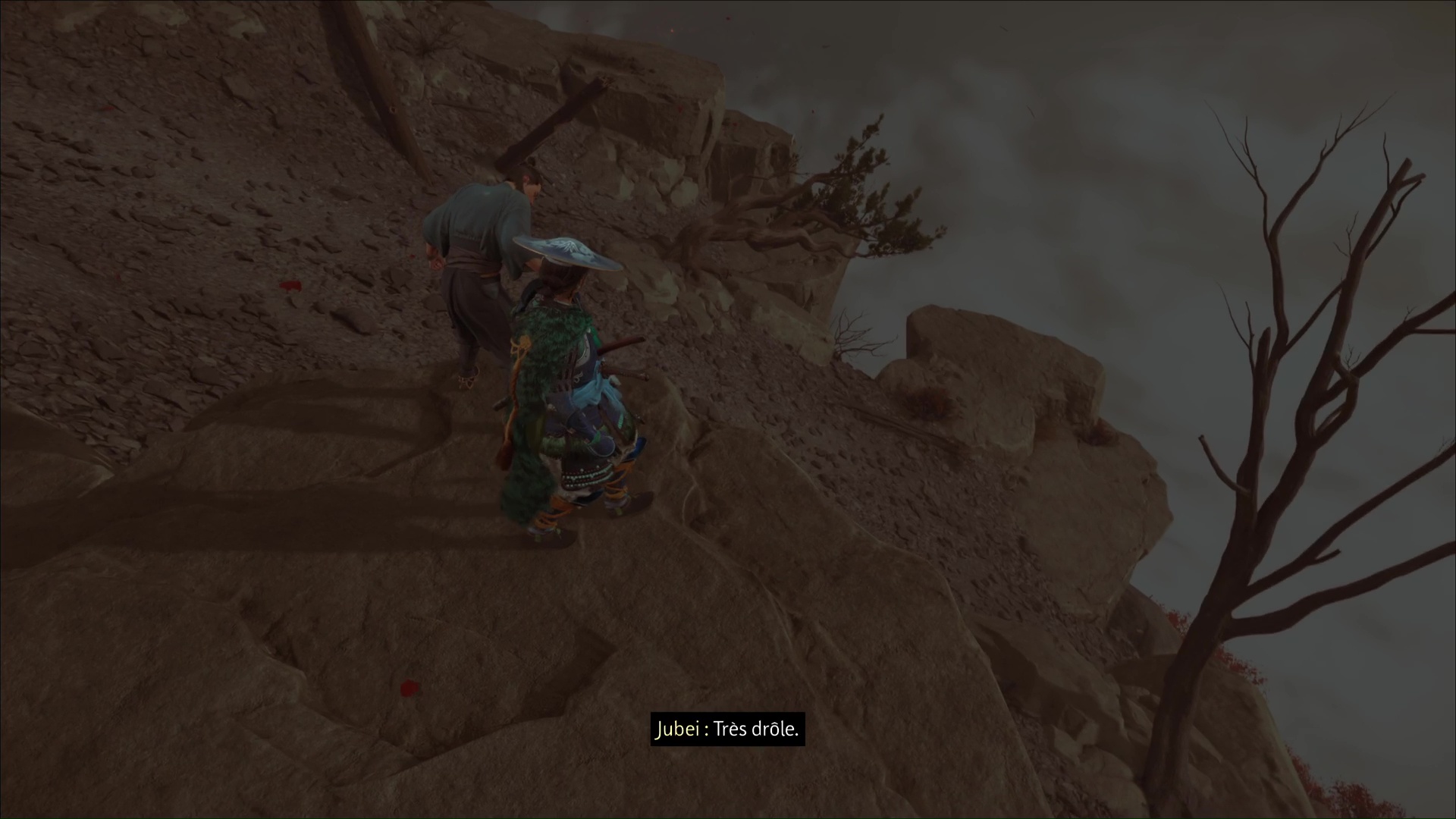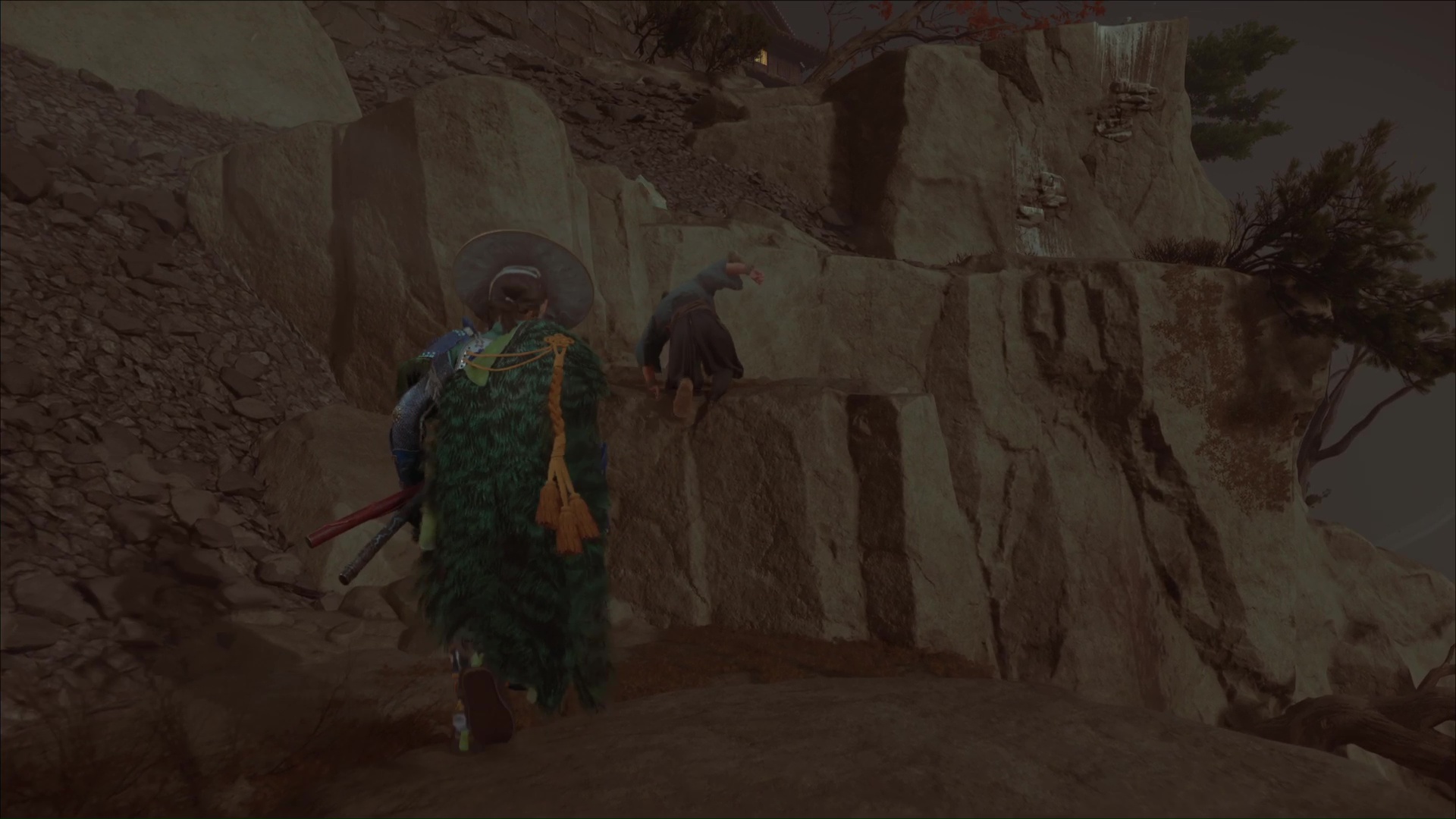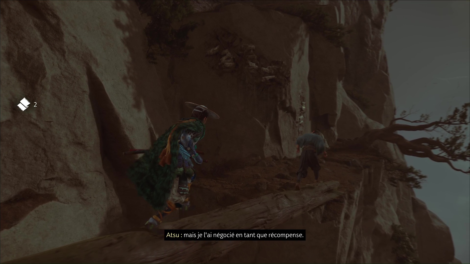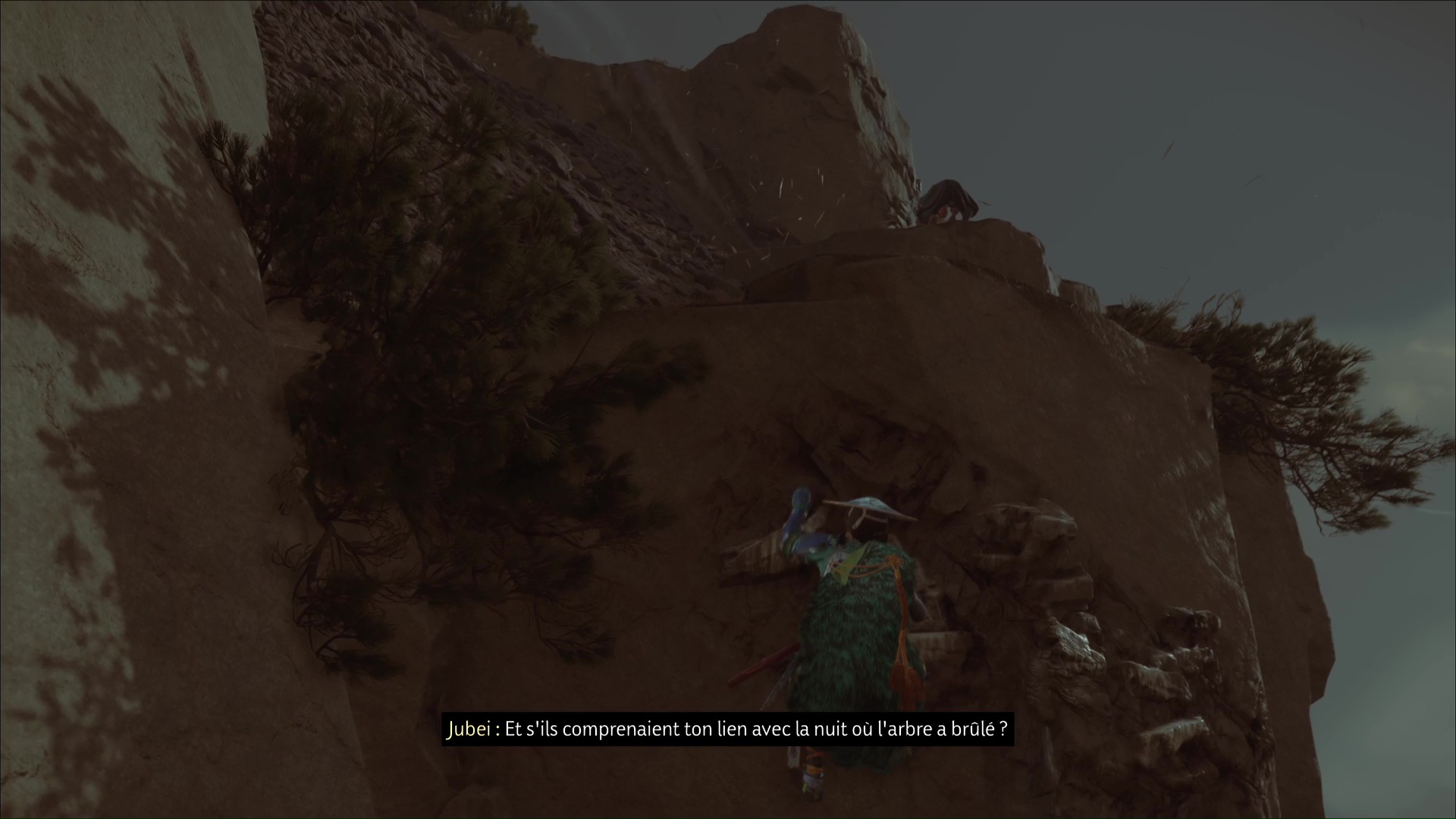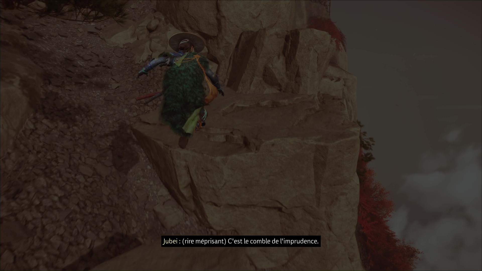 Descendez la paroi rocheuse devant vous et suivez Jubei en longeant la falaise au fil des sauts et des moments de grimpette.