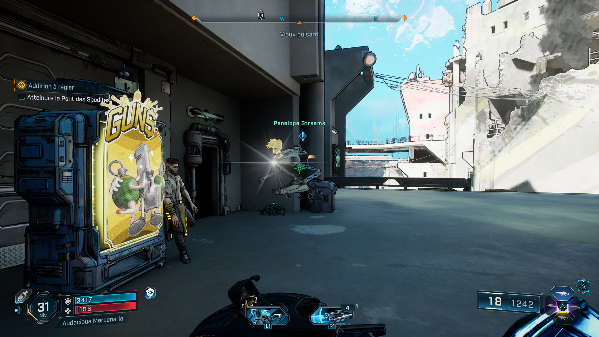 Dans Borderlands 4, il suffit de se balader dans la ville de Carcadia pour croiser le chemin de Penelope Streams, un robot journaliste, qui a eu vent d’une rumeur autour de l’existence d’un mystérieux distributeur automatique légendaire. Et c’est donc par le biais d’une mission secondaire qu’elle vous demande de partir à sa recherche pour en avoir le cœur net, et qui sait, peut-être même mettre la main sur son précieux butin.