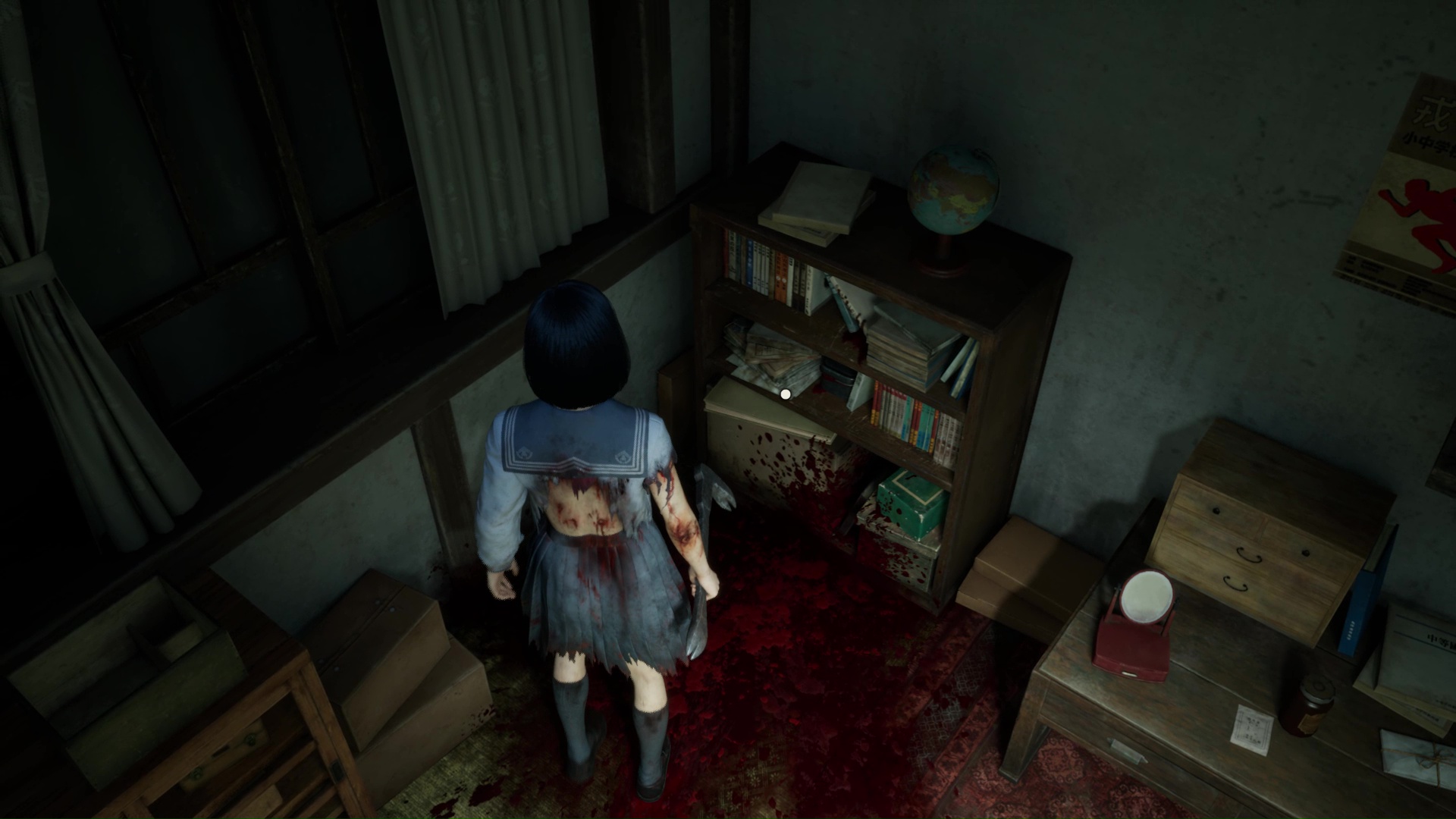 Si vous avez besoin de retourner dans la Résidence Shimizu I, sachez que vous le pouvez d’ores et déjà en empruntant la porte au fond. Mais vous devrez retraverser les deux premières versions pour revenir ici. Vous allez devoir commencer par revenir dans la Chambre d’Hinako plus loin dans le couloir puis interagir avec la bibliothèque et notamment avec son journal intime en bas pour récupérer la Cire, qui sera primordiale dans la première version de la Résidence Shimizu.