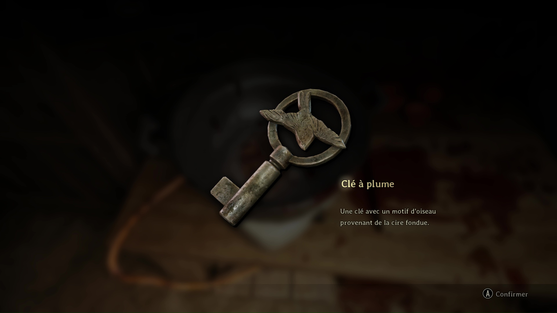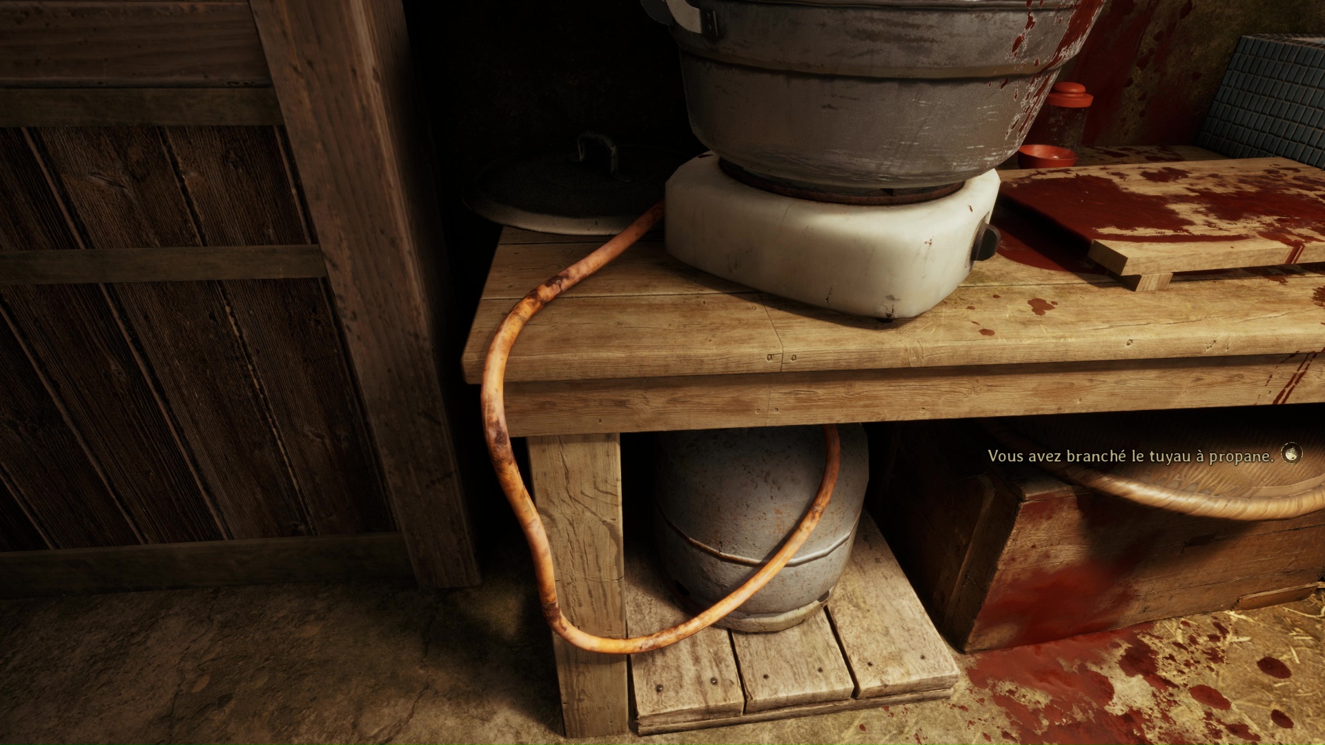 Rendez-vous tout de suite dans la cuisine pour utiliser le Tuyau de propane sur la plaque et placez la Cire récupérée plus tôt dans le plat pour la faire fondre et obtenir la Clé à plume. Il est désormais temps de vous rendre dans la salle de l’énigme de la Photo sinistre pour la résoudre.