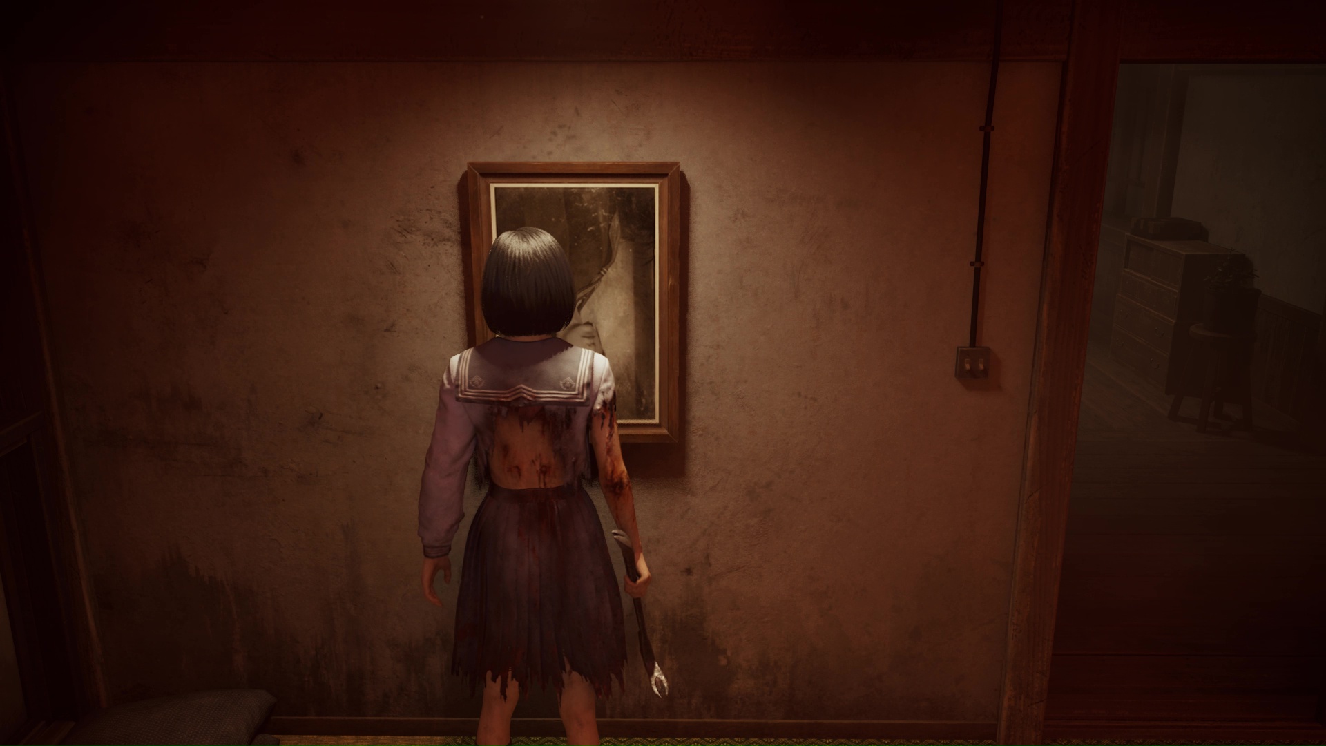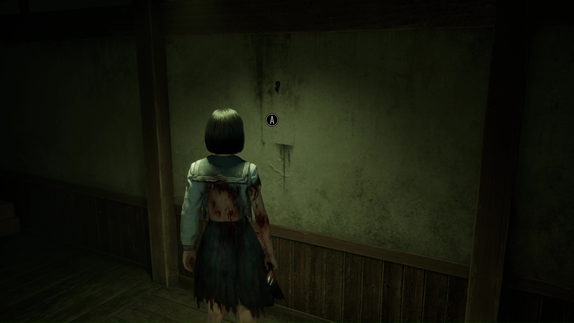 Vous constatez alors que la Résidence va revêtir diverses formes et divers agencements et il vous faudra jongler entre celles-ci pour trouver la sortie et le bon chemin. Rendez-vous dans le salon situé au fond du couloir à gauche dès votre entrée pour déclencher un flashback. Ramassez ensuite le Calendrier jauni à la date du 26 mai 1960 sur la table. Rejoignez ensuite le couloir au sud-est de la maison pour trouver une sorte de remise ou salle de peinture dans laquelle vous trouverez le Cadre photo représentant Hinako, élément manquant à l’énigme Photo sinistre de la Résidence Shimizu I.