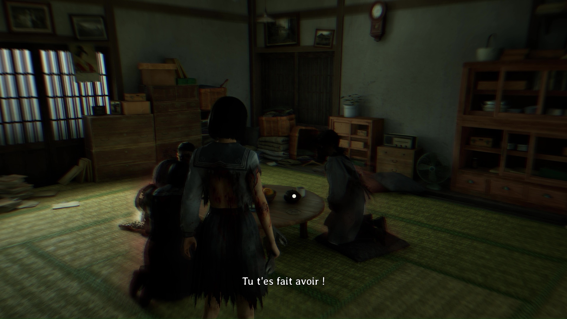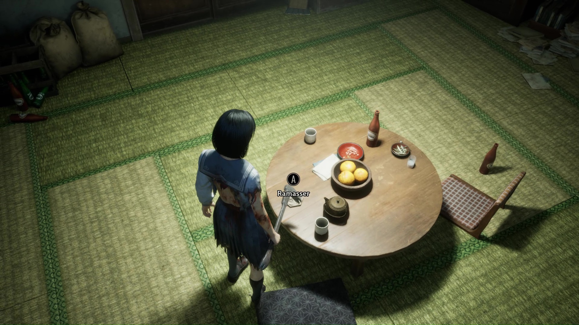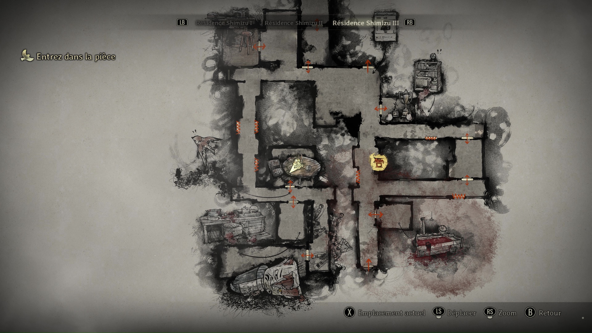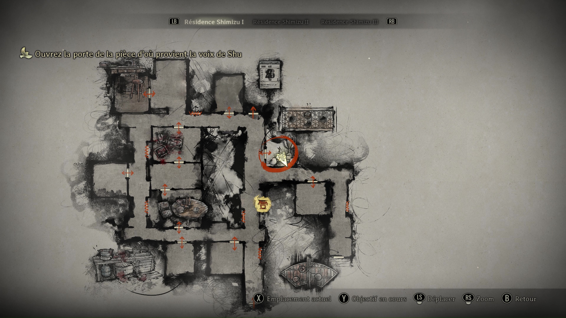 Retournez près de la porte à l’emblème d’oiseau pour utiliser votre Clé à plume obtenue précédemment et assister à l’intérieur à un nouveau flashback. Enfin, ramassez sur la table le dernier écusson (Oiseau noir et épée). Vous pouvez retourner dans la Résidence Shimizu I.