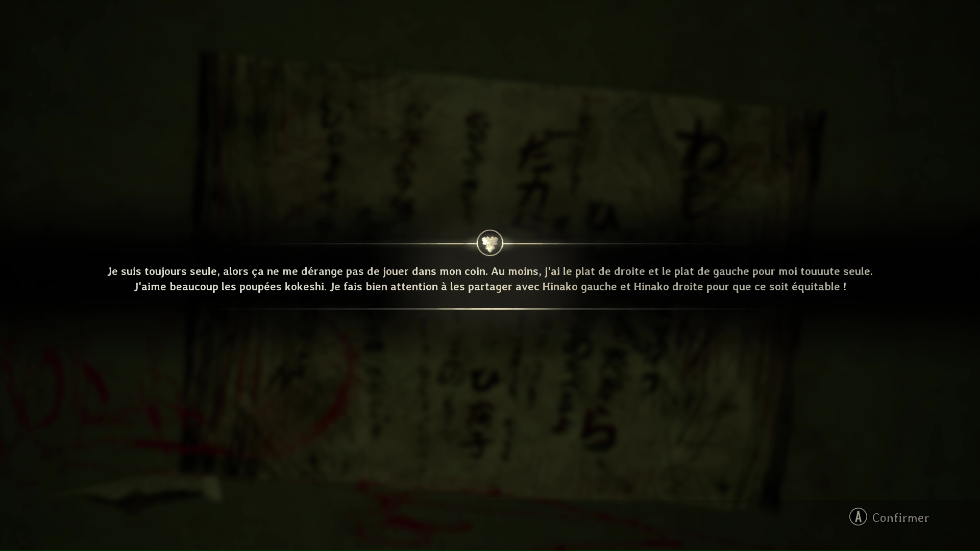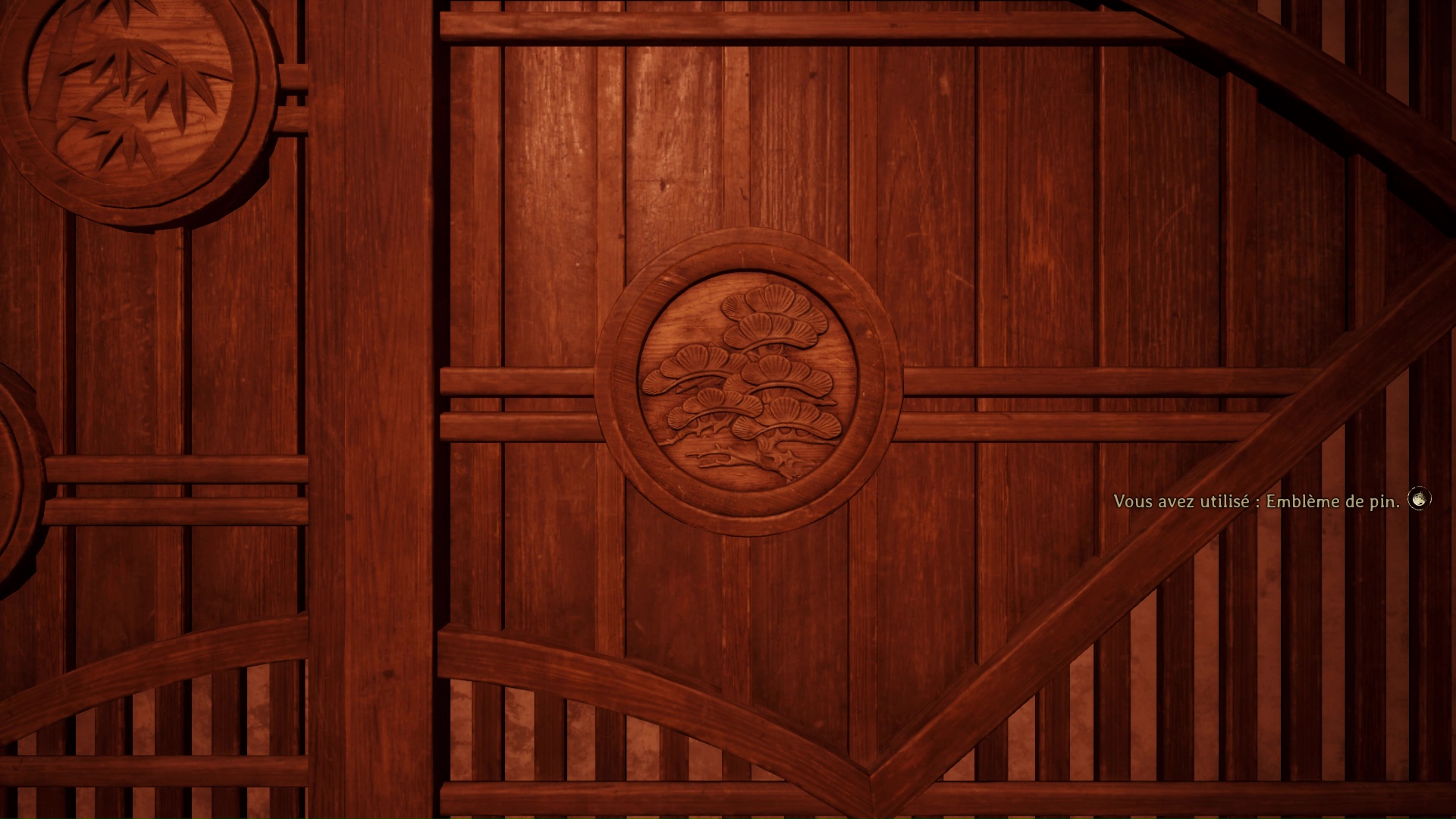 Une fois l’énigme résolue, vous entrez dans la Chambre d’Hinako pour trouver l’Emblème de pin et déclencher une cinématique.