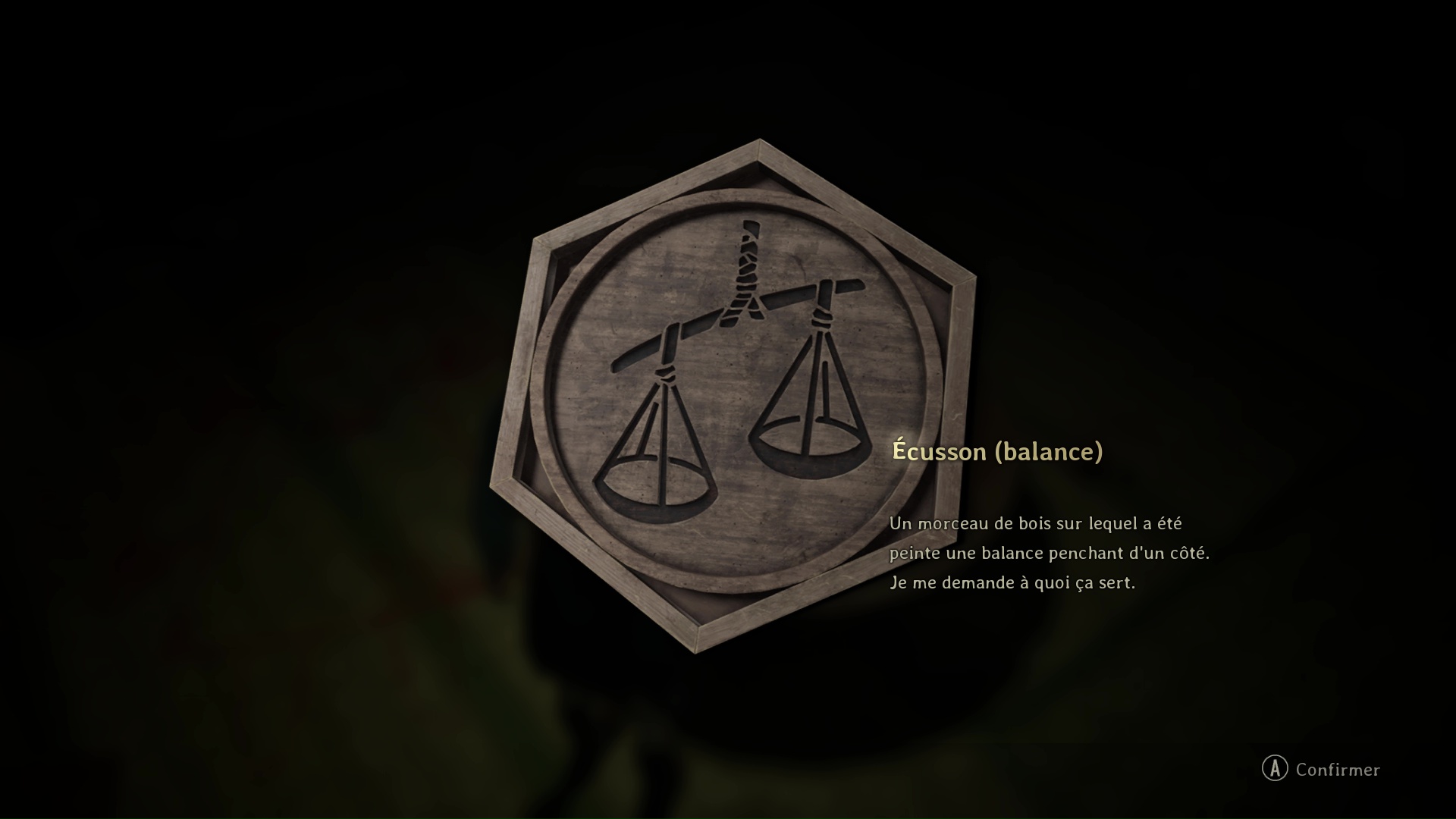 - Au milieu en bas : Vide (« La balance […] avait disparu ») — Retournez la balance pour afficher un écusson vide