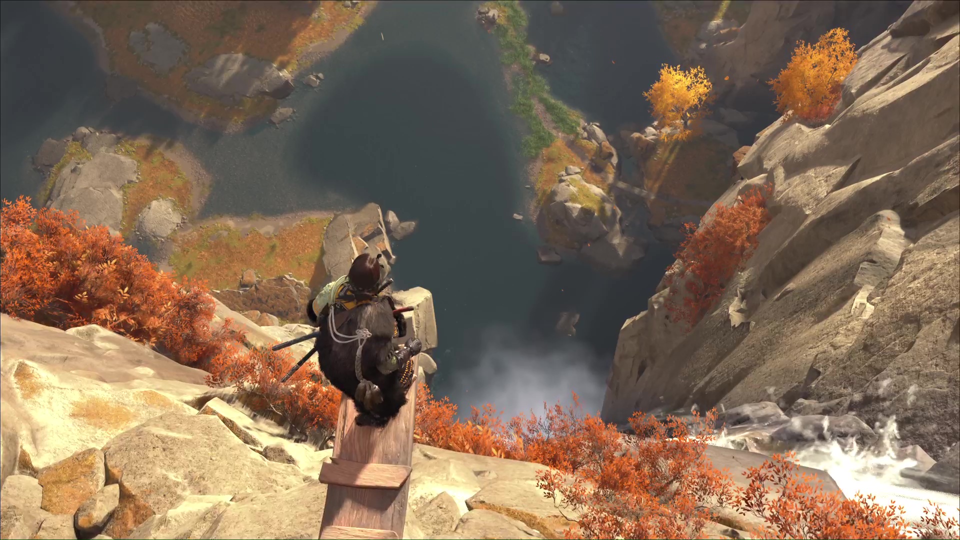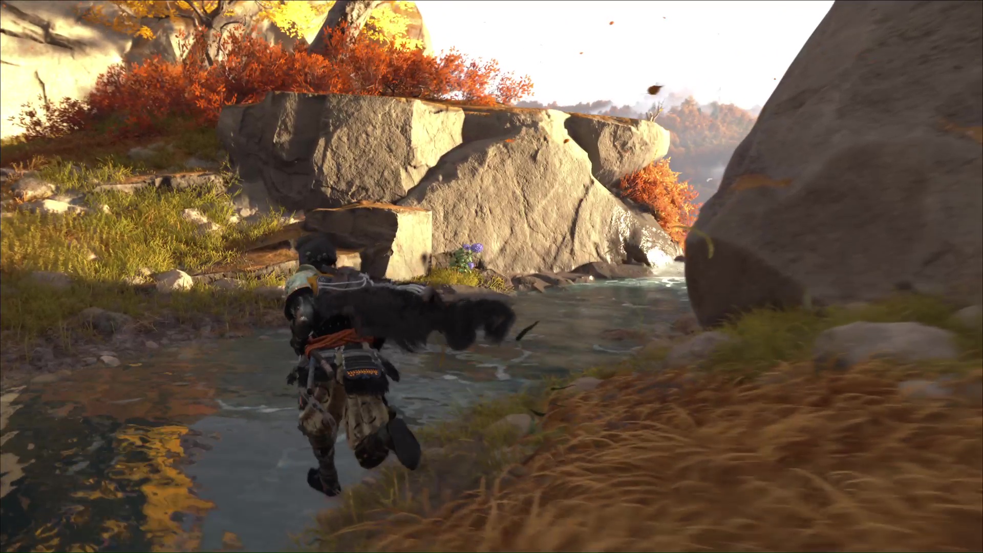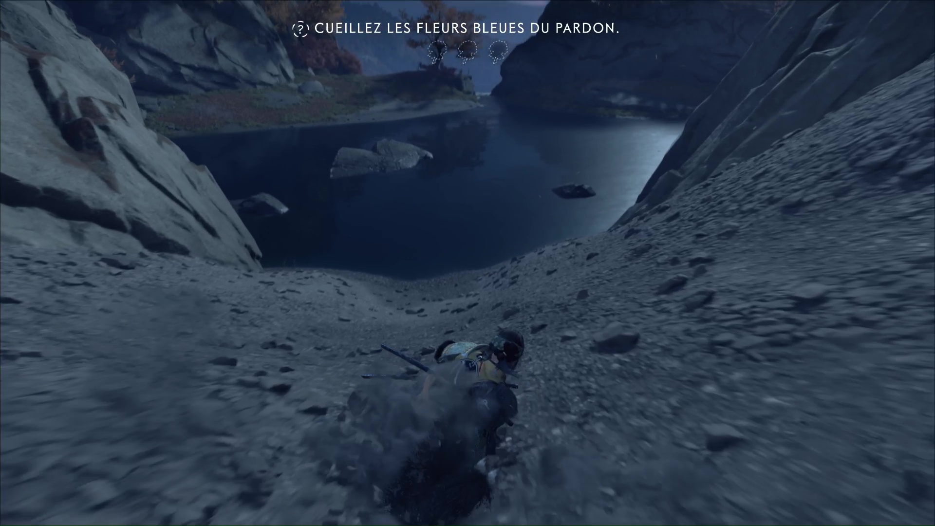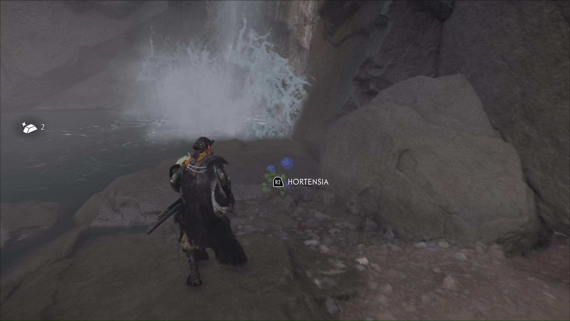 Revenez vers le lac et cherchez le sommet de la cascade pour cueillir de nouveaux hortensias. Terminez par rejoindre le fond de la zone. Au pied d’une cascade, le dernier bouquet d’hortensias vous attend. Une fois les trois bouquets récupérés, approchez du bord de la falaise, montez sur la planche et sautez dans l’eau en contrebas pour revenir au début du sanctuaire.