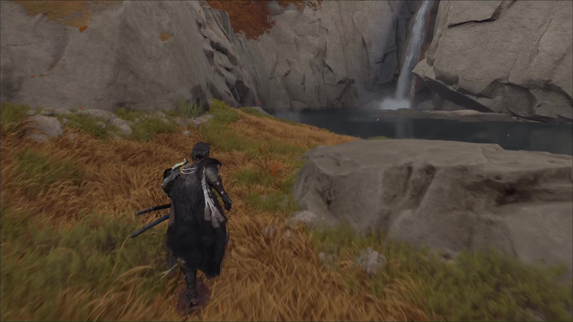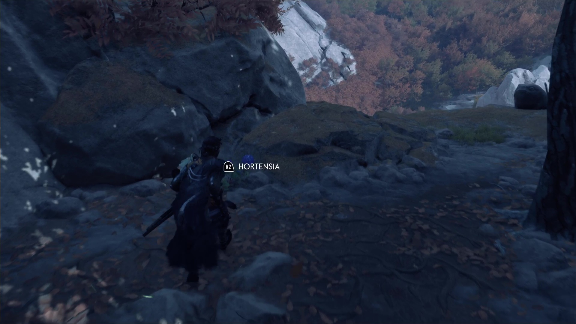 Descendez ensuite coup sur coup via deux pentes glissantes pour atterrir dans un petit lac. Sortez de l’eau et partez sur la gauche en direction des arbres. Ramassez les hortensias situés juste avant le bord de la falaise.
