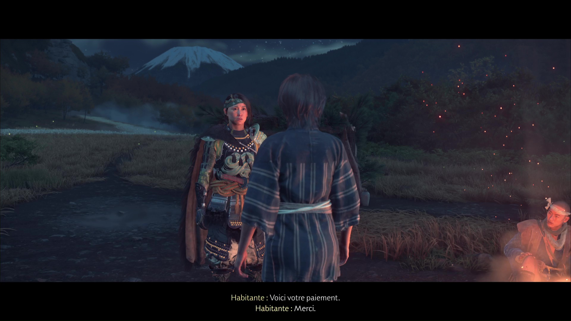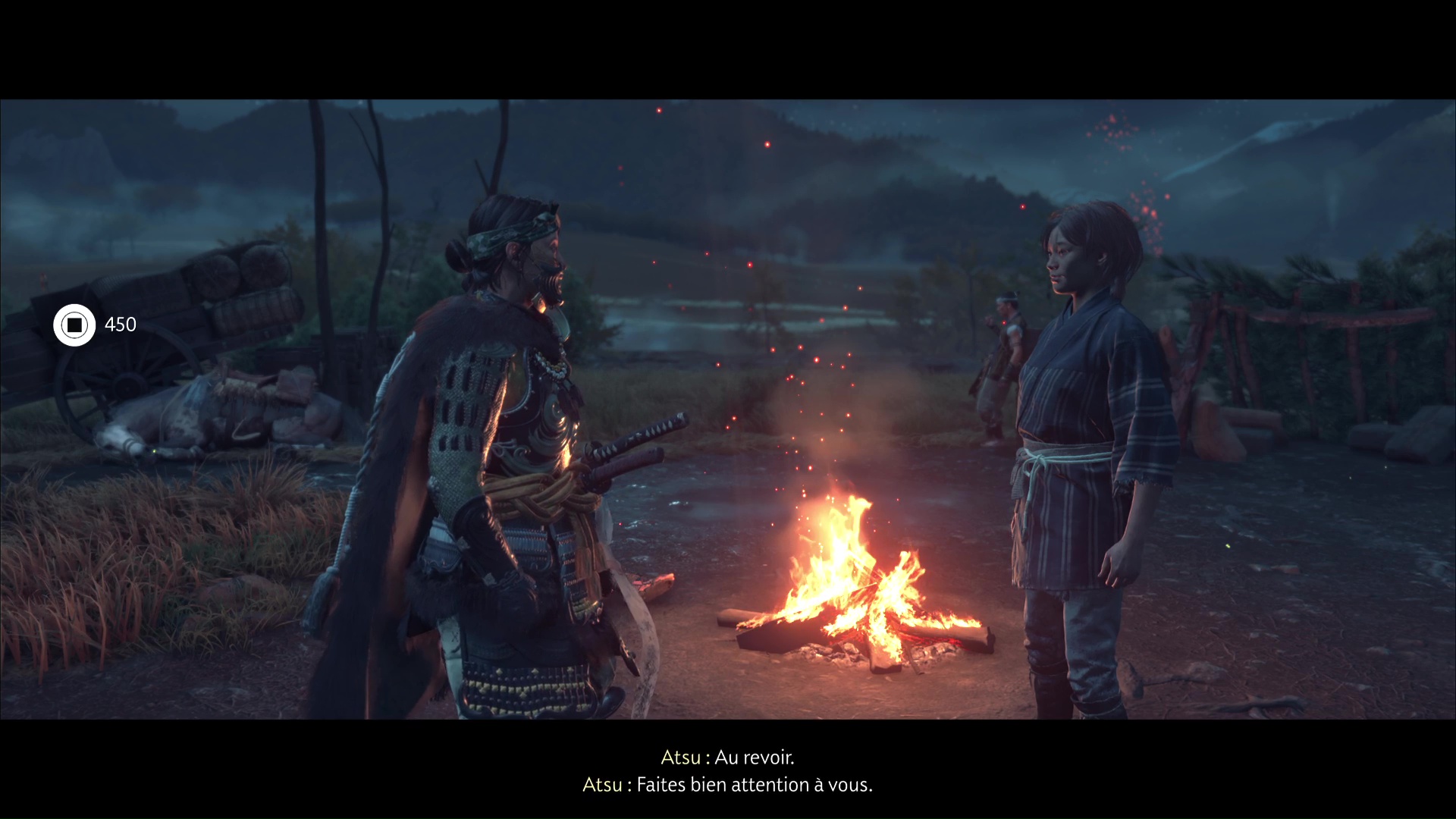 Vous assisterez ensuite à un dialogue final entre Atsu et l’habitante du camp, et après quelques conseils donnés par notre héroïne, une récompense de 450 pièces est donnée.