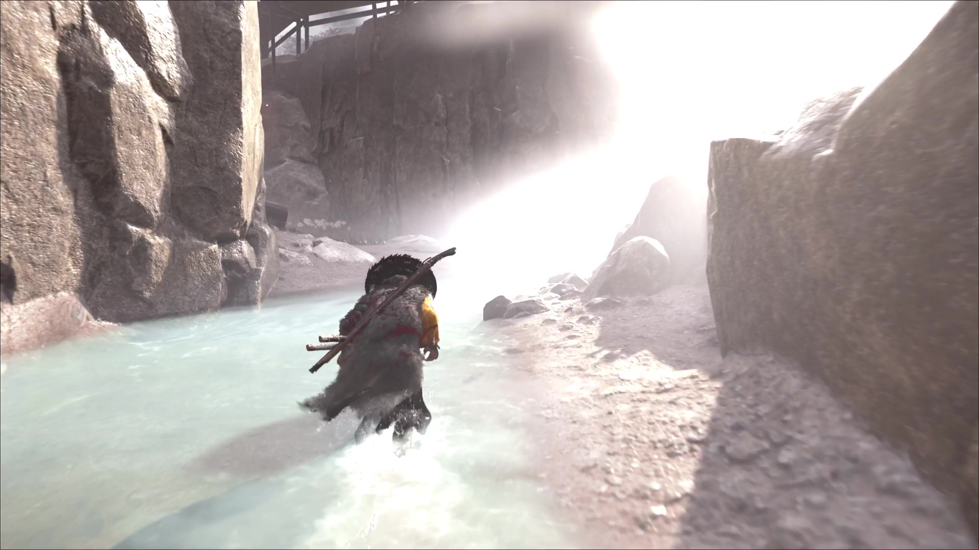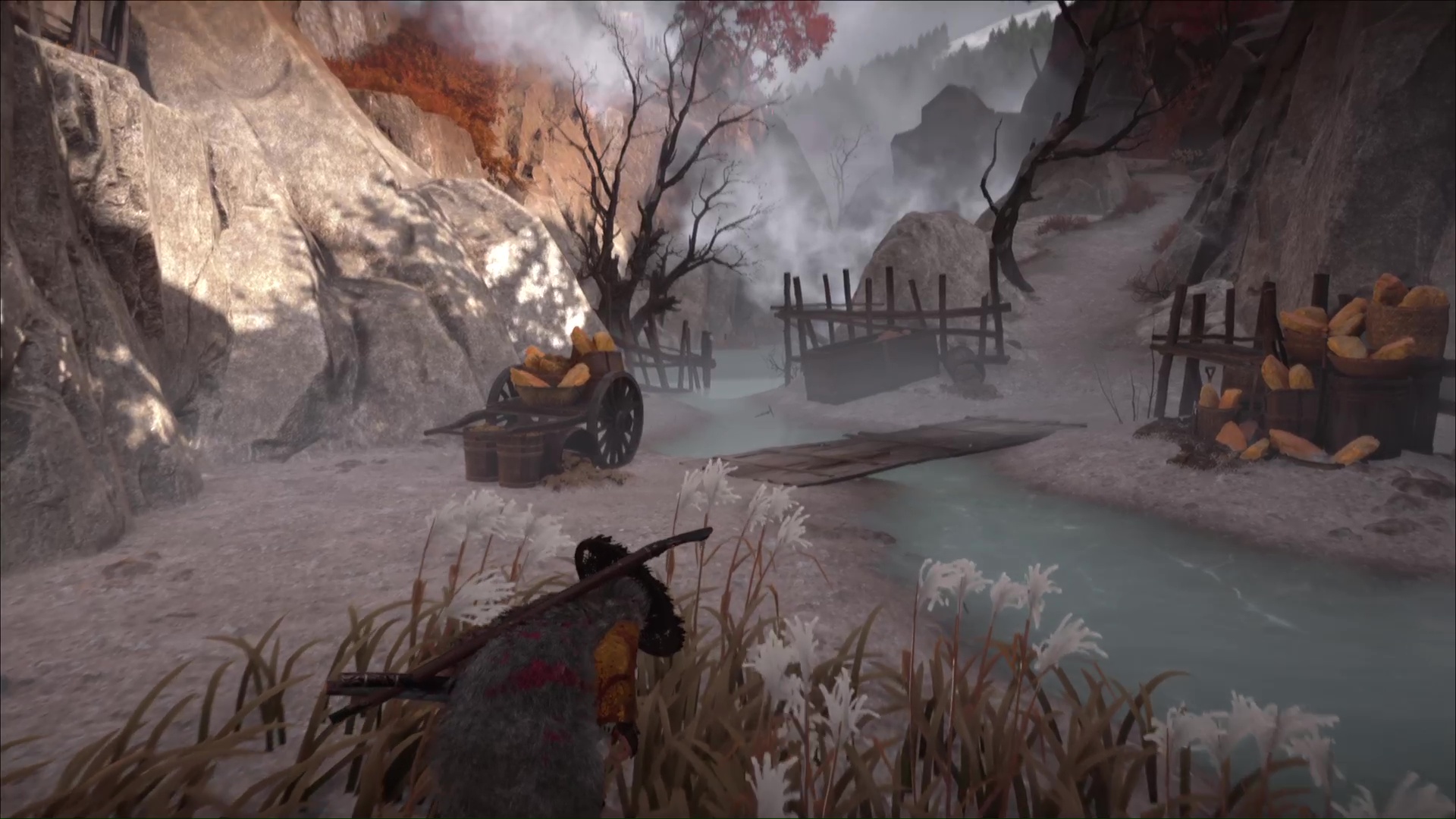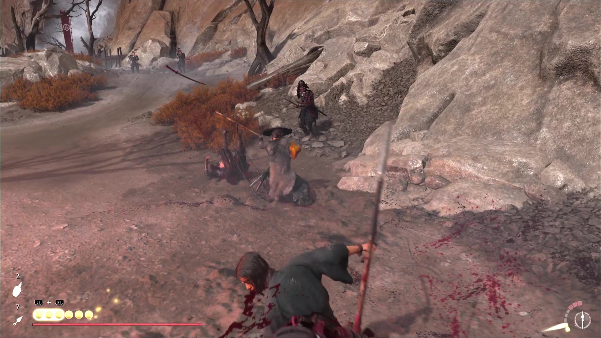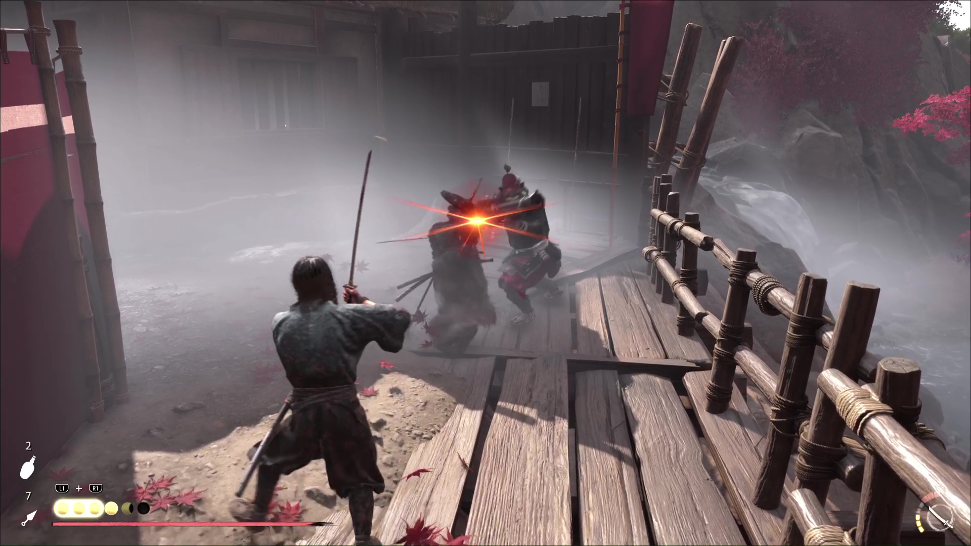 Montez ensuite un petit chemin qui mène à d’autres ennemis un peu plus haut, en gardant à l’œil la brute qui utilise justement un bō-hiya. Traversez le pont juste après.