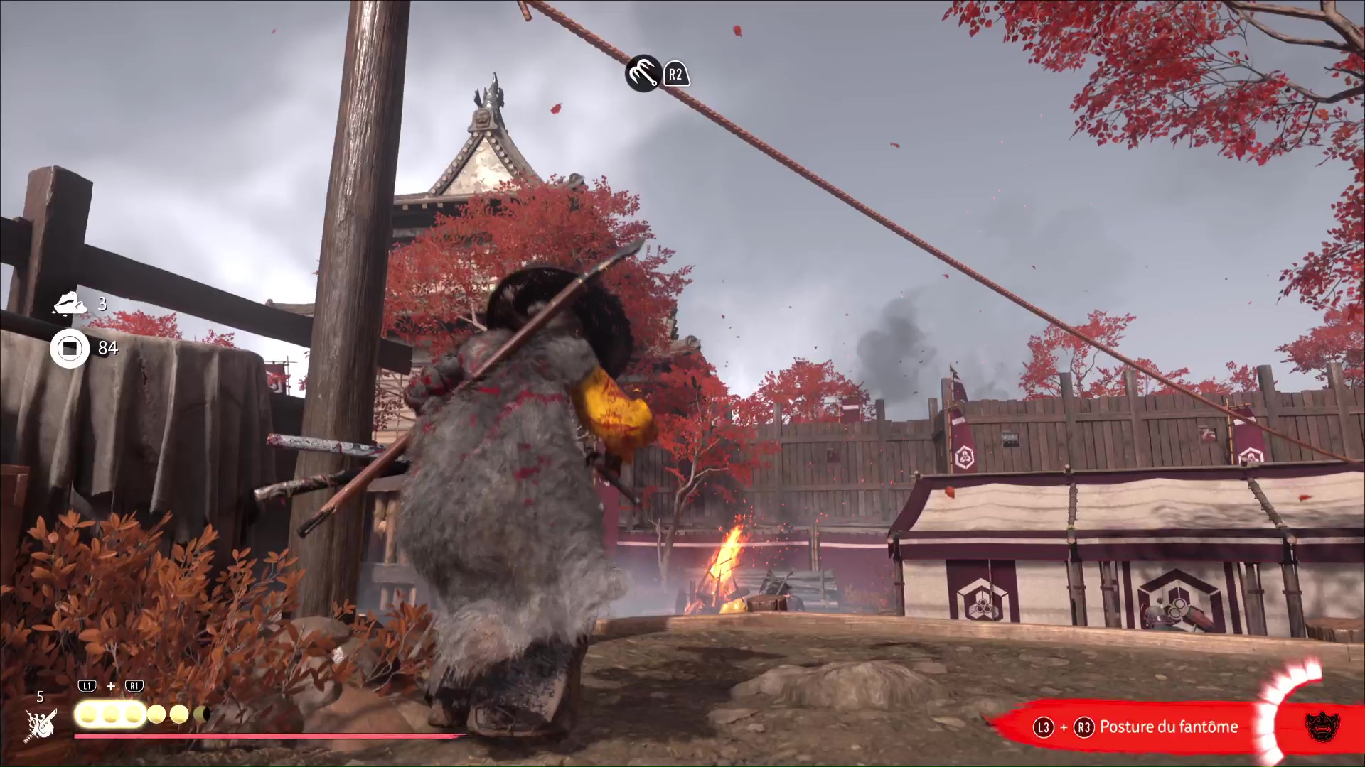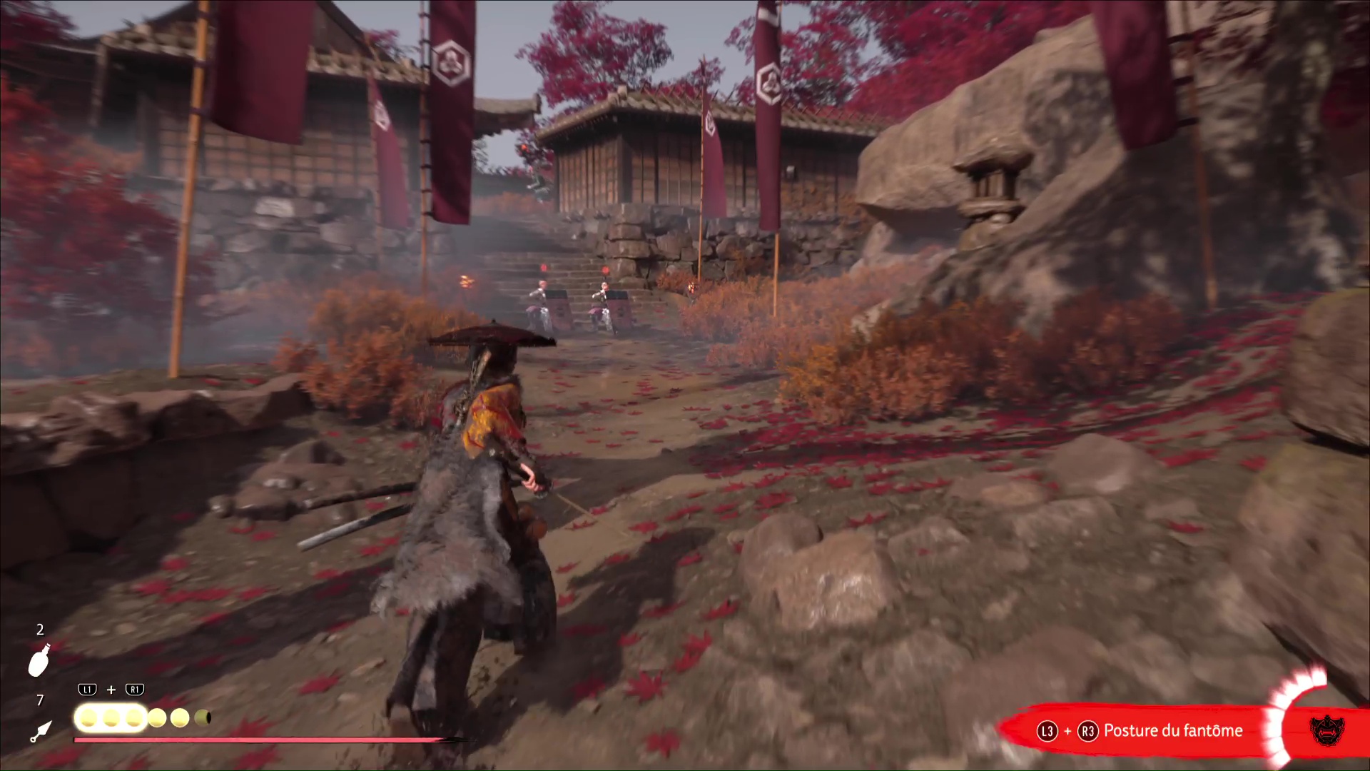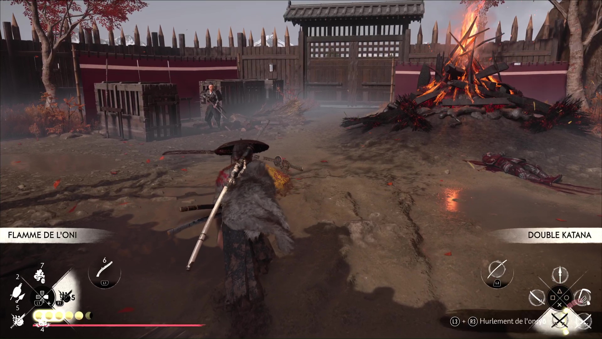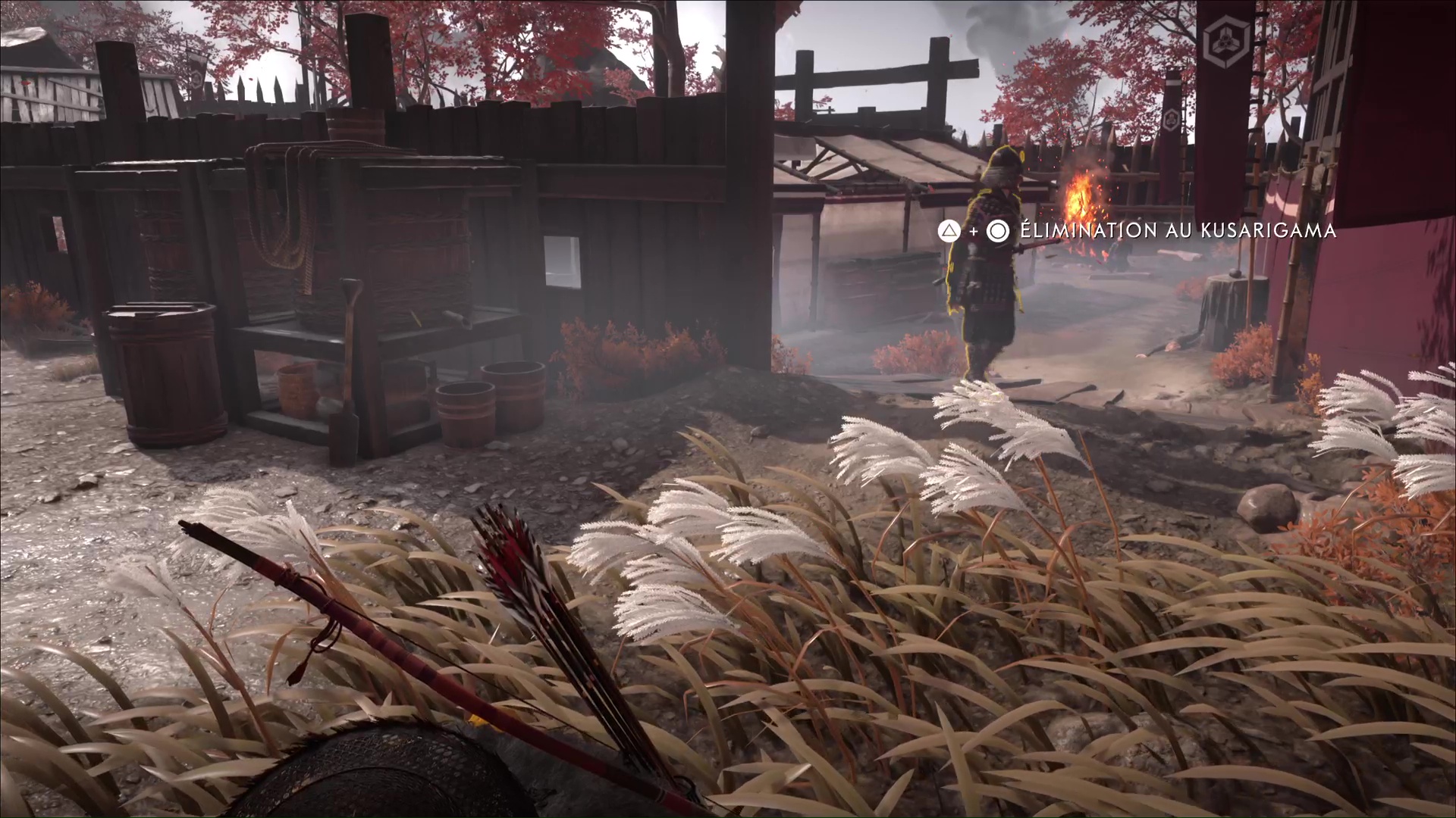 Allez cueillir d’autres ennemis, dont un porteur de kusarigama. Une autre brute au bō-hiya est également dans les parages. Un dernier chemin montant vous sépare de la dernière grande porte à ouvrir du camp.