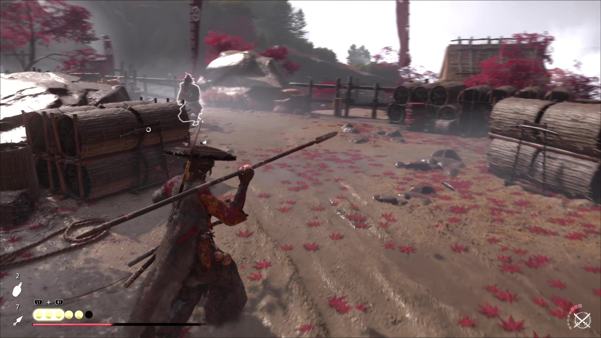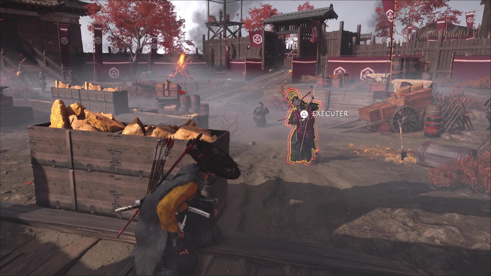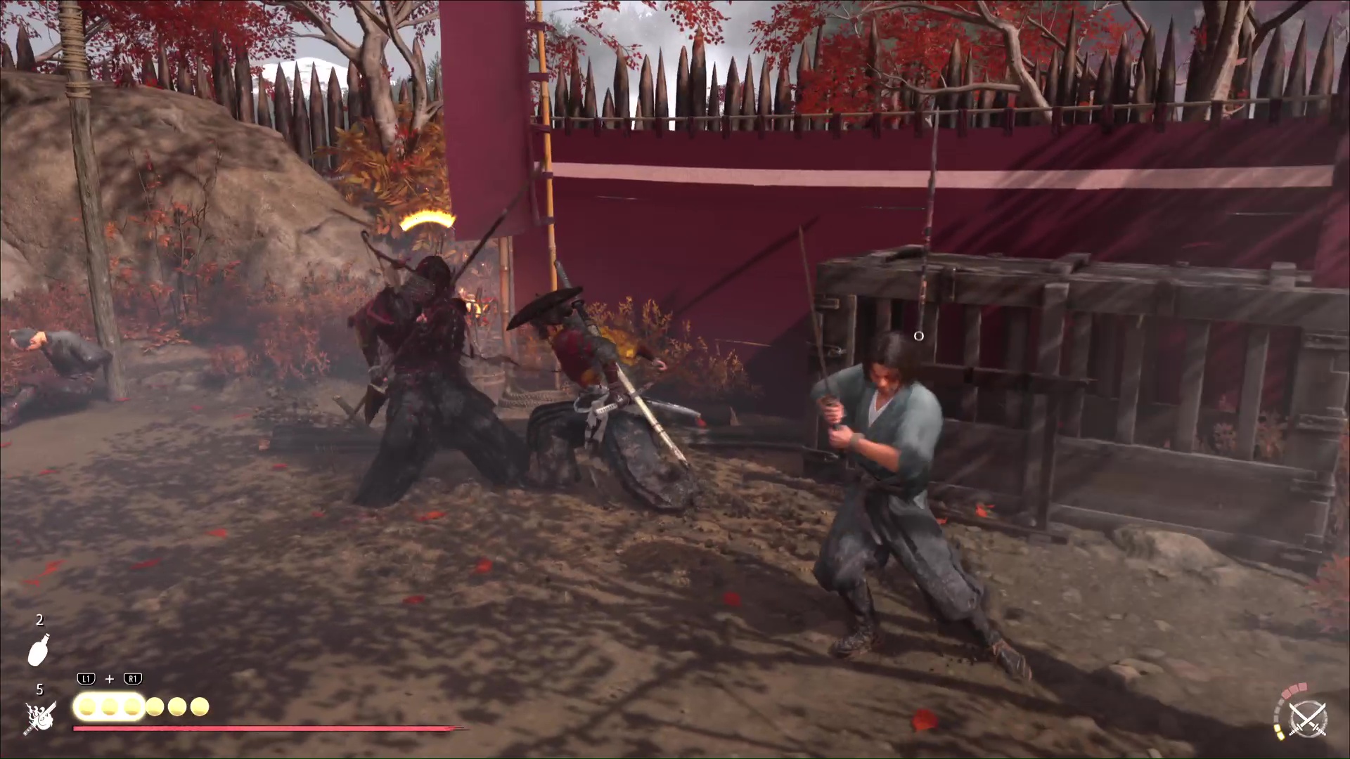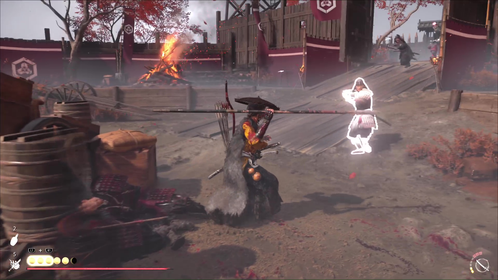 Allez cueillir d’autres ennemis, dont un porteur de kusarigama. Une autre brute au bō-hiya est également dans les parages. Un dernier chemin montant vous sépare de la dernière grande porte à ouvrir du camp.