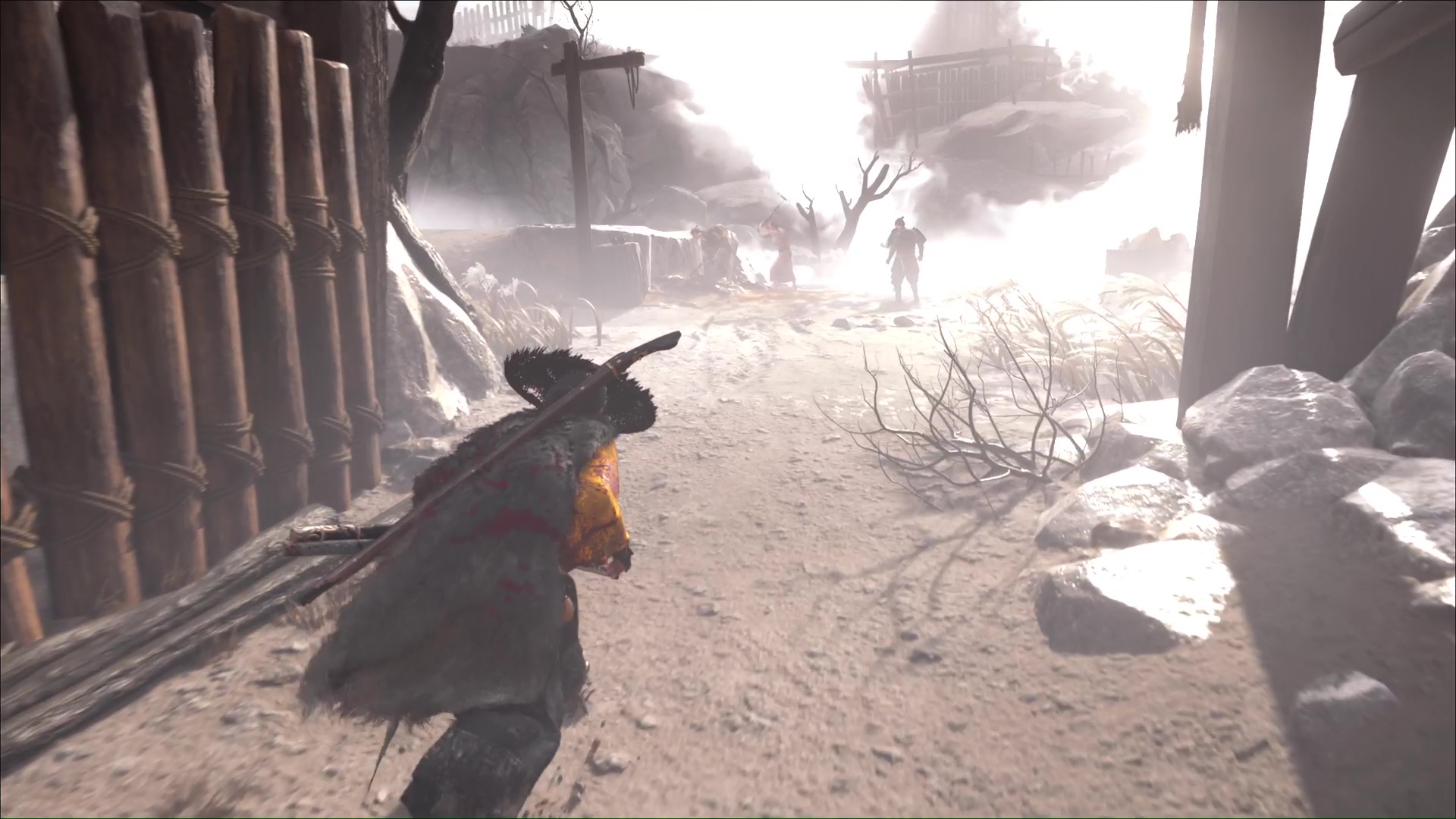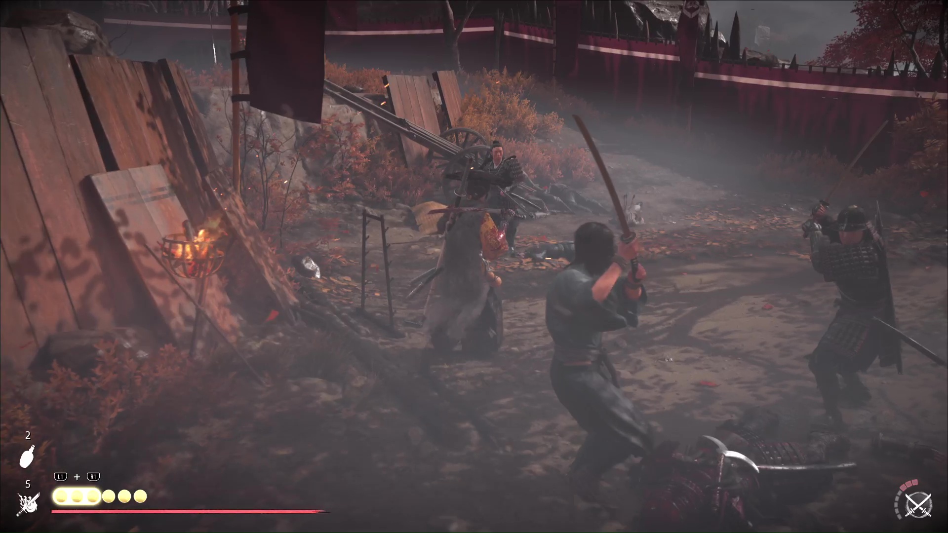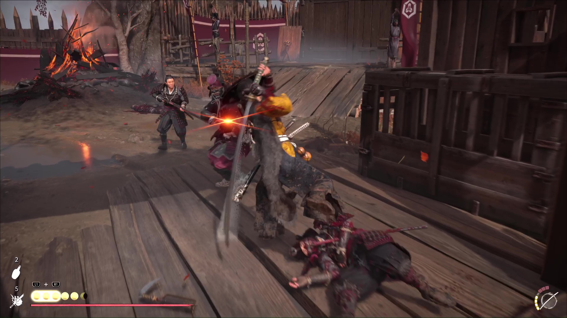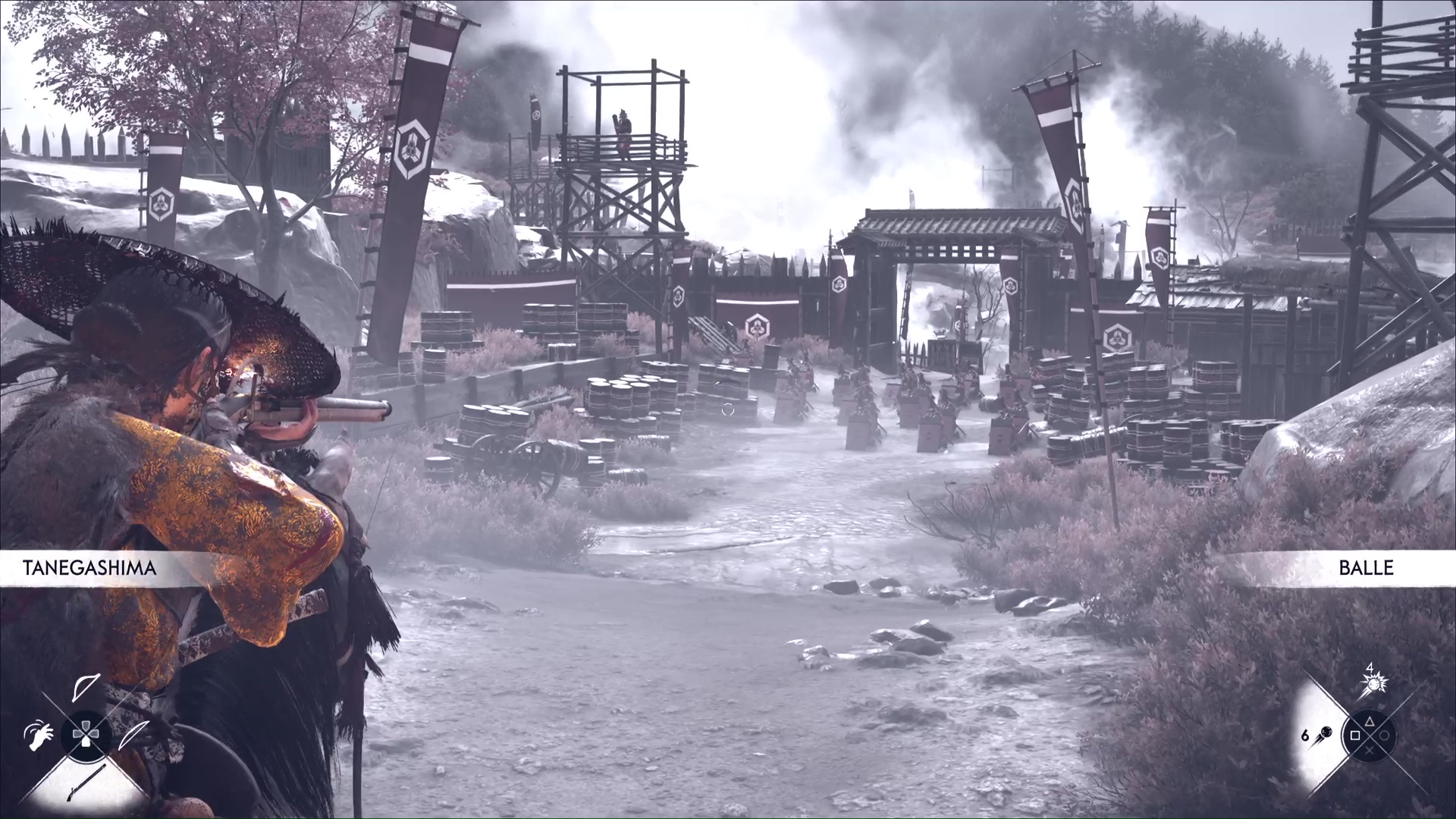 Allez cueillir d’autres ennemis, dont un porteur de kusarigama. Une autre brute au bō-hiya est également dans les parages. Un dernier chemin montant vous sépare de la dernière grande porte à ouvrir du camp.