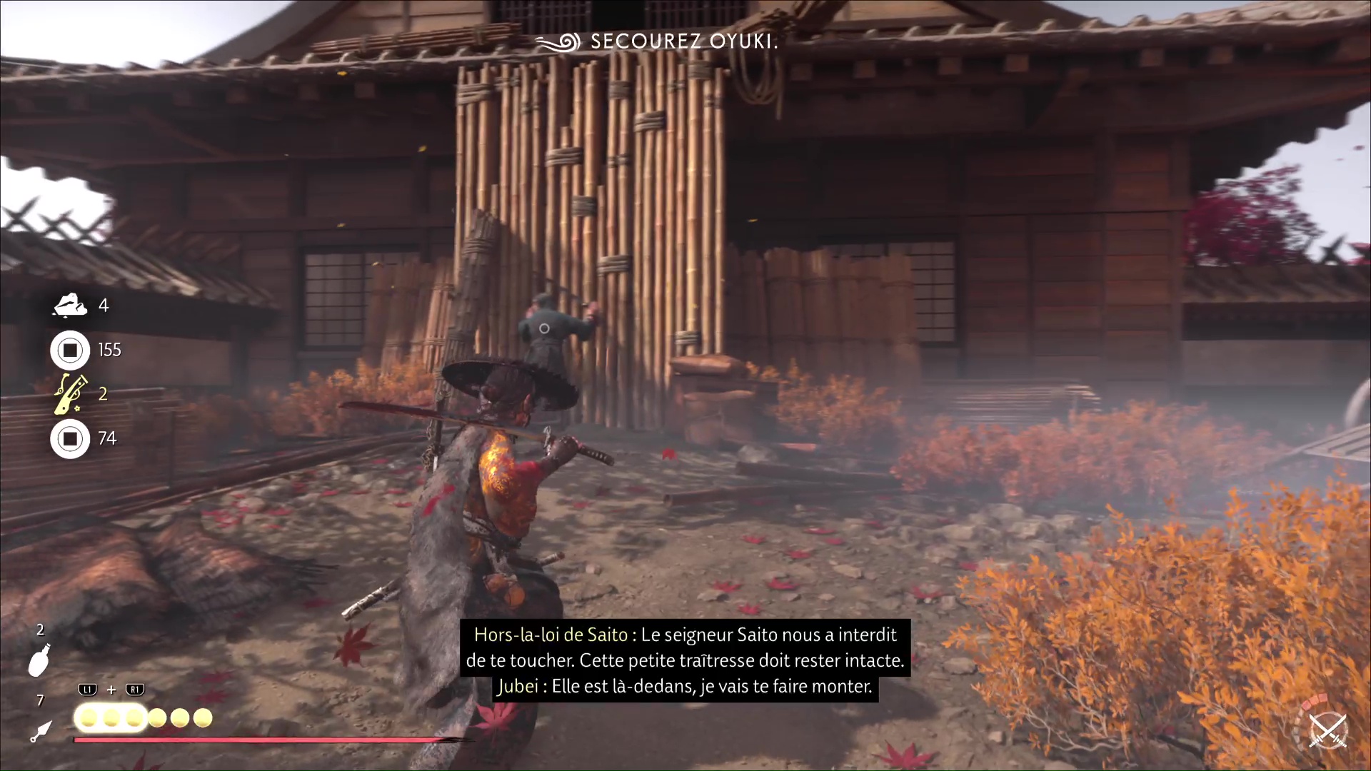 D’autres gardes de Saito vont rappliquer, dont une brute, donc n’hésitez pas à utiliser l’ōdachi. Faites aussi attention au tireur.