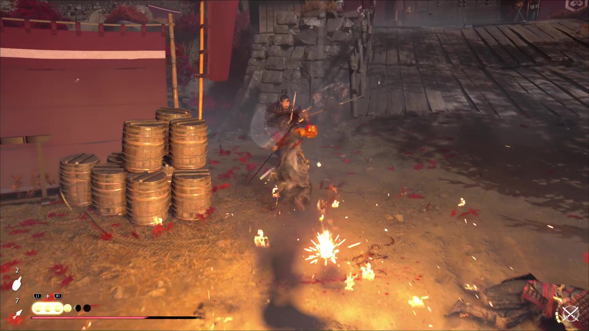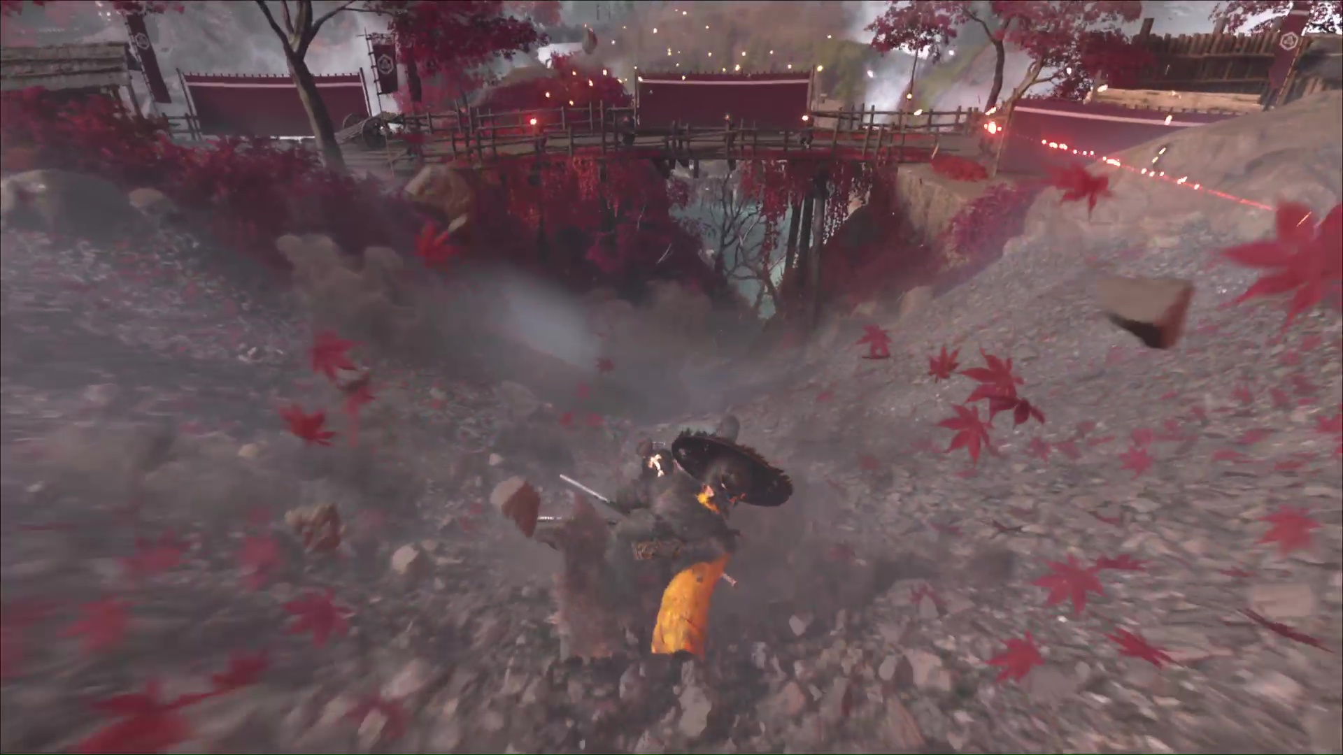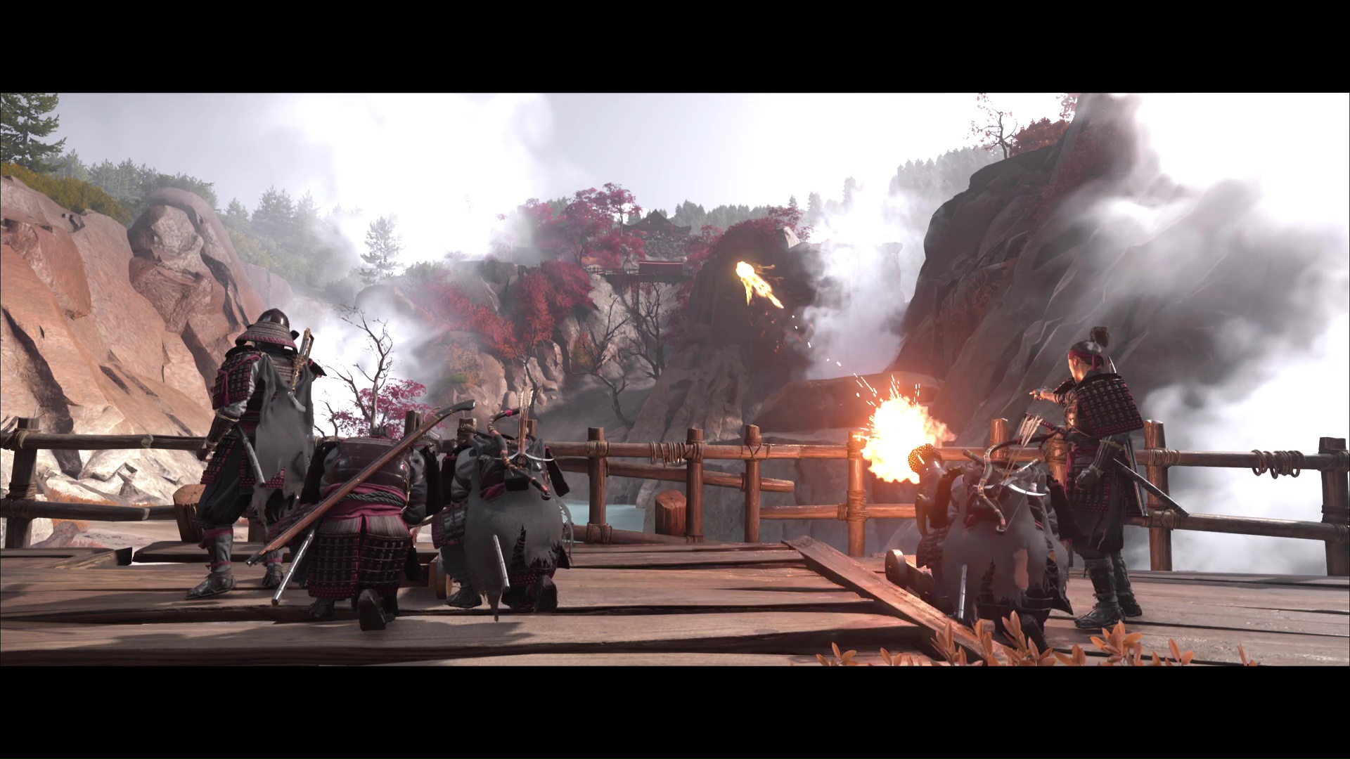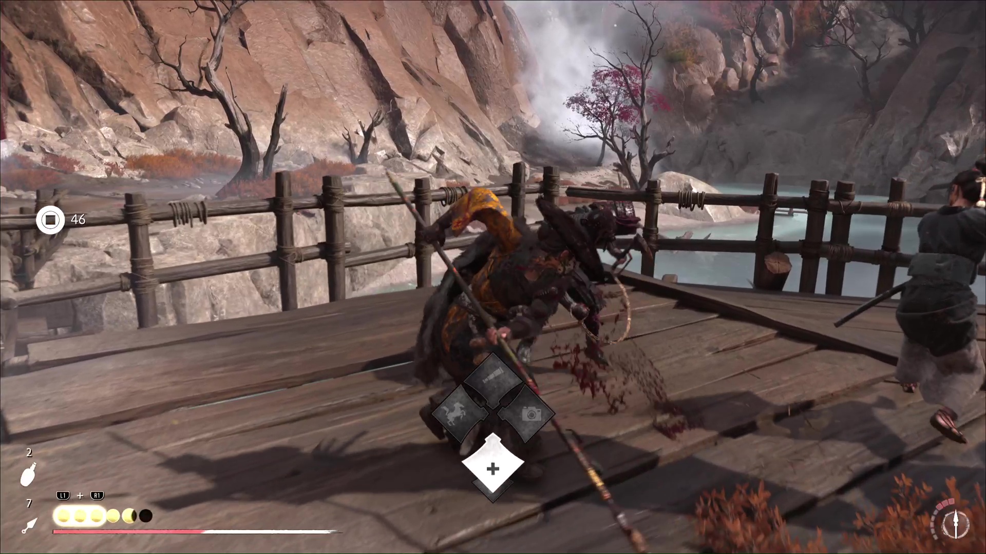 Traversez ensuite le pont et battez les ennemis restants tout en surveillant les tirs de bō-hiya qui pourraient tomber près de votre position.