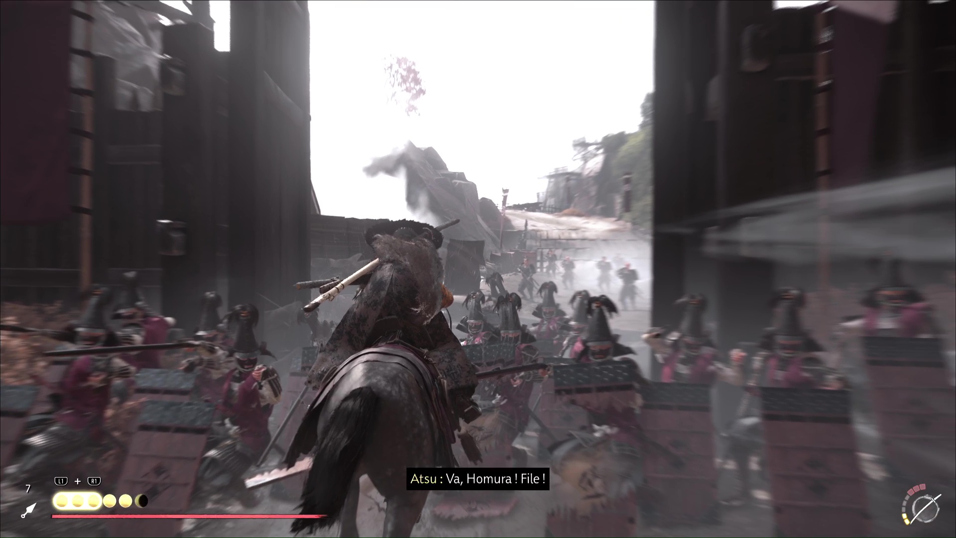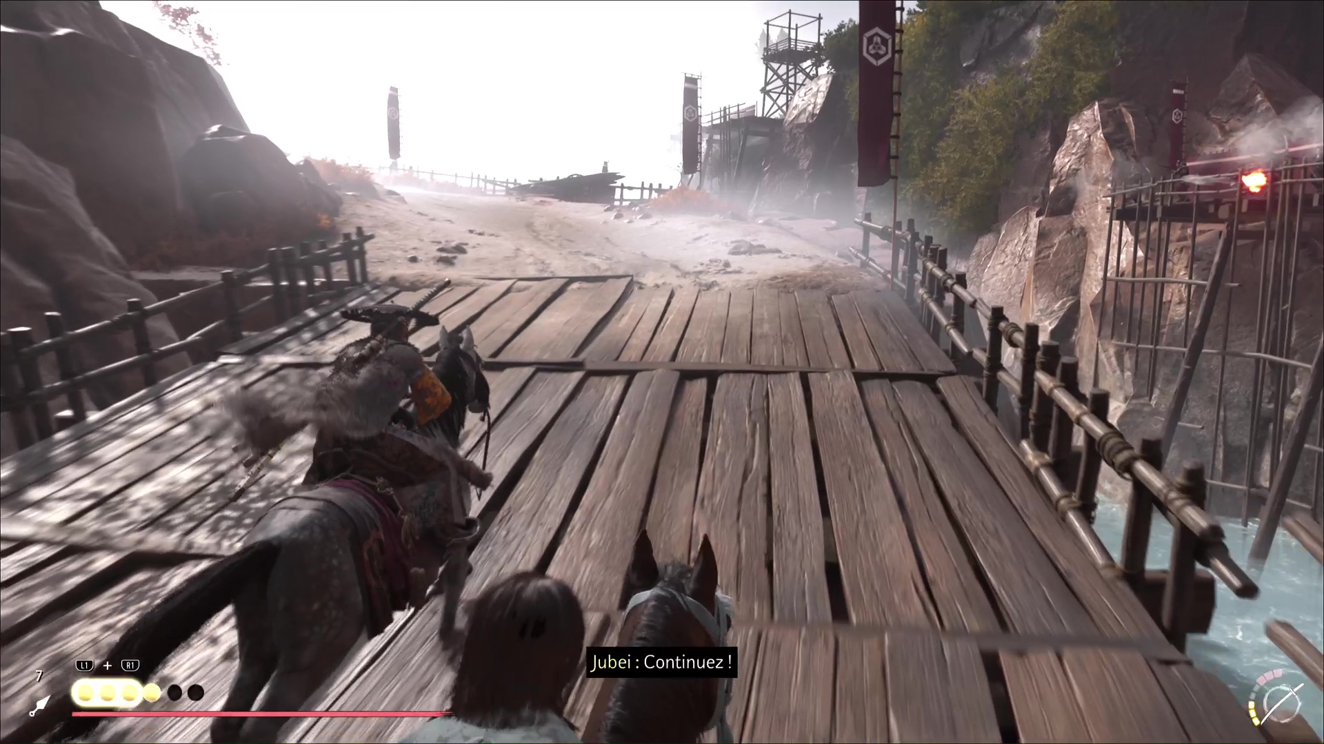 Une fois le combat terminé, Jubei vous invite à prendre un cheval pour s’enfuir. Hélas, les forces de Saito débarquent en nombre pour vous barrer la route. Comme lors de votre évasion du château d’Ishikari, utilisez votre capacité de charge à cheval pour vous frayer un chemin.