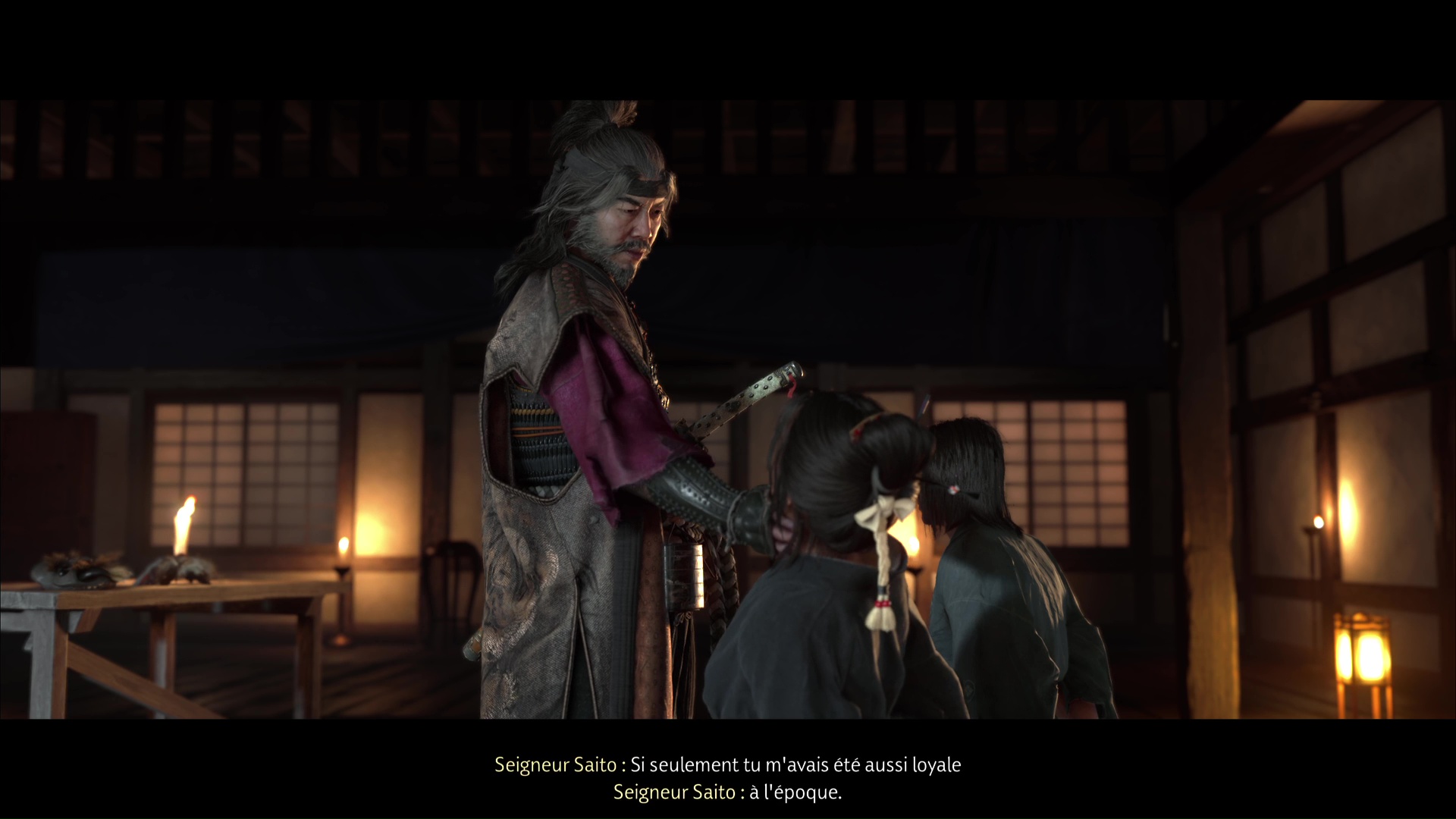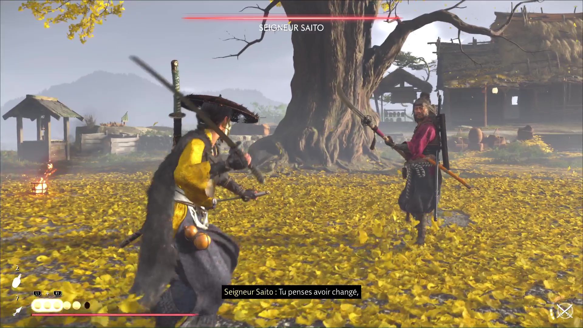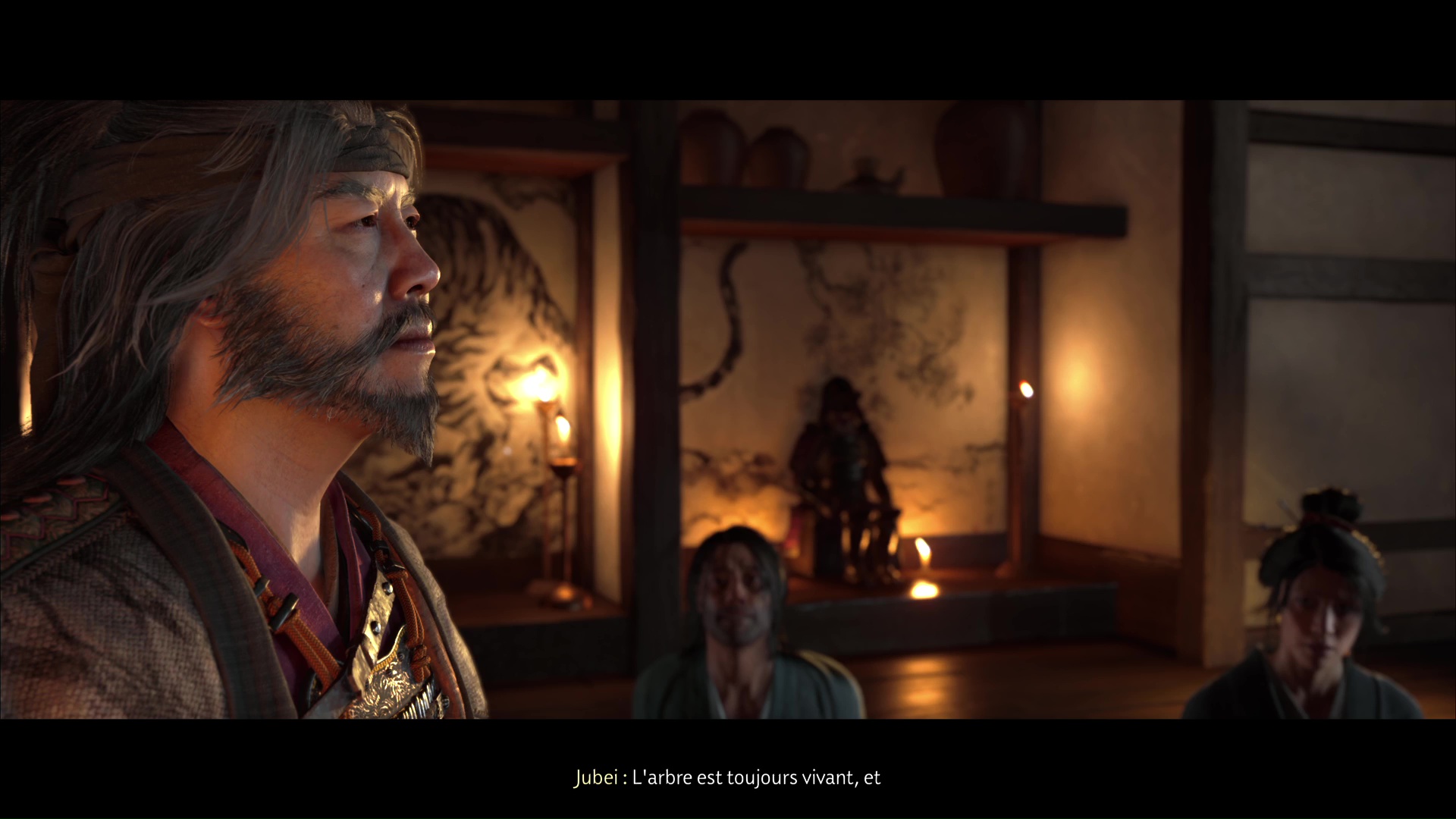 Atsu ramasse le sabre de Saito, et vous n’aurez plus qu’à l’embrocher contre l’arbre, tout comme Atsu avait été laissée pour morte il y a 16 ans. Et alors que le seigneur rend son dernier souffle, c’est hélas aussi le cas de Jubei.