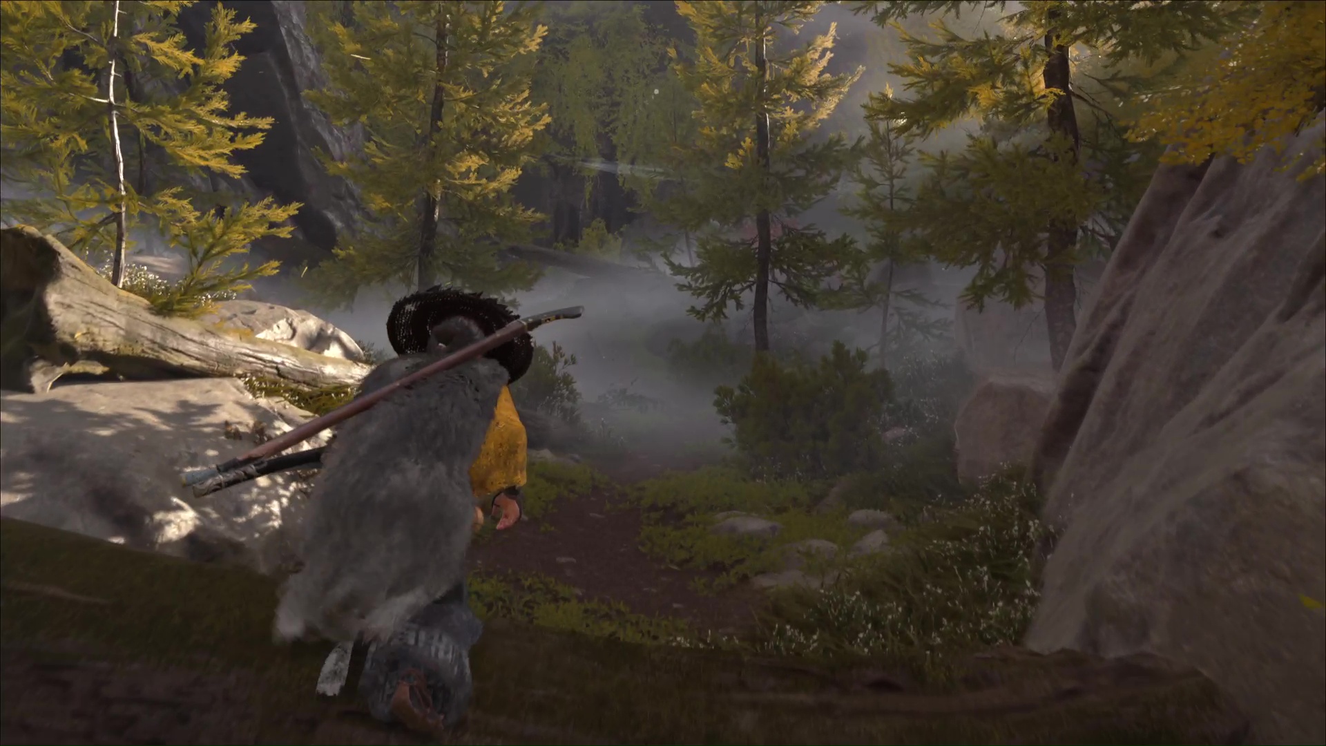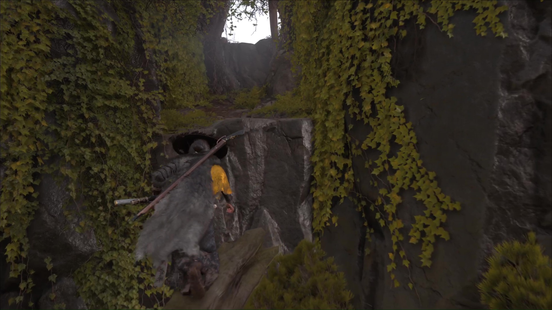 Vous revenez ensuite du côté d’Atsu en pleine session d’escalade. Continuez pour enjamber un gros tronc puis, juste après, montez sur un autre arbre couché afin d’atteindre une corniche. Grimpez une deuxième fois et vous aurez un point de vue sur la forteresse.