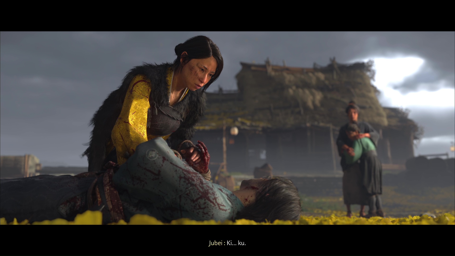 À présent réunis tous les trois, il reste une dernière chose à régler : tuer Saito. Galopez jusqu’à la maison d’enfance et entrez dans la cour. Saito vous attend comme prévu en tenant près de lui Kiku.