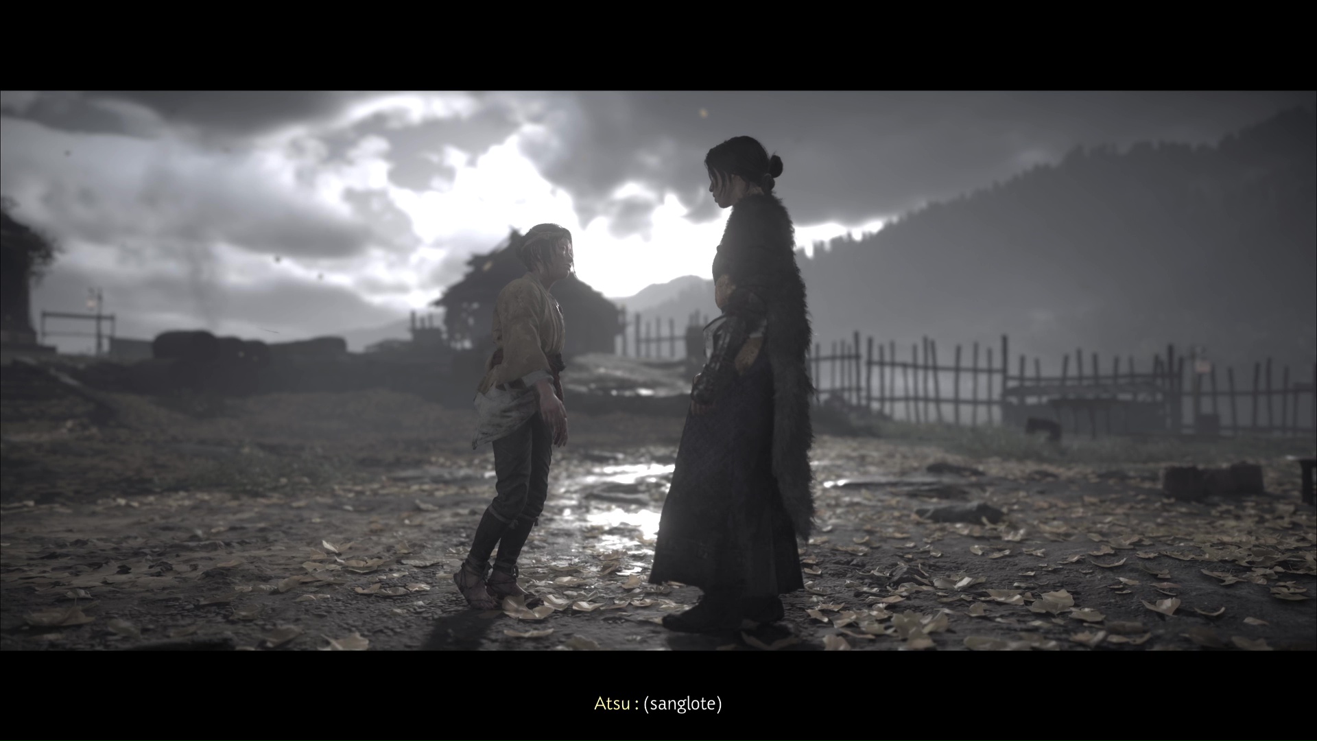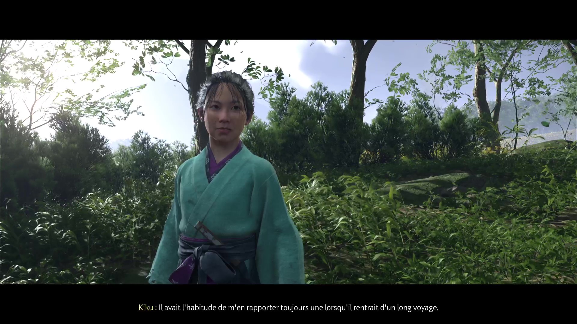 Avant de rentrer, Kiku souhaite montrer une dernière chose à Atsu. Elle a réussi à faire pousser dans un coin des chrysanthèmes, les fleurs préférées de Jubei. La petite s’attriste à l’idée de ne plus jamais revoir son père, mais vous pouvez la consoler avec la phrase de votre choix.