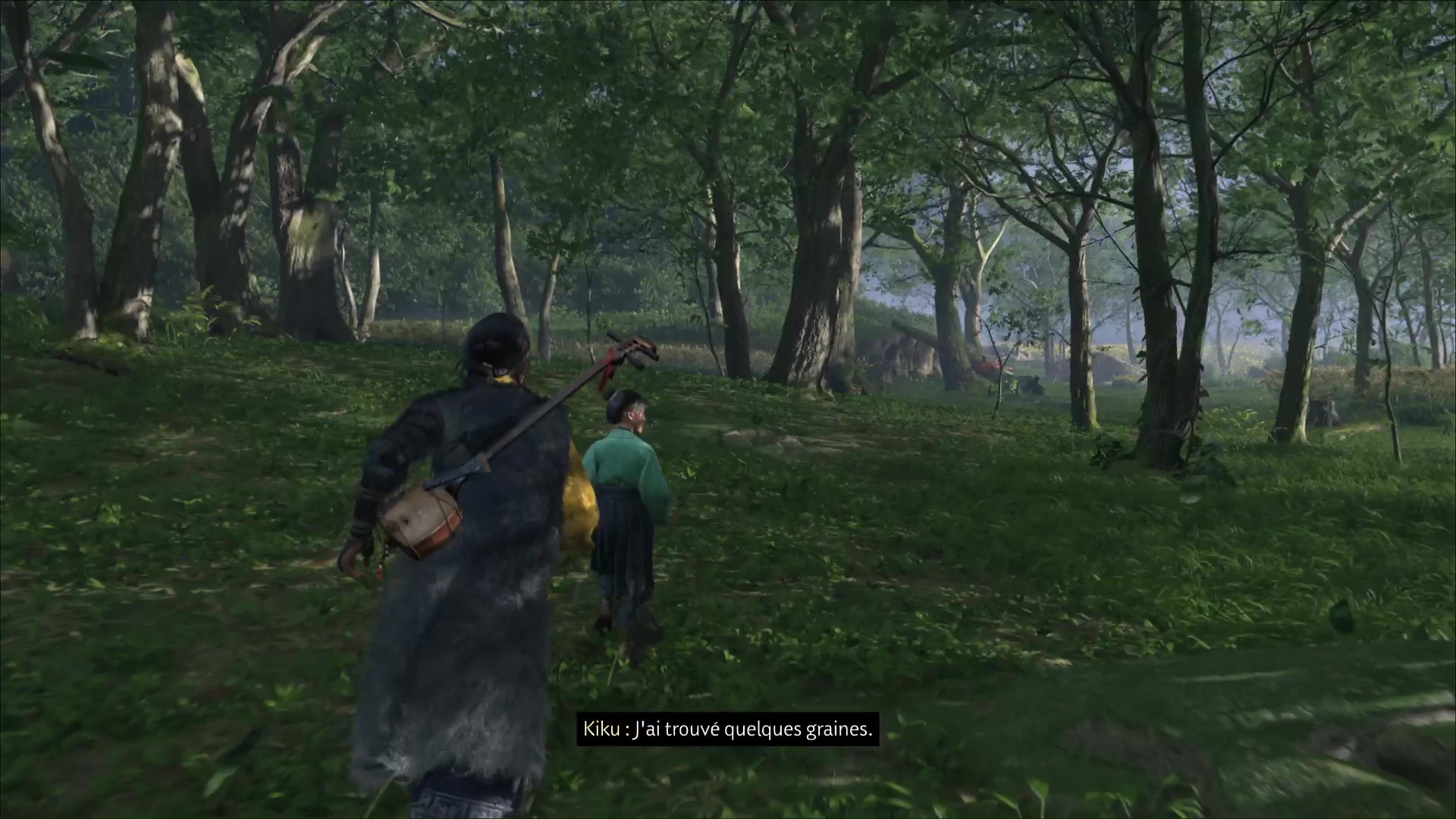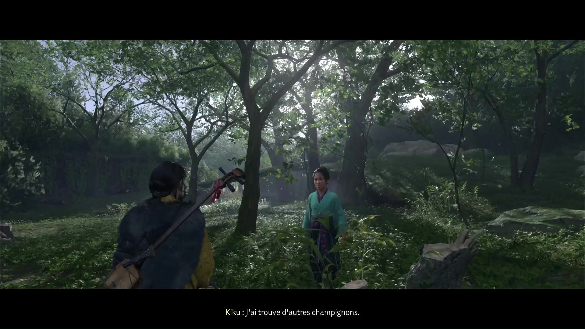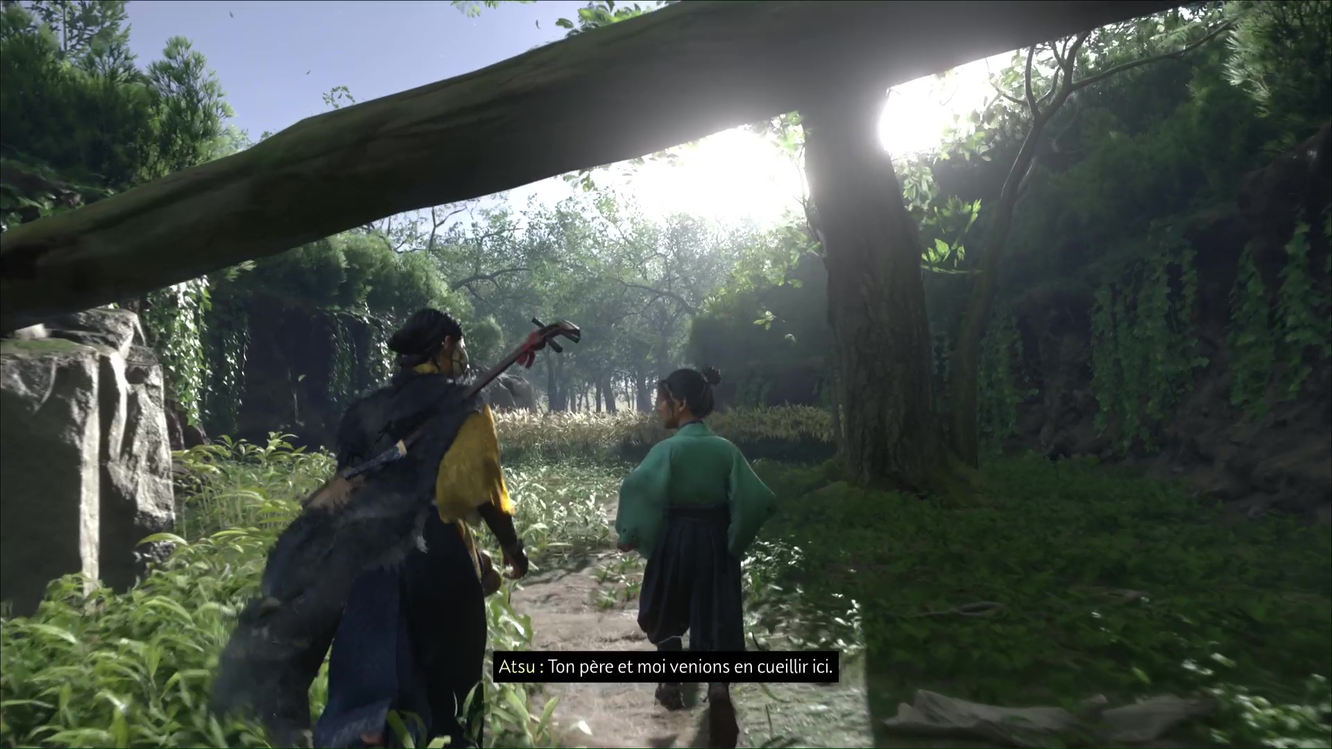 Nous effectuons ensuite un bond de six mois dans le futur, en retrouvant Atsu dans la forêt près de chez elle, en compagnie de la version jeune de son frère, qui est en réalité Kiku. En pleine cueillette de champignons, suivez-la.