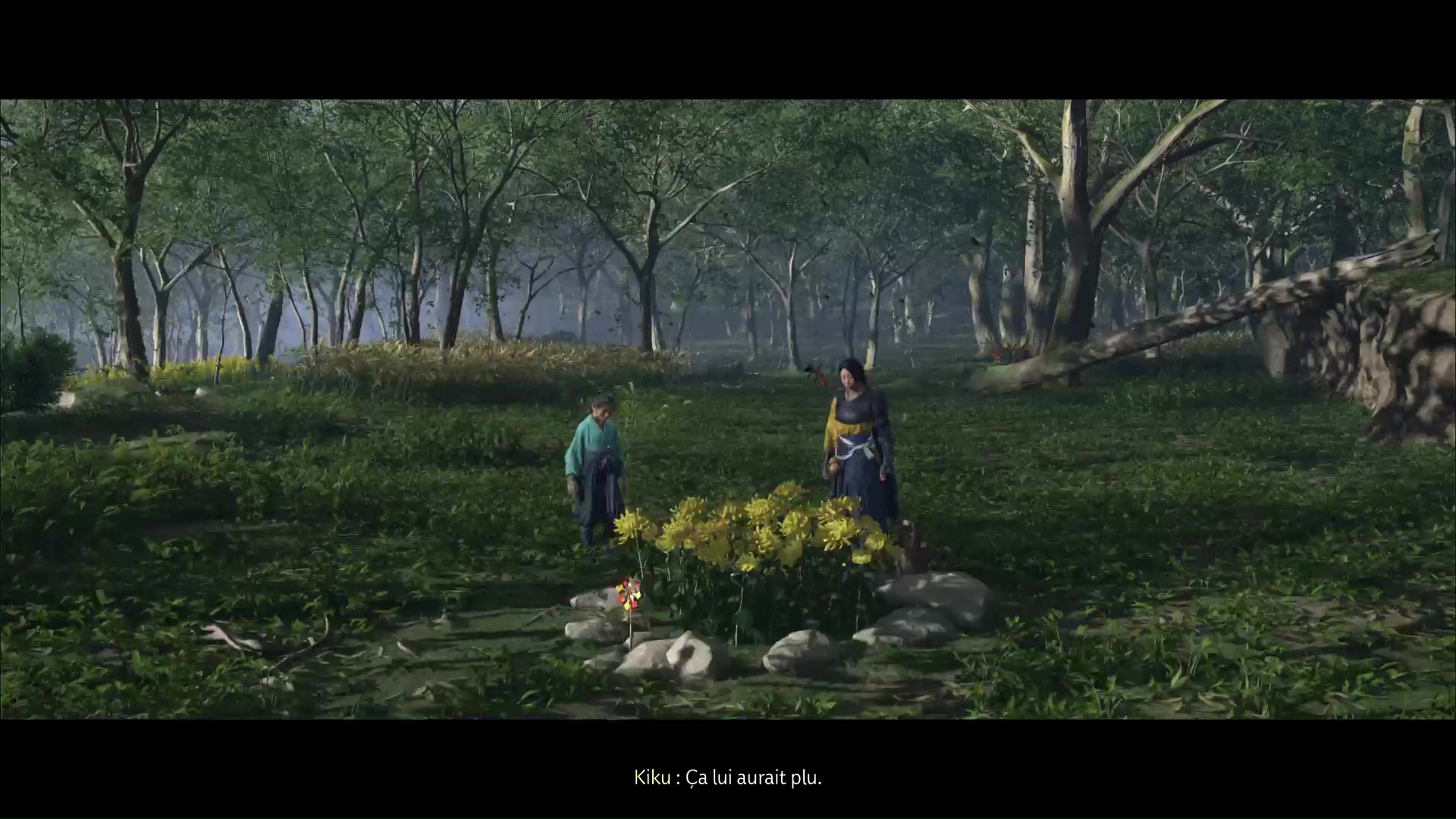 Atsu suggère ensuite d’aller porter une de ces fleurs à Jubei. Désormais, retournez à la maison et laissez notre héroïne déposer la fleur sur la tombe.