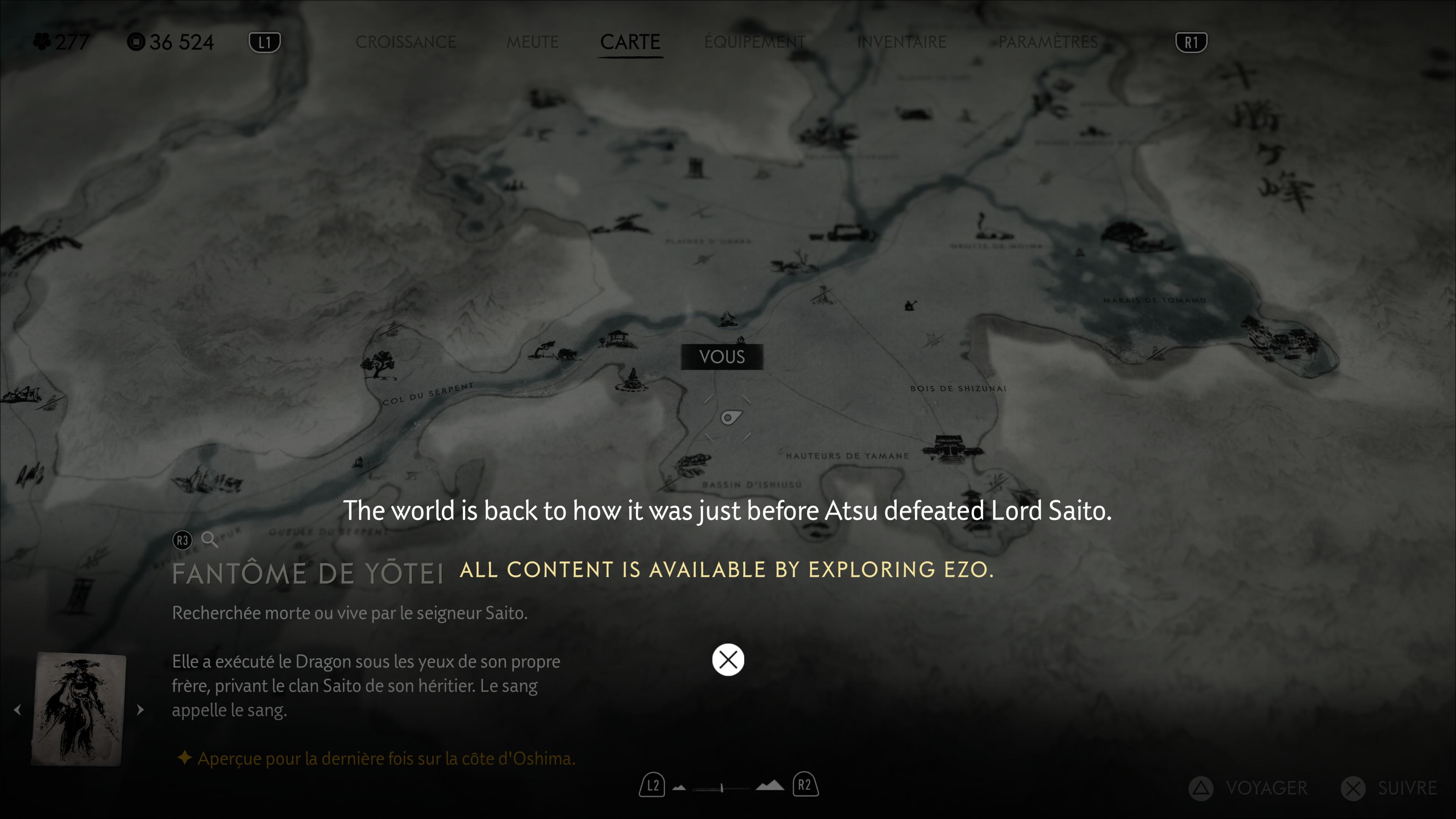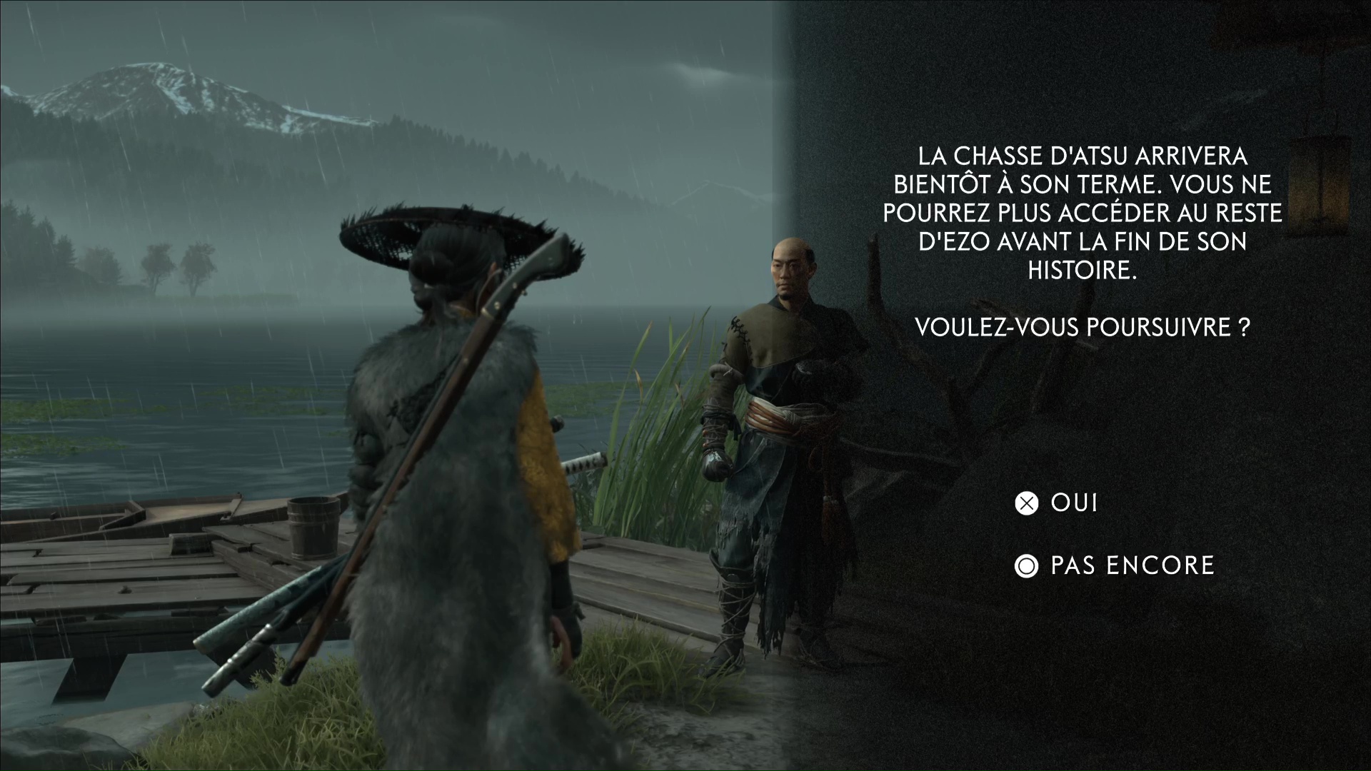 Félicitations, l’histoire principale de Ghost of Yōtei est désormais terminée et vous obtenez le trophée 🏆 Repos de l’onryō. Vous revenez ensuite automatiquement six mois plus tôt pour reprendre vos activités au sein du monde ouvert pour terminer et compléter le contenu qu’il vous manque.