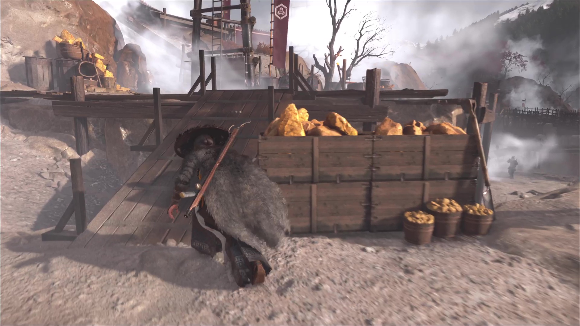 Regardez sur la droite, en contrebas, pour voir deux gardes en train de regarder un prisonnier creuser. Sautez sur la poutre et commettez un assassinat aérien sur les deux gardes. Passez ensuite sur la gauche et traversez le cours d’eau pour rejoindre la zone suivante dont l’entrée est sur la droite.