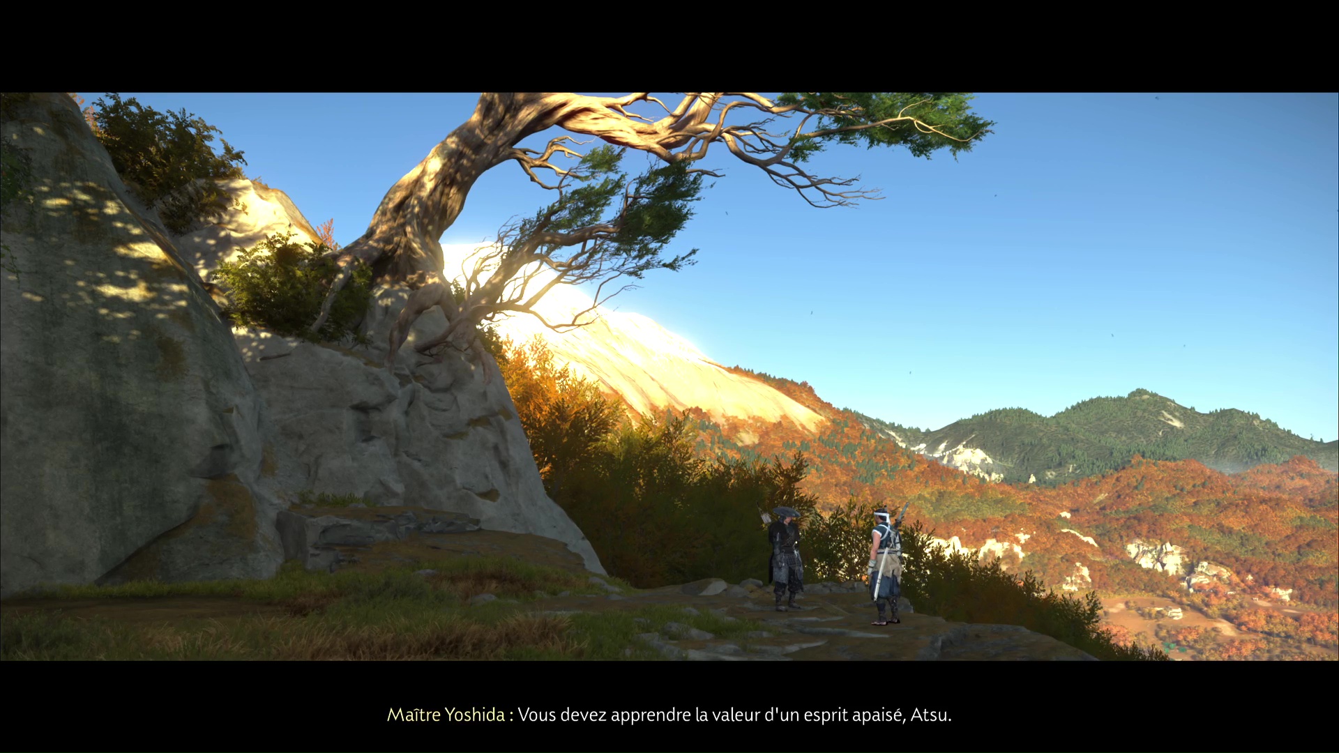 Parlez à Yoshida et confirmez-lui que vous êtes prêt. Le sensei vous emmènera alors au bord d’une falaise, et vous demandera de vous entraîner à vous apaiser. Avec les Six de Yōtei continuellement en tête, Yoshida estime qu’Atsu ne doit pas se laisser avoir par ses émotions.
