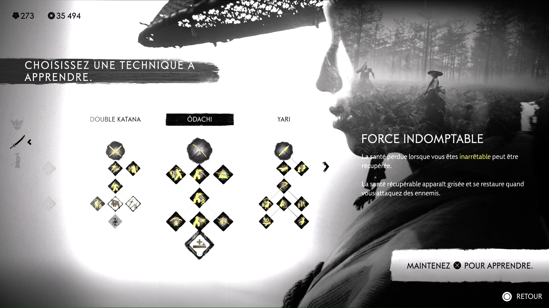 Une fois que vous maîtrisez toutes les compétences de l’ōdachi, il est temps de retourner au Dojo de maître Yoshida, aux Monts Tokachi, pour recevoir votre dernière leçon.