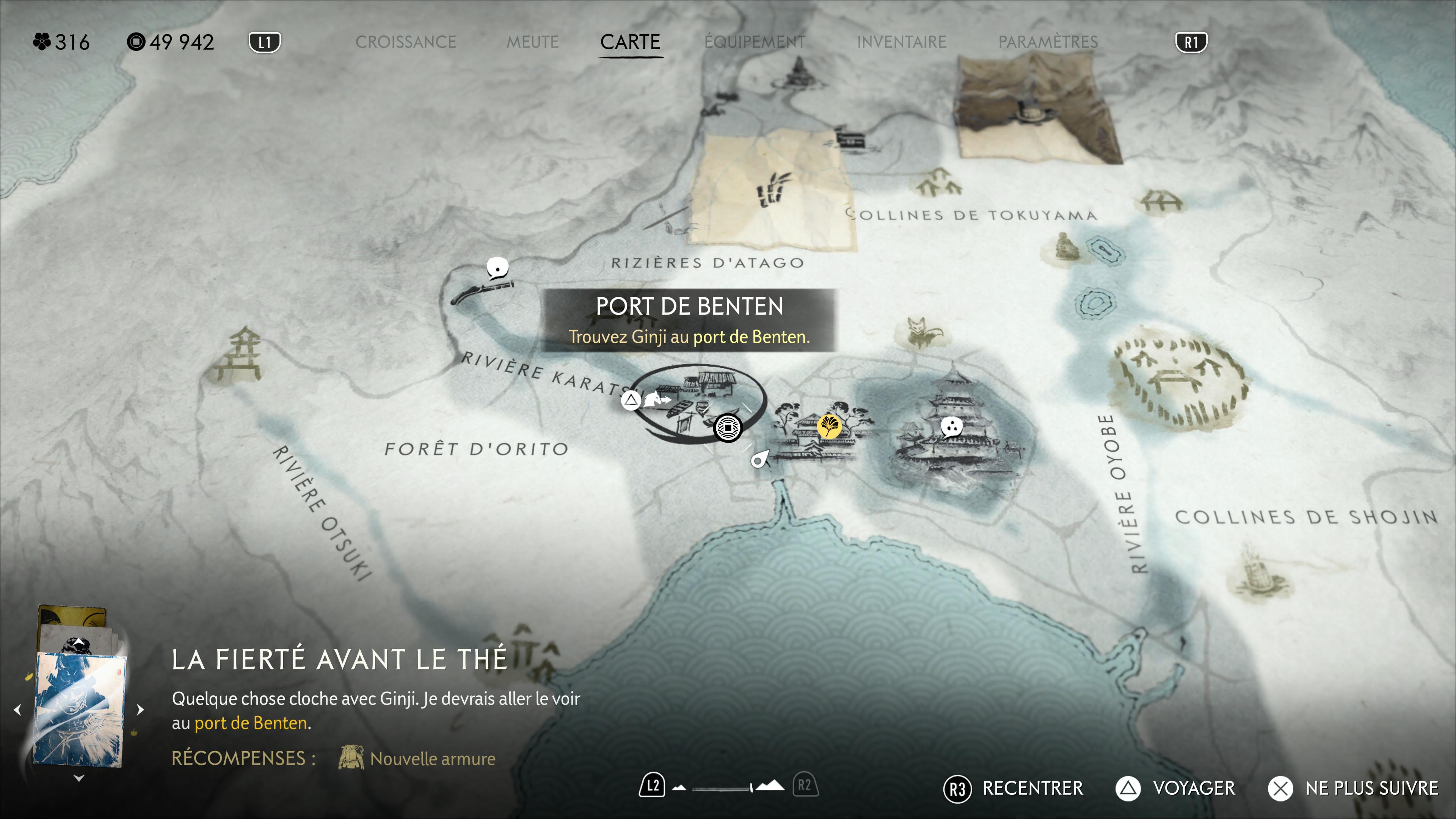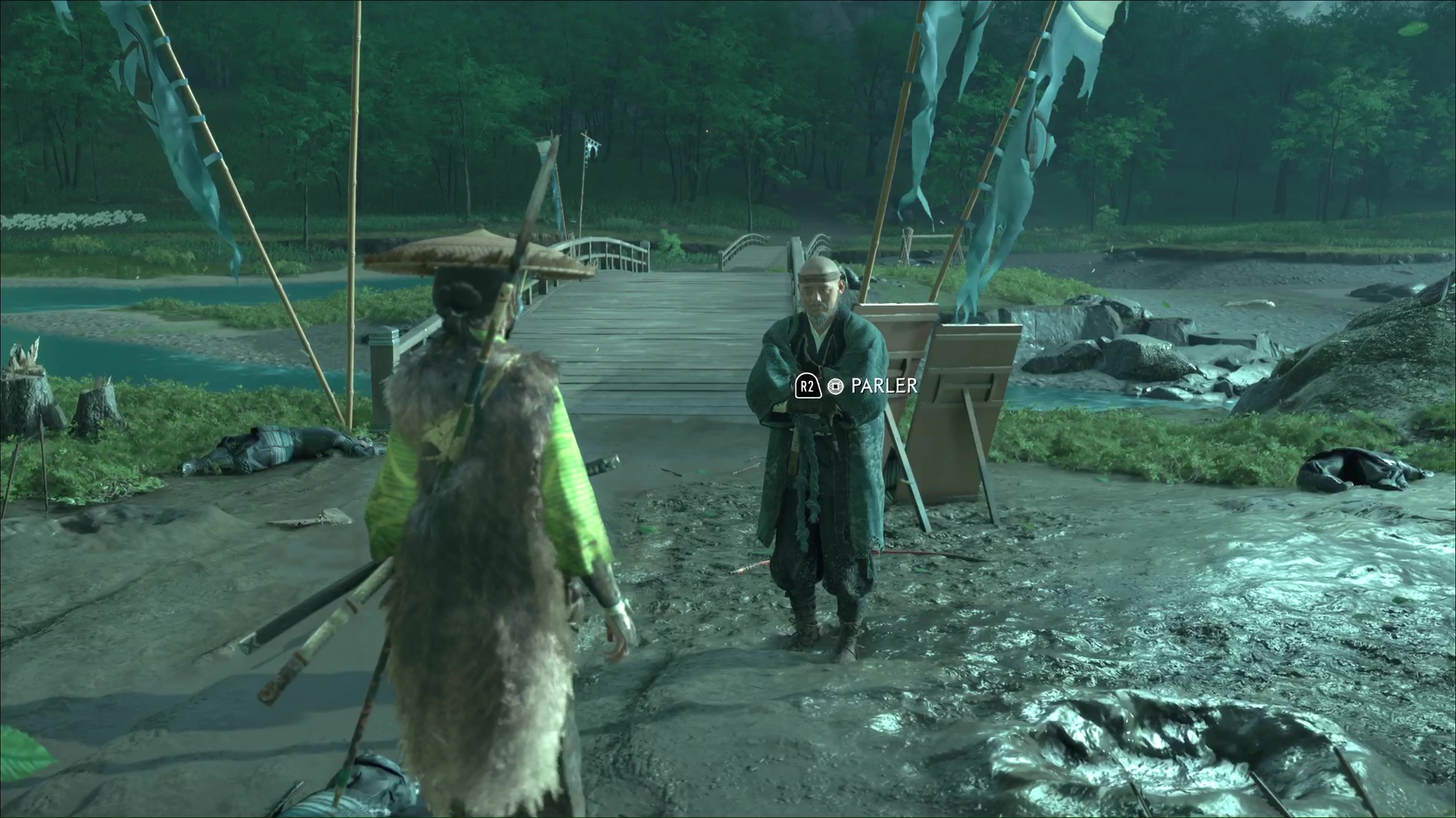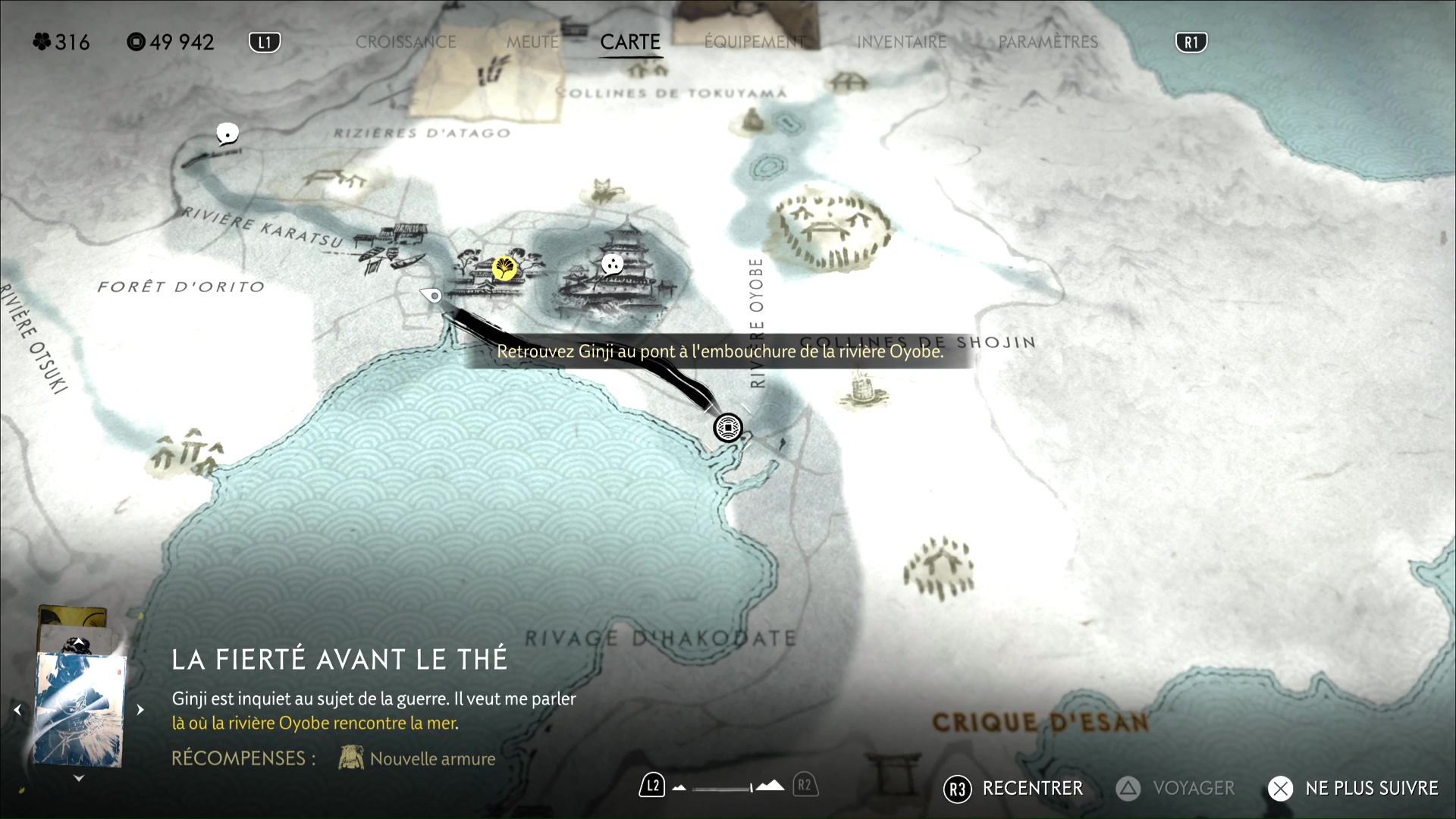 Toutefois, il vous en dira plus ailleurs, à un emplacement qu’il vous indique sur votre carte. Le rendez-vous est donné au sud-est, là où la Rivière Oyobe se jette dans la mer. Ginji vous attend devant un pont.