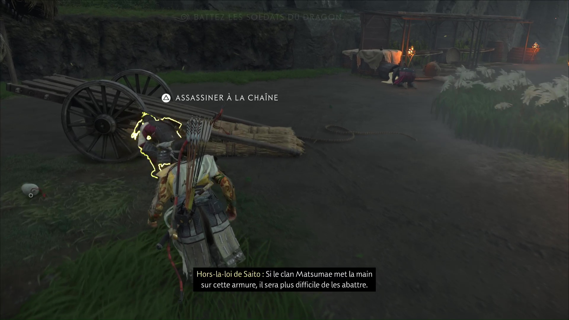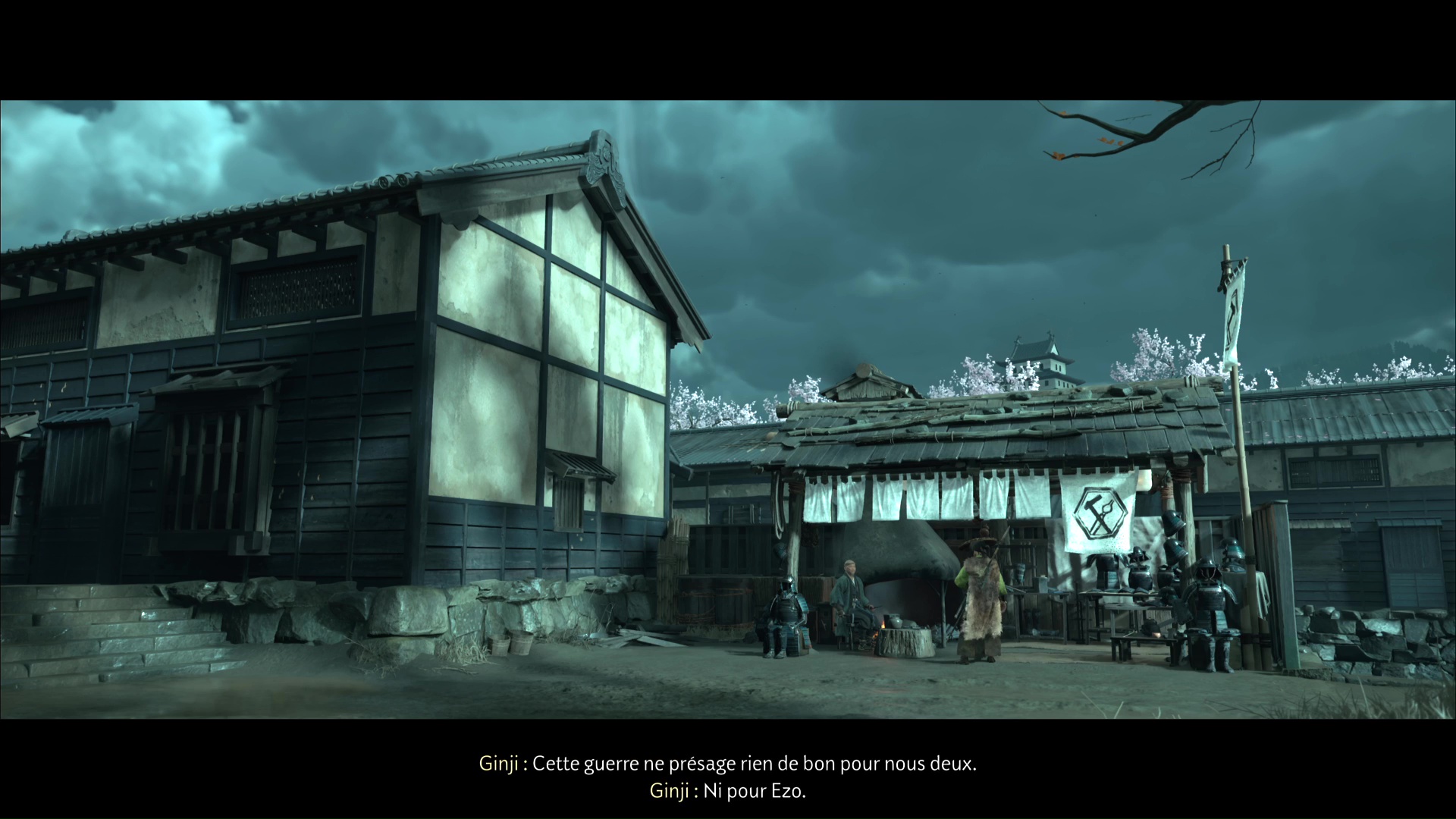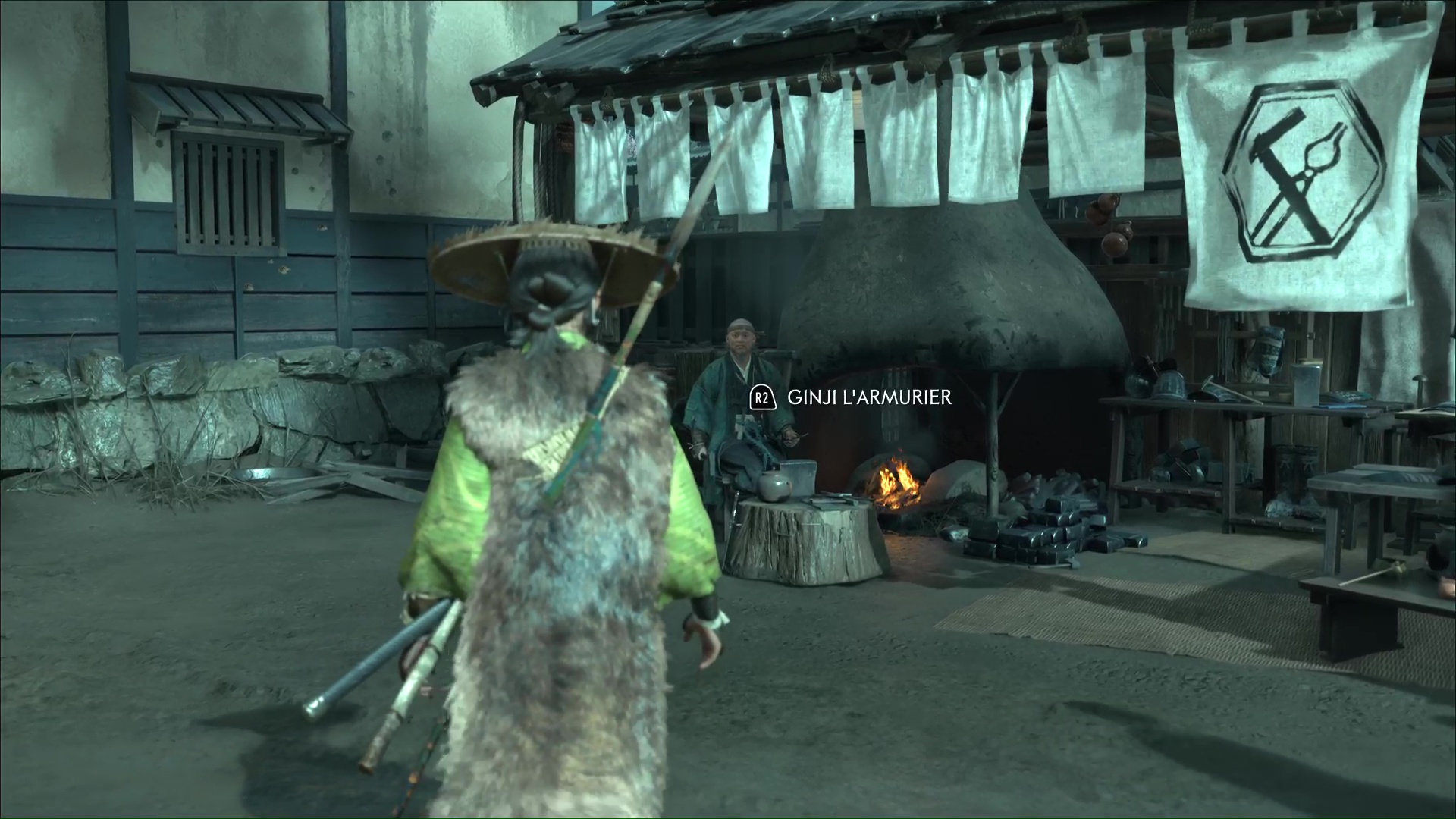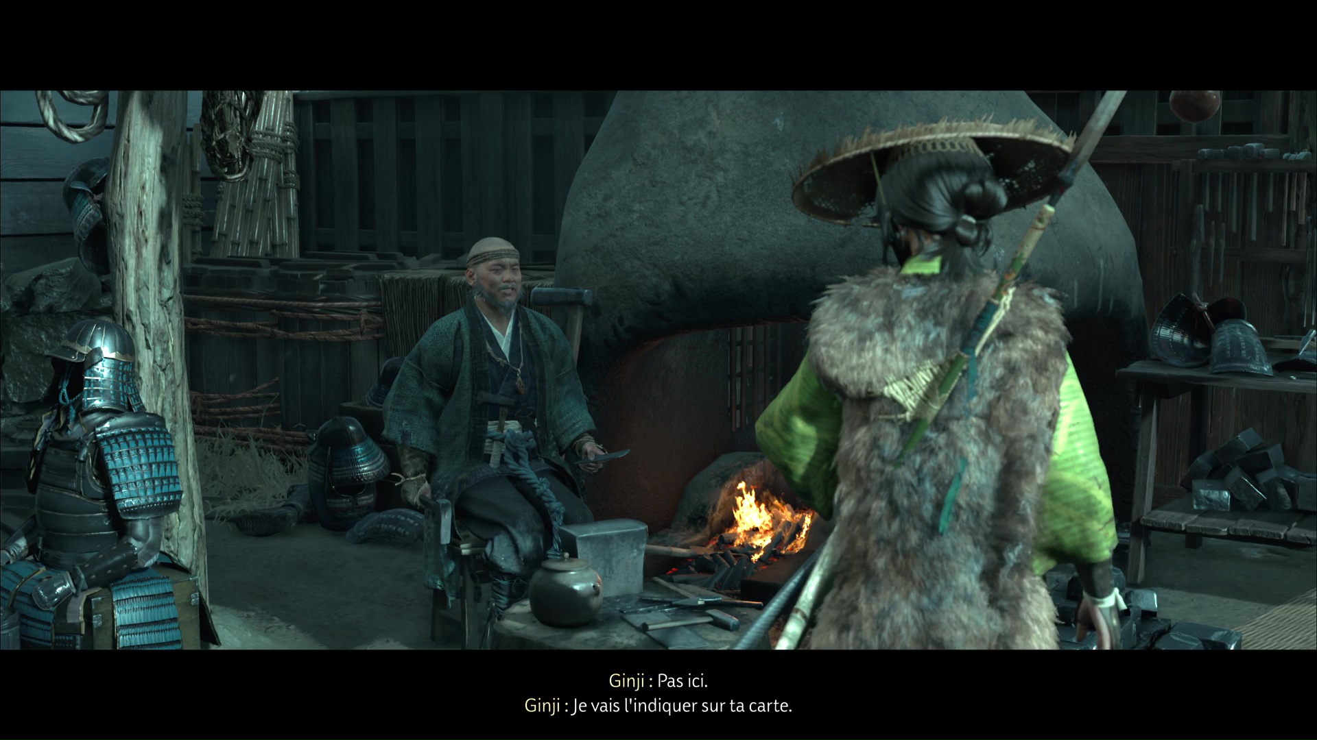Ginji l’armurier est depuis le début de l’aventure un allié précieux pour Atsu. Capable d’améliorer ses armures afin de booster leurs capacités, les visites à son échoppe sont toujours agréables. Mais pour ce récit de sensei de Ghost of Yōtei, c’est carrément une armure inédite qu’il souhaite proposer à Atsu. Il travaille en effet sur une pièce toute particulière capable de résister aux projectiles. Hélas, un tel ouvrage a attisé la curiosité et repose au beau milieu d’une zone convoitée par les hommes de Saito. Notre héroïne va donc les chasser et récupérer l’armure.