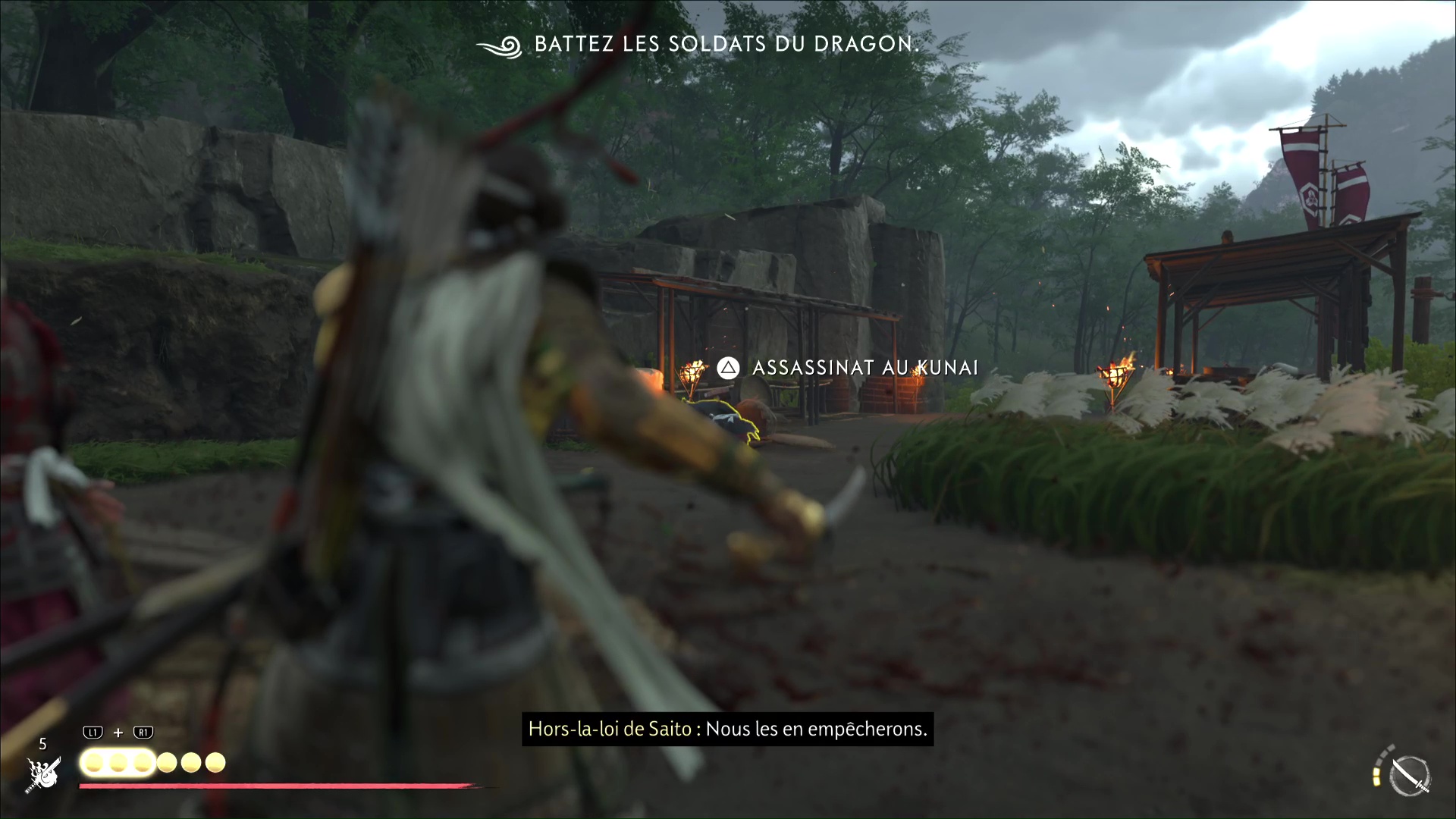 De cette manière, prenez à revers les tireurs afin de pouvoir les tuer au corps à corps. Faites ensuite attention aux renforts, dont une brute et surtout un porteur d’éventail, que vous devez absolument prioriser. Battez-vous jusqu’à éliminer le dernier adversaire.