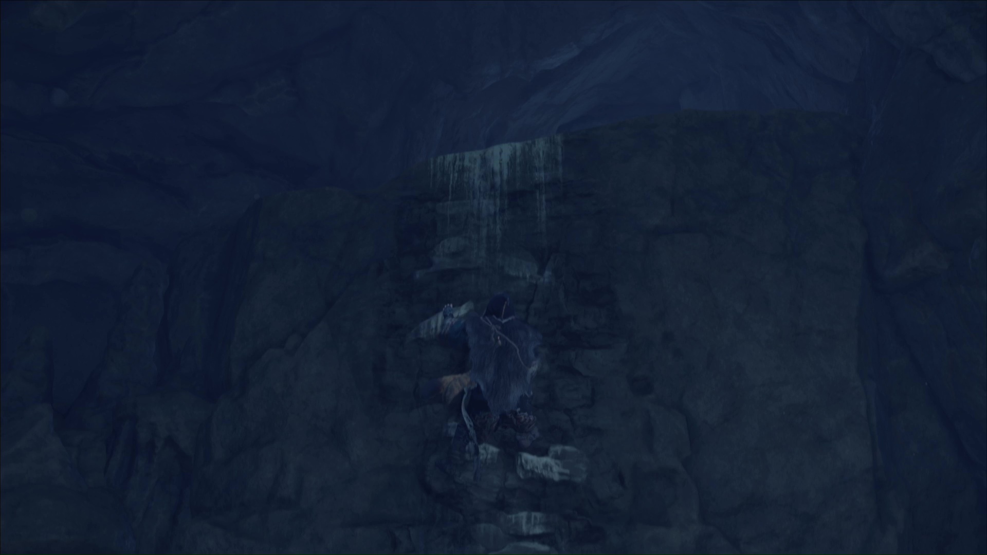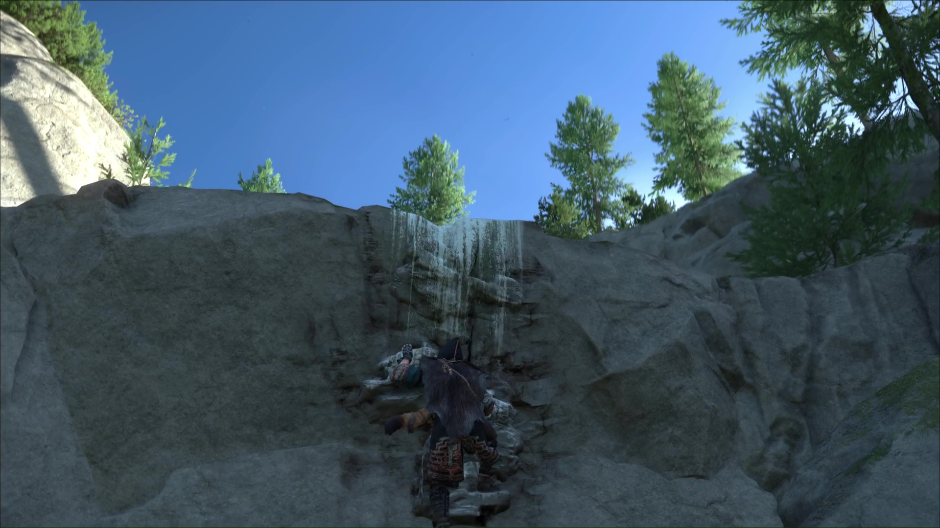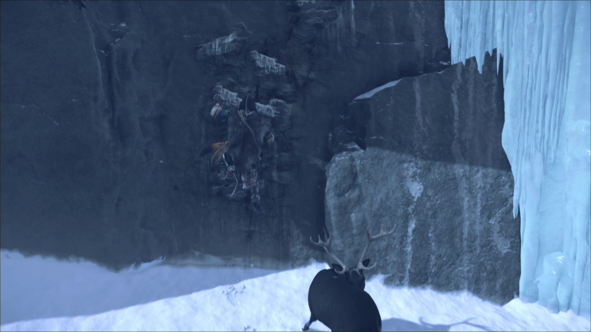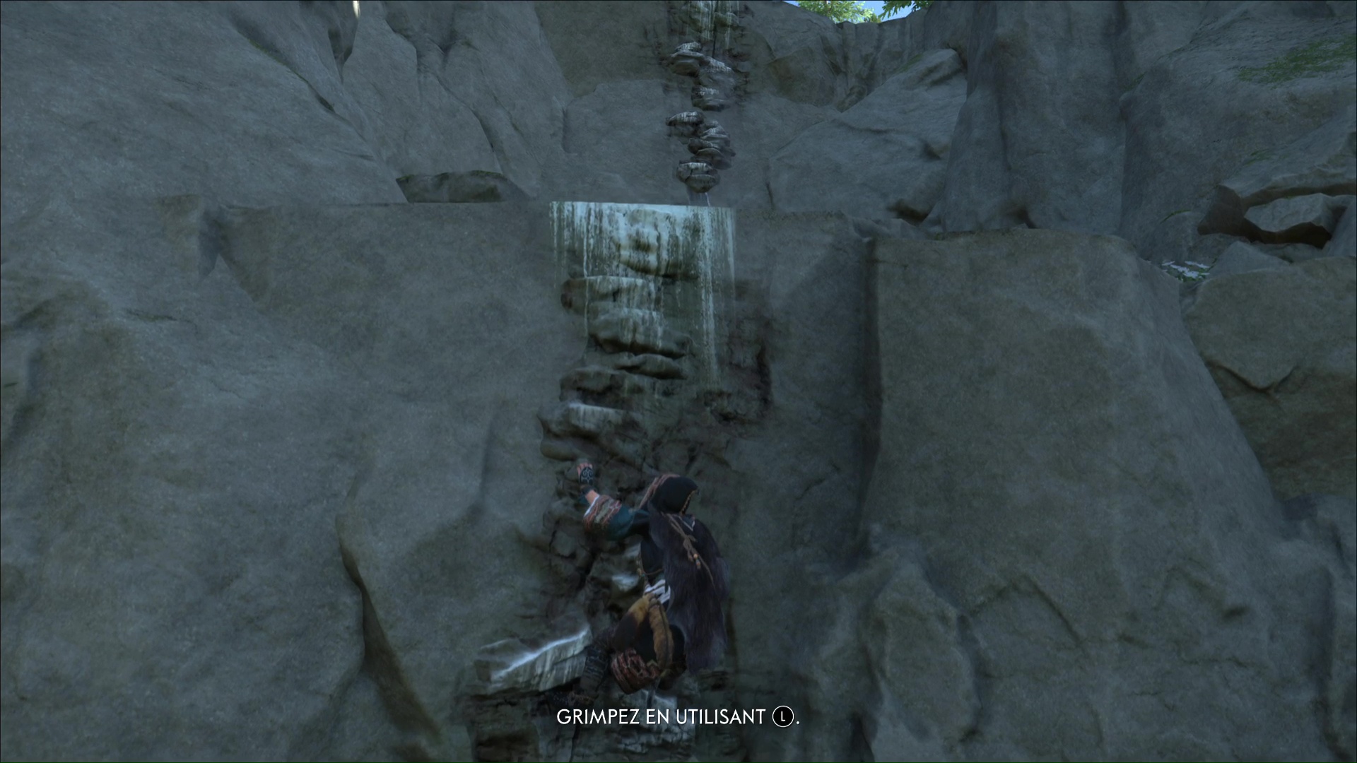 Une fois hissé, montez le chemin qui mène à une grotte. Un peu plus loin, vous verrez des prises rocheuses. Grimpez et avancez jusqu’à arriver à une zone gelée.