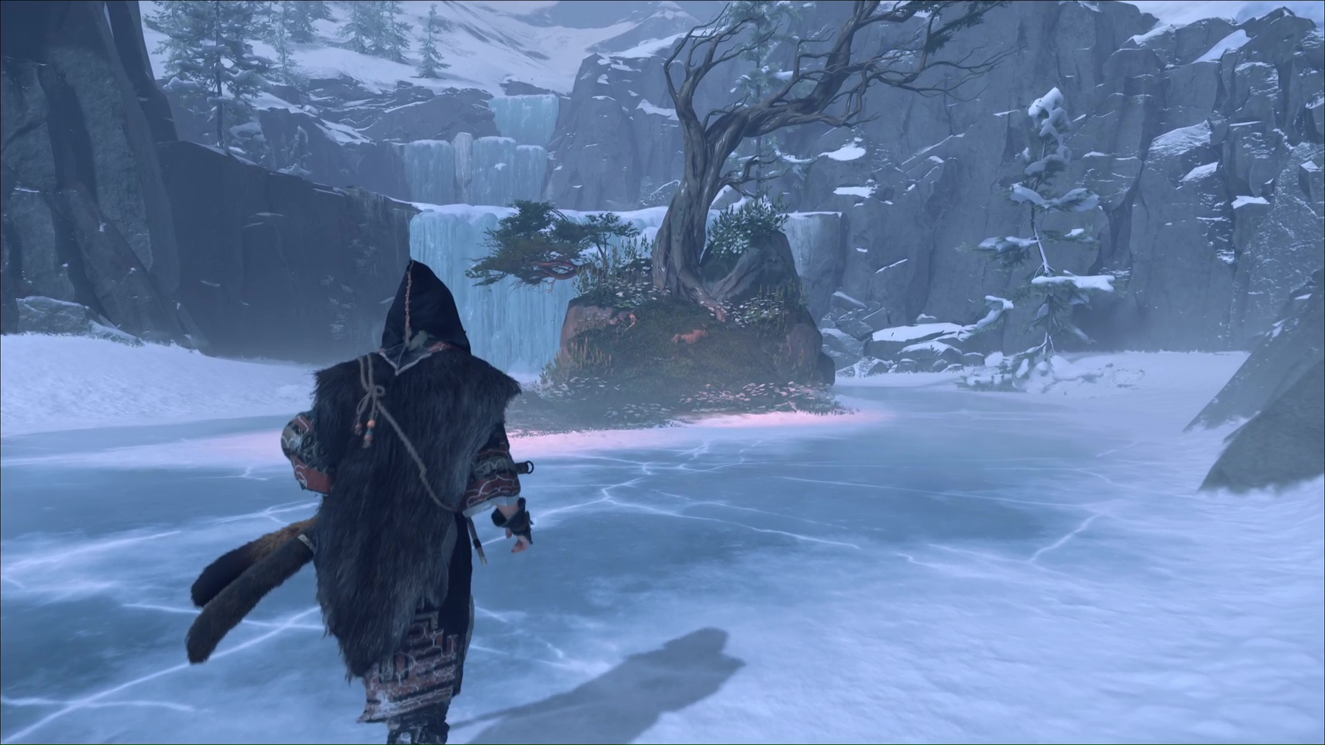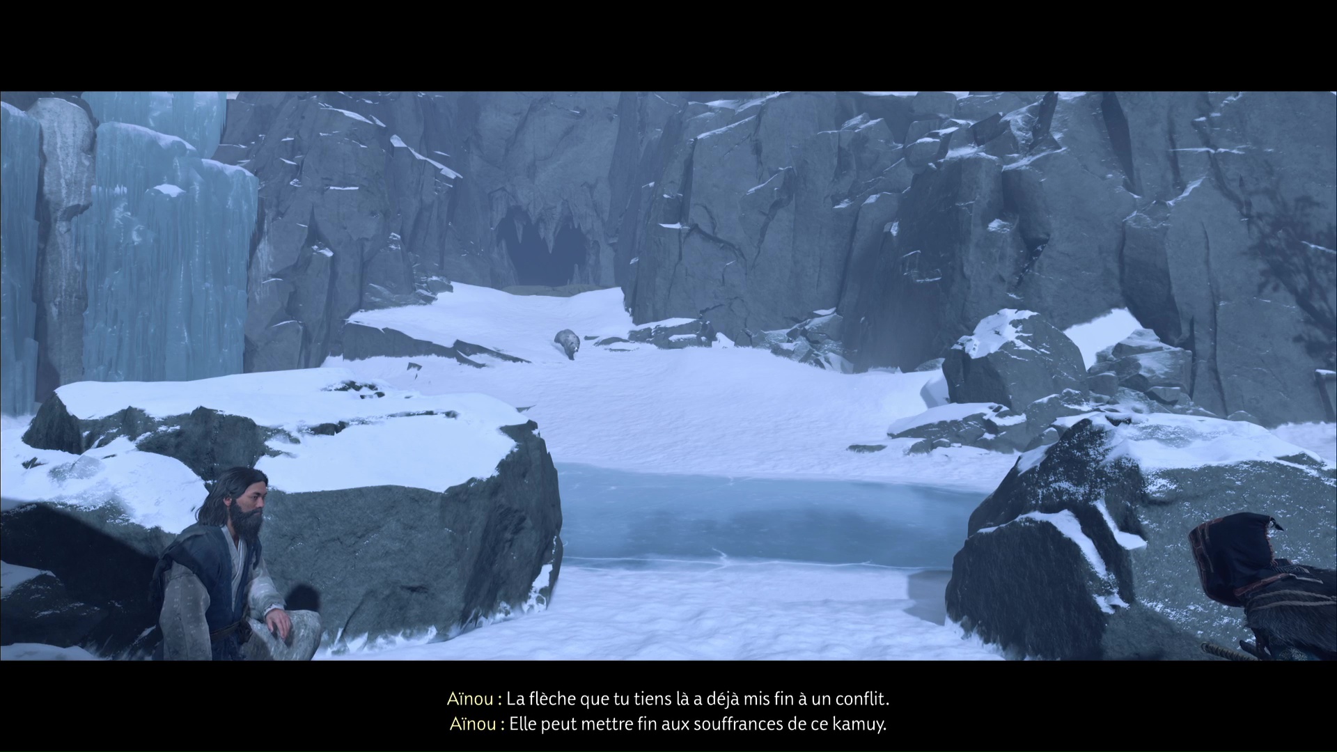 Allez examiner la flèche plantée dans le tronc : vous pouvez désormais tuer l’ours. Passez derrière l’arbre et escaladez la paroi à gauche de la cascade gelée.