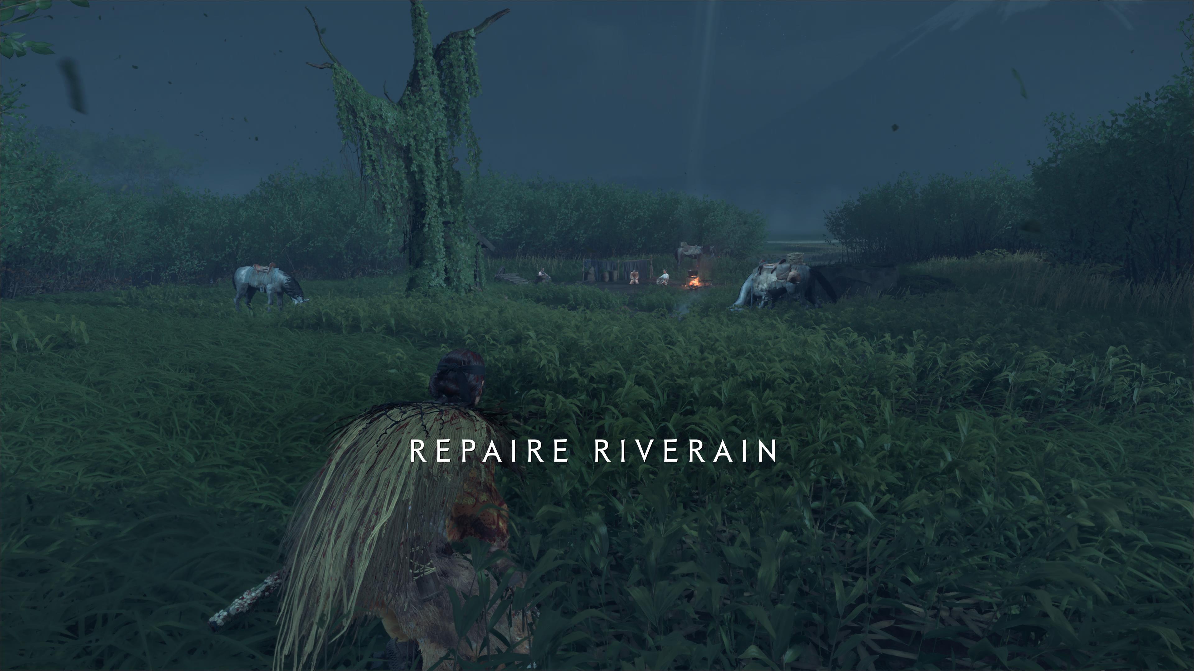 Au nord-ouest de la Rivière Sarubetsu se trouve un camp isolé, appelé aussi Repaire riverain. En approchant du camp, vous apercevez un Matsumae à la merci d’un ronin. Discutez avec ce dernier pour apprendre qu’il ne compte pas le libérer si facilement.