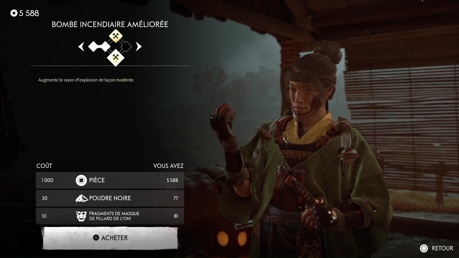 De plus, vous pouvez désormais utiliser les bombes incendiaires. Ina rejoint votre Meute et vous vendra des bombes et les améliorera moyennant ressources.
