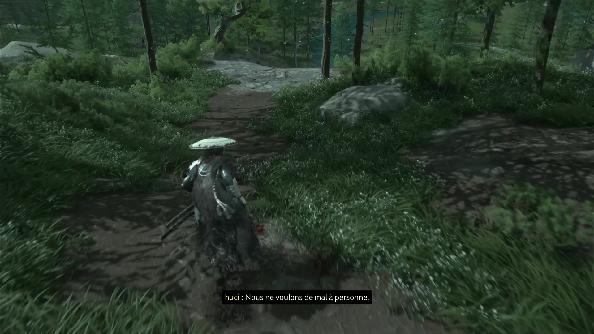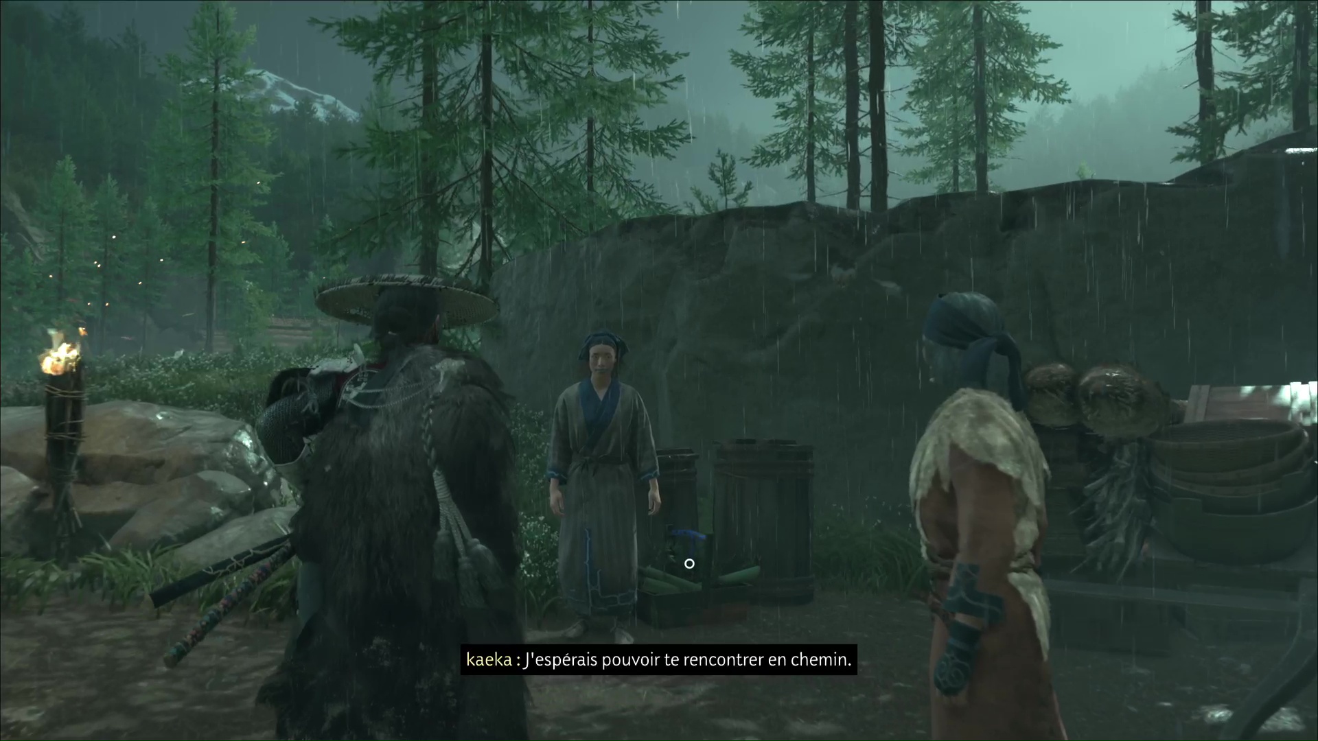 Vous arriverez ensuite à une maison dans la zone du Bois de l’Iwor. Atsu va aller interroger le mari de kaeka. Vous le trouverez de l’autre côté du pont en bois.