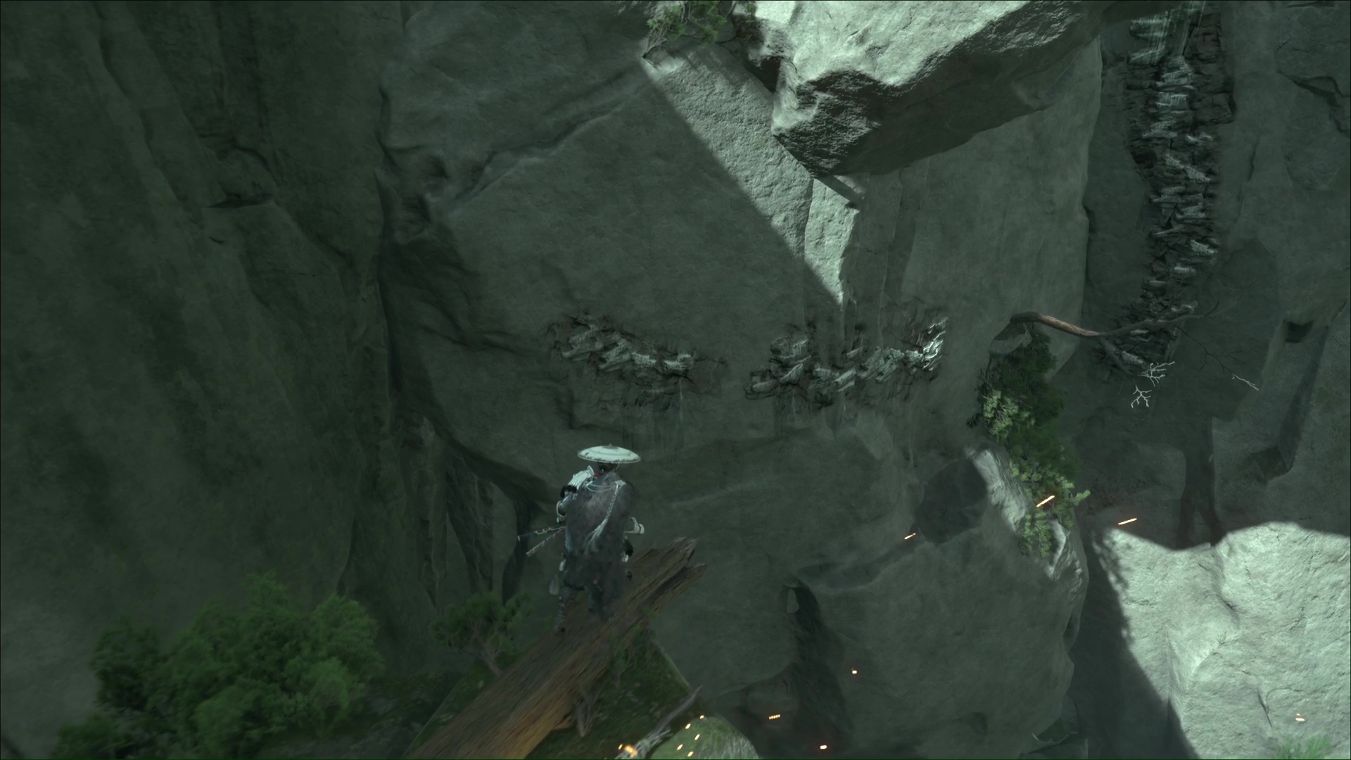 Reprenez votre parcours de plateforme sur deux branches consécutives puis sautez au grappin vers une branche. Arrivé en face, faites un peu de grimpette et entrez dans une petite grotte pour finalement vous faufiler à travers une ouverture.