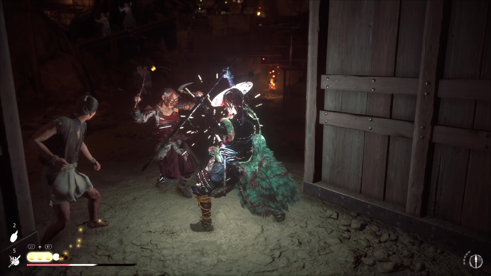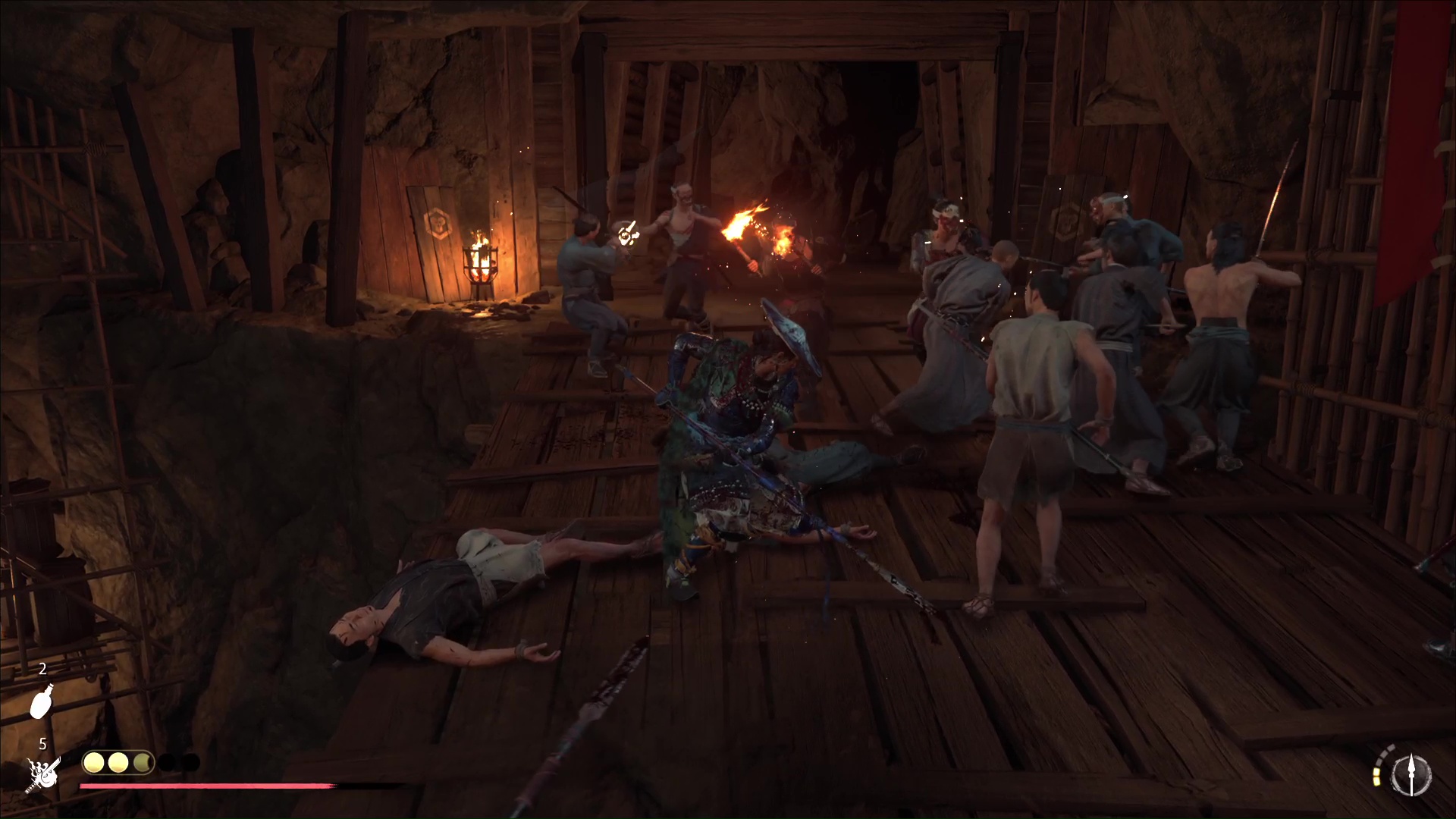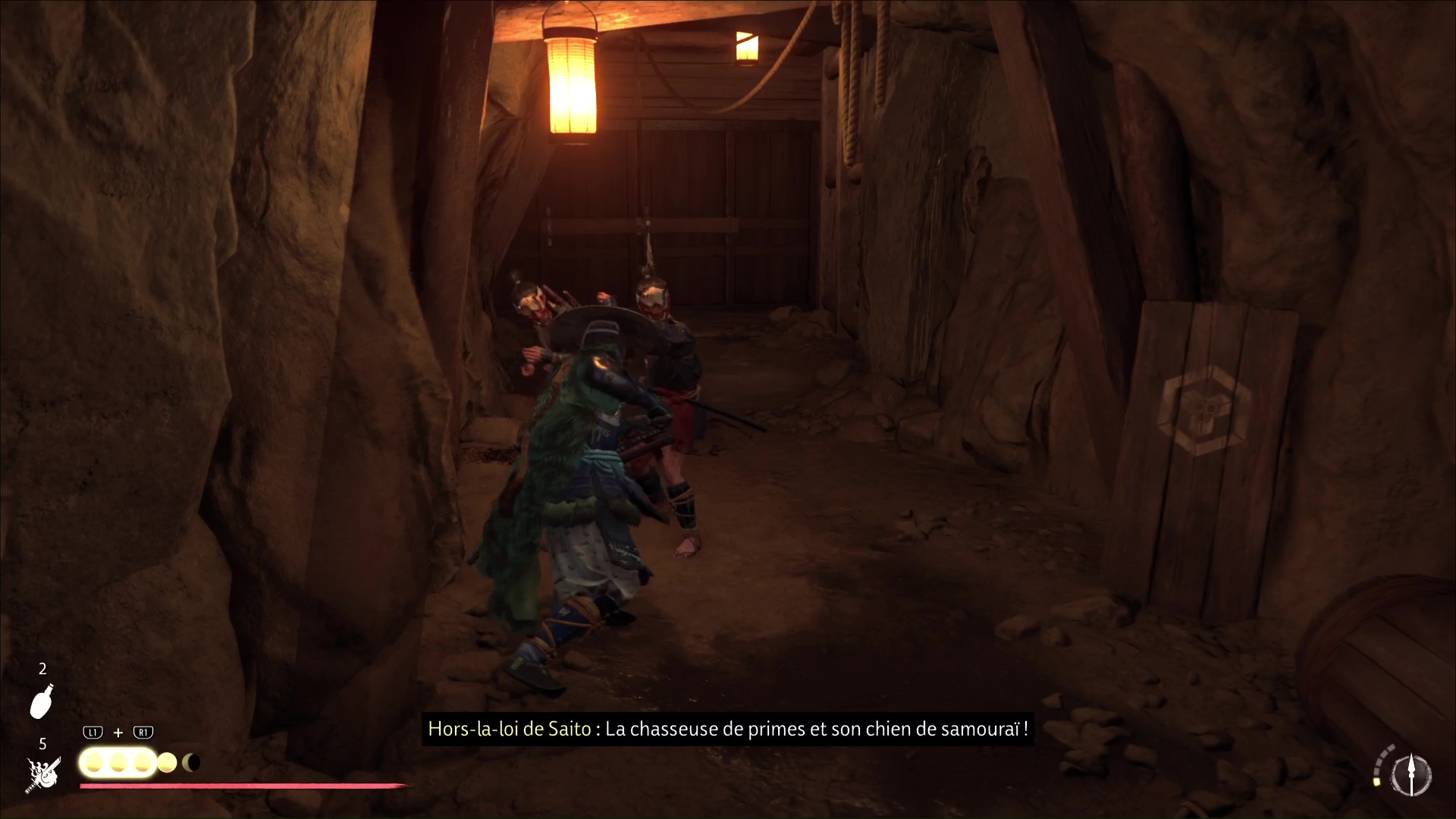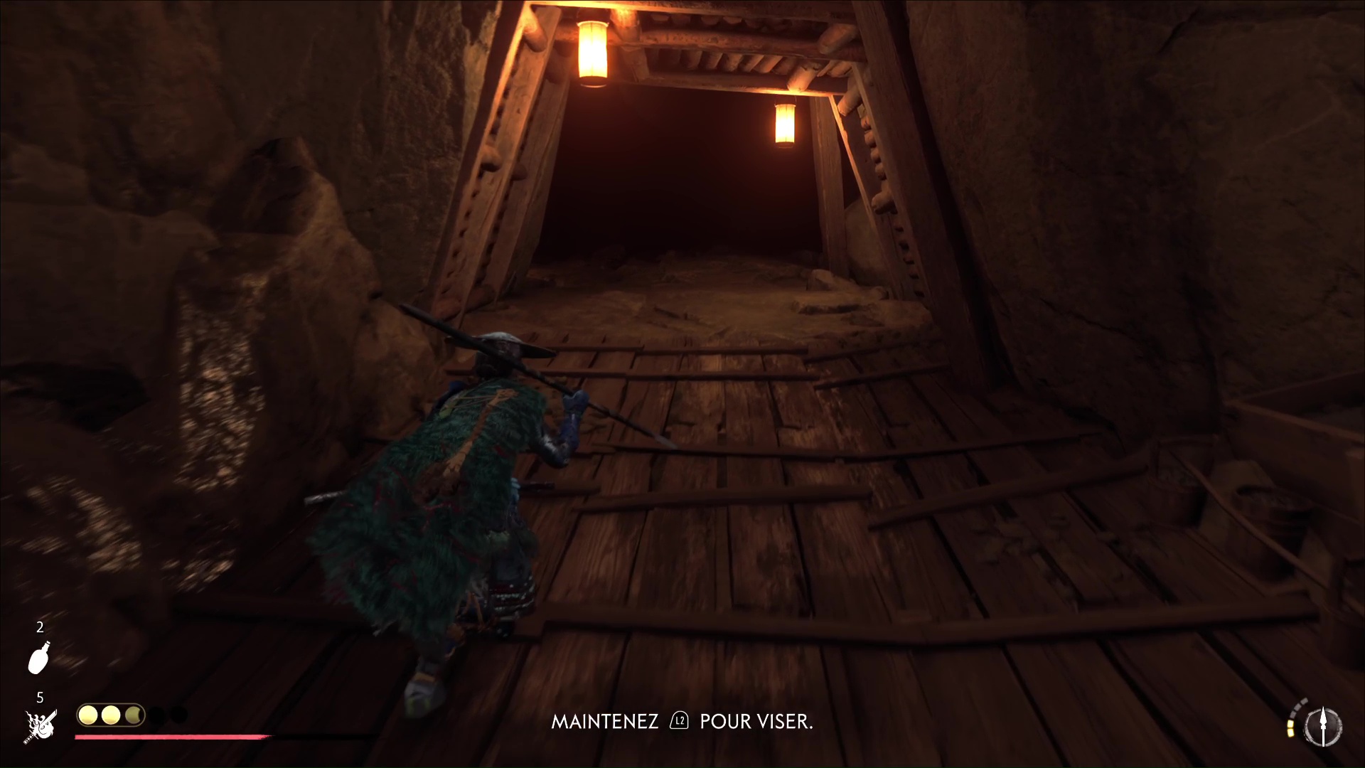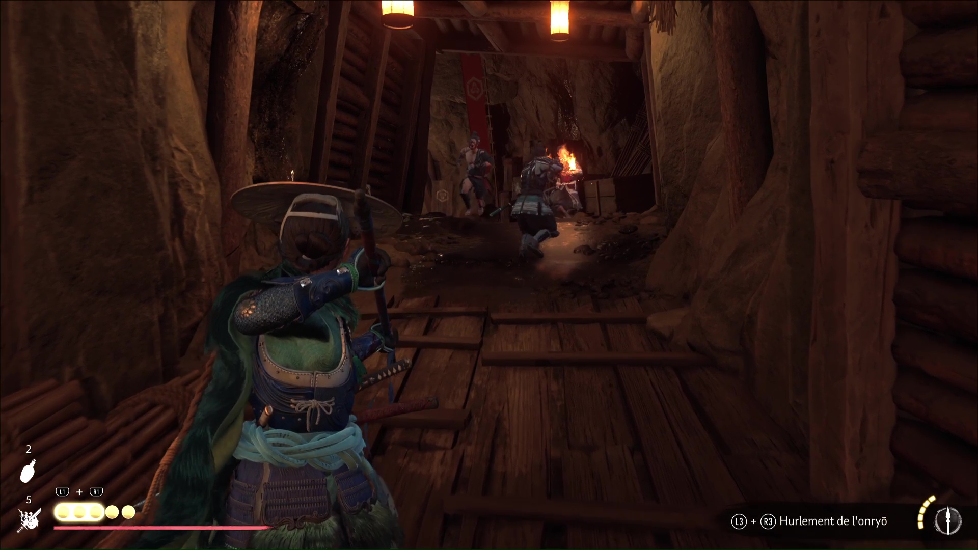 Dans le couloir suivant, l’attaque est lancée face aux pillards. À l’aide de Jubei, tuez les pillards qui s’opposeront à vous, jusqu’à rejoindre une autre porte. Une fois encore, grâce à votre frère, tirez avec votre grappin sur la barrière.