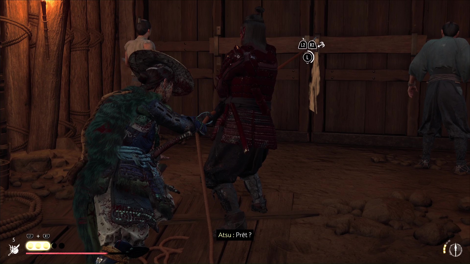 Parlez-lui pour véritablement lancer la quête. Les jumeaux partagent un repas avant la bataille, en se partageant les rituels qu’ils font avant chacune d’elles. Avant que la tempête se lève, Atsu donne le départ.