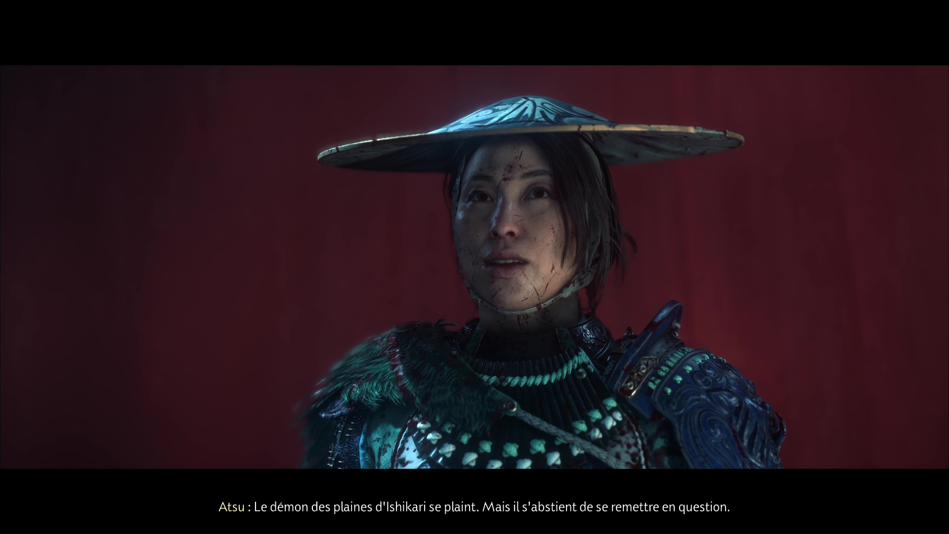 Il arrivera alors jusqu’à Jubei. Les jumeaux se positionnent alors de chaque côté du borgne, et assènent un coup fatal simultané. Atsu raye ensuite le nom de l’Oni via son sang. Elle et Jubei savourent un court instant, avant de devoir fuir. Vous débloquez le trophée 🏆 L’Oni.